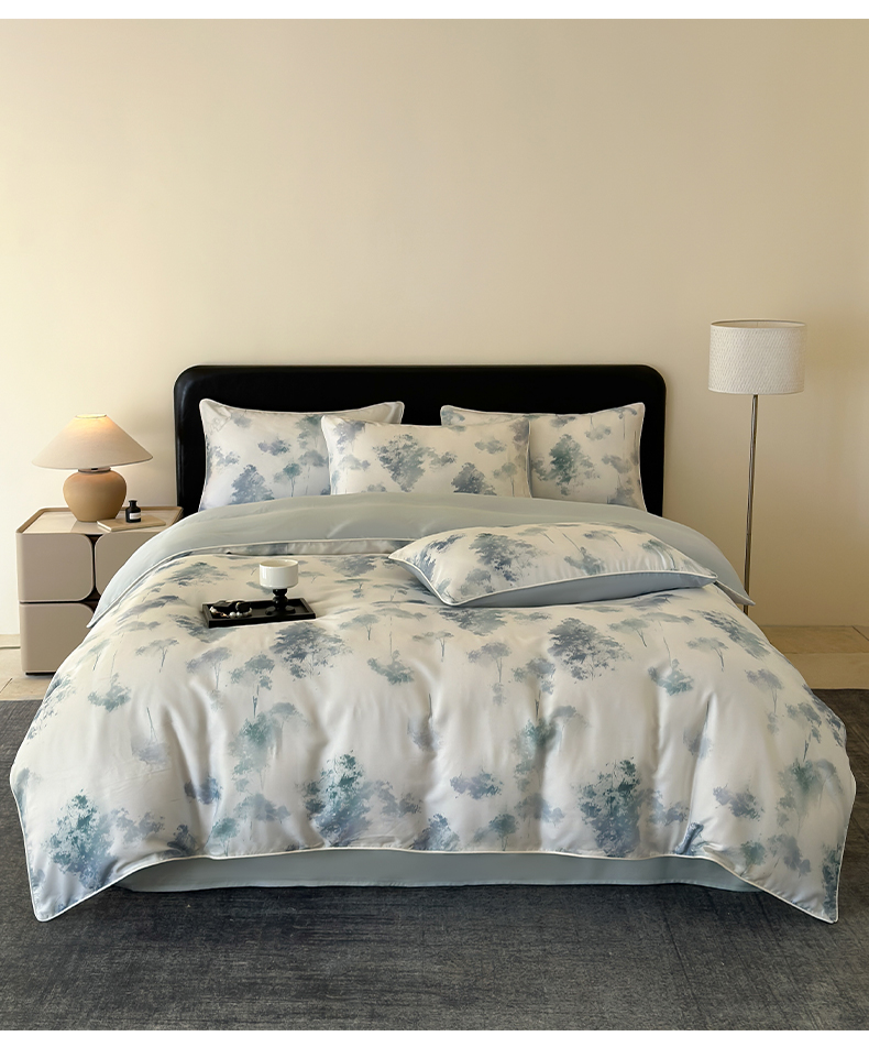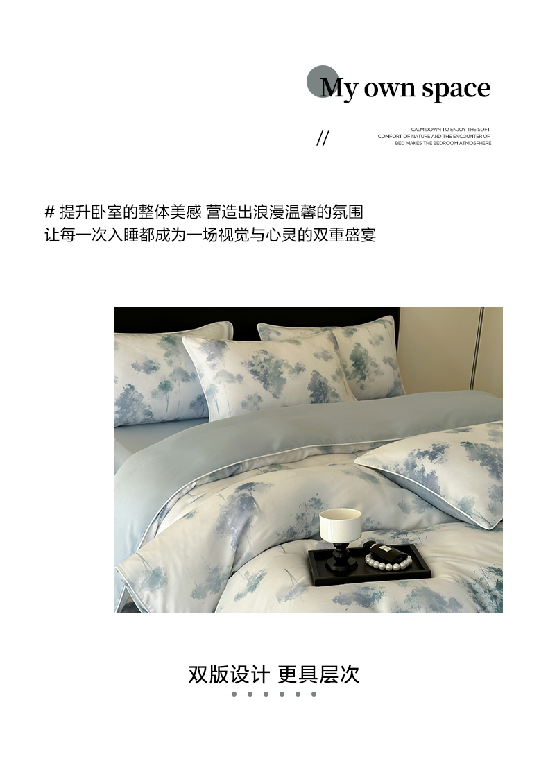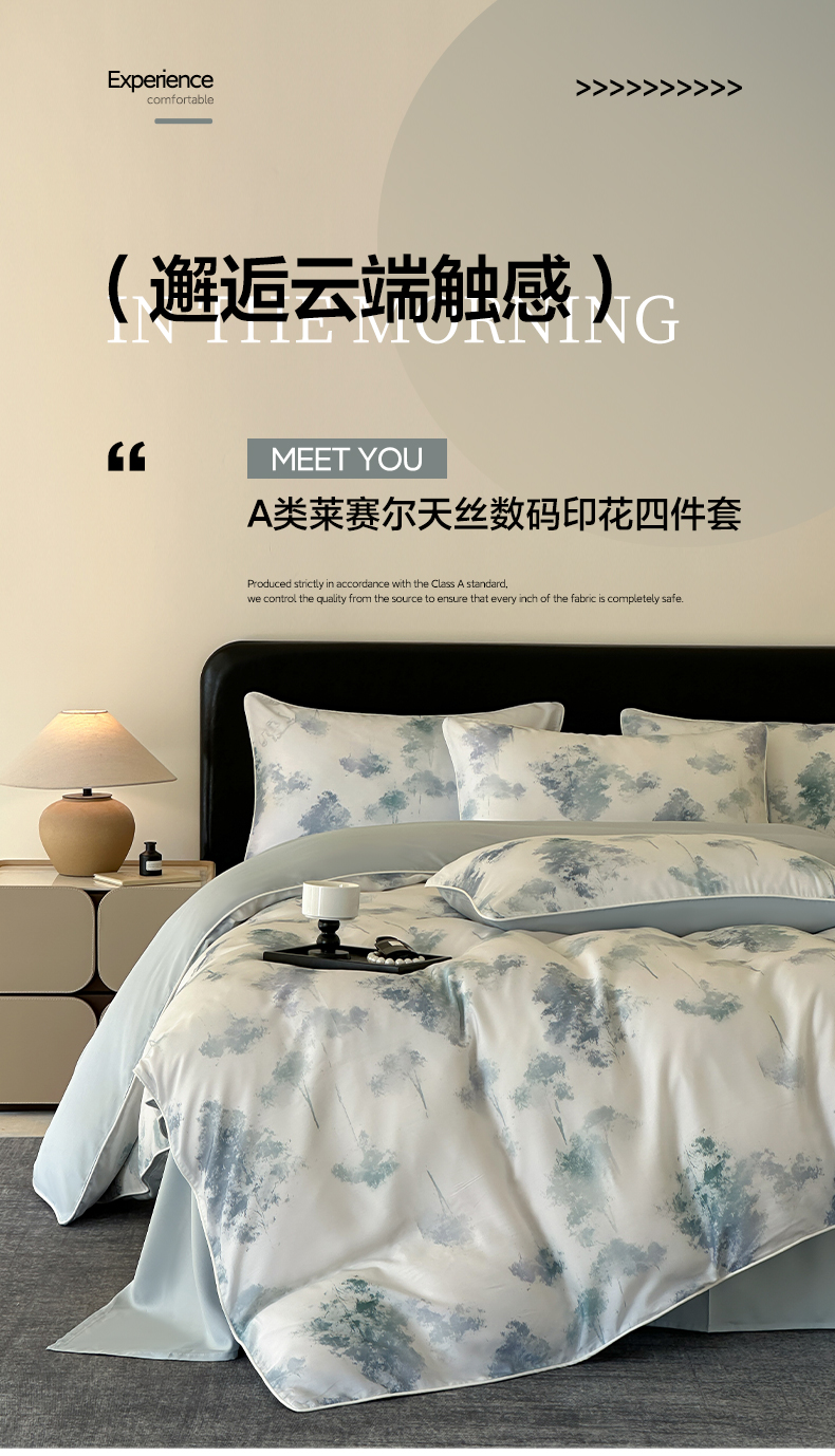 当前位置: 91家纺网 > 商品网购 > 床品套件 > 四件套 > 其它四件套 > 莱登卡奴 2025新款A类50支莱赛尔天丝数码印花麻绳款四件套 魅影兰