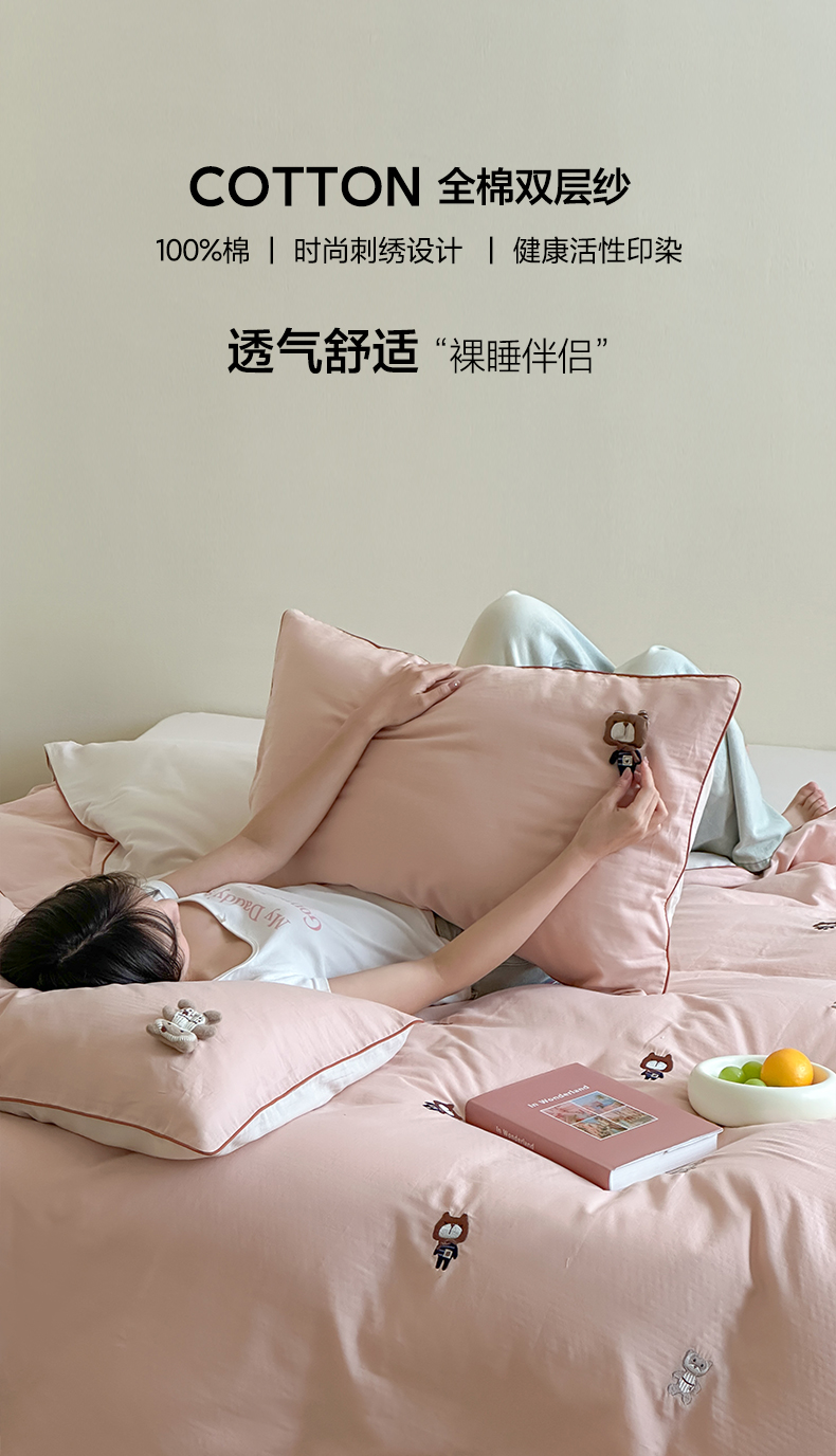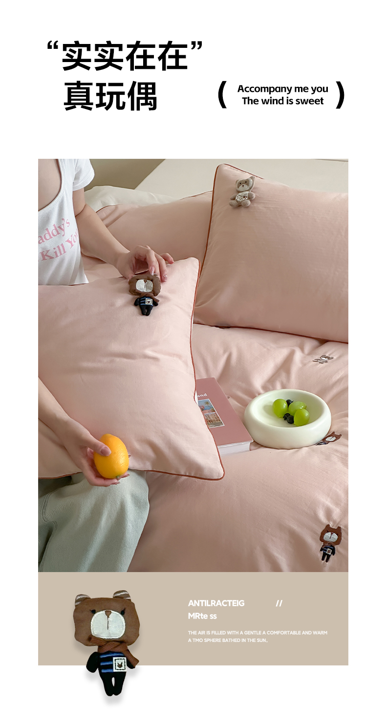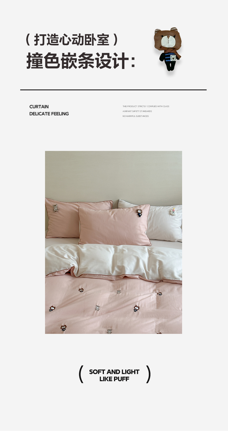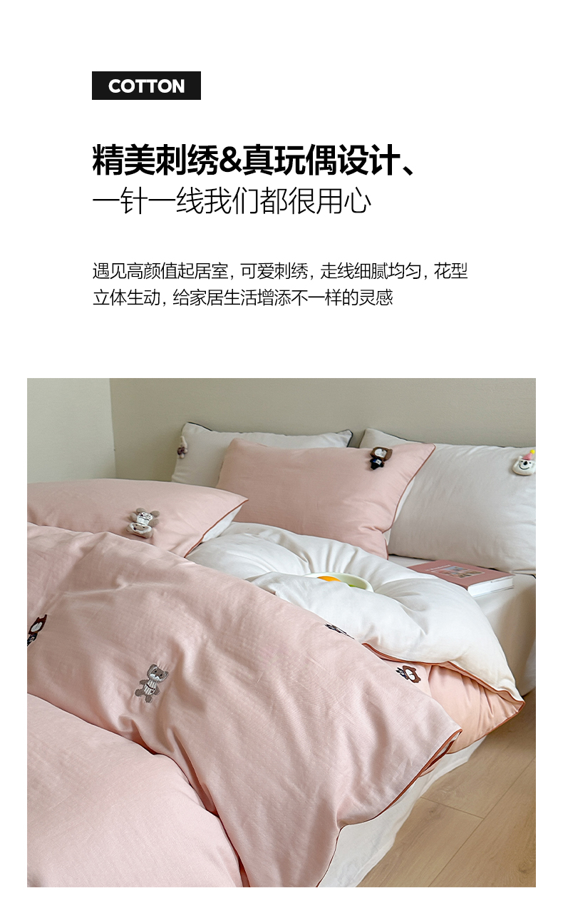 当前位置: 91家纺网 > 商品网购 > 床品套件 > 四件套 > 其它四件套 > 卡巴伦家纺 2025双层纱-A类玩偶刺绣嵌条款四件套 温暖抱抱