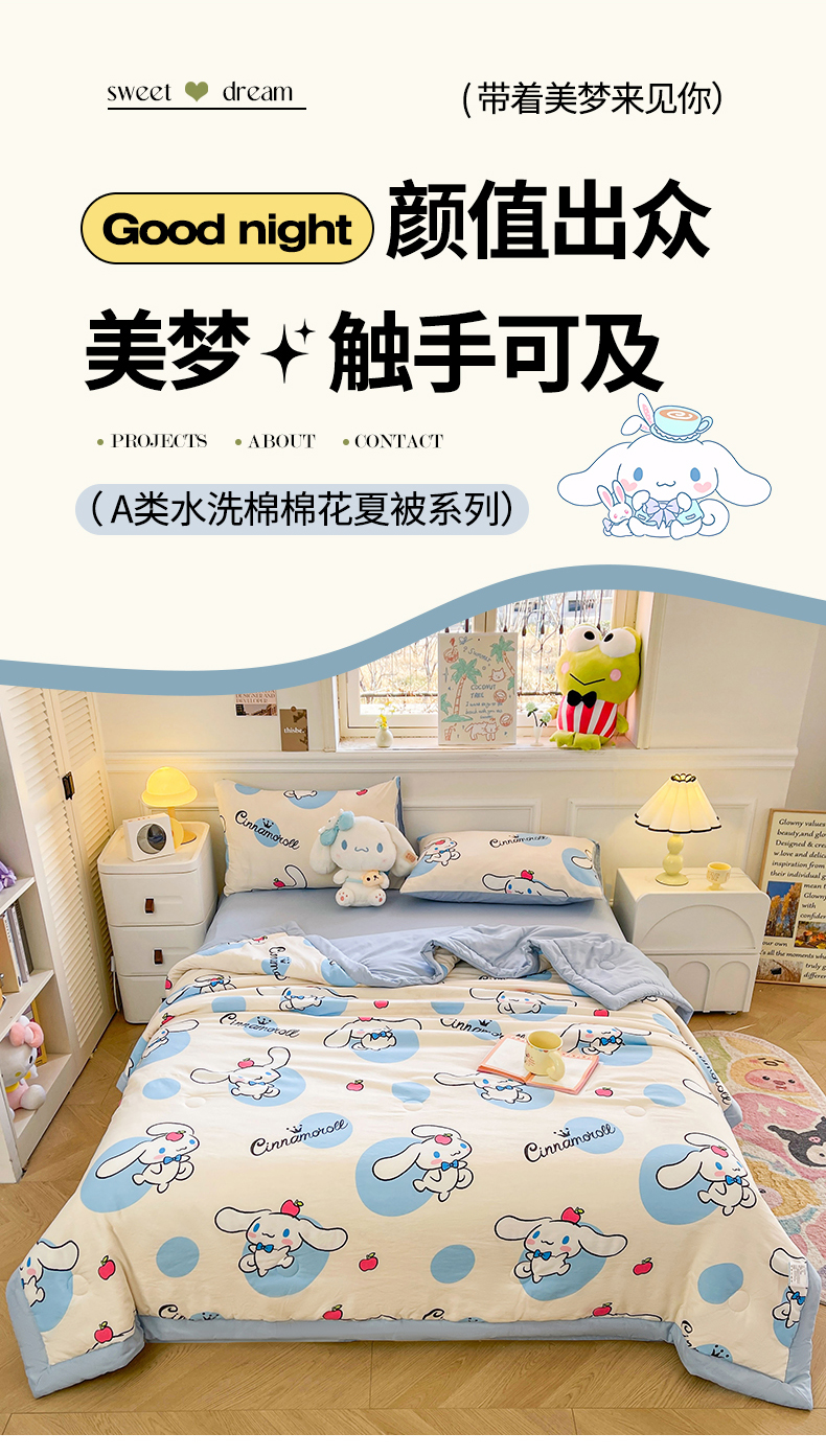 商品名称:晓时候 2025新款正版授权三丽鸥水洗棉夏被新疆棉花被夏凉被空调薄被子 开心玉桂狗