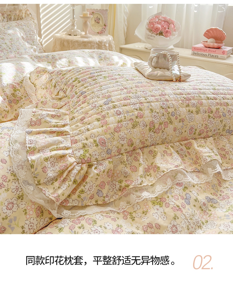 商品名称:麒豆豆 2025新款全棉印花双层纱床盖四件套 悠若花园