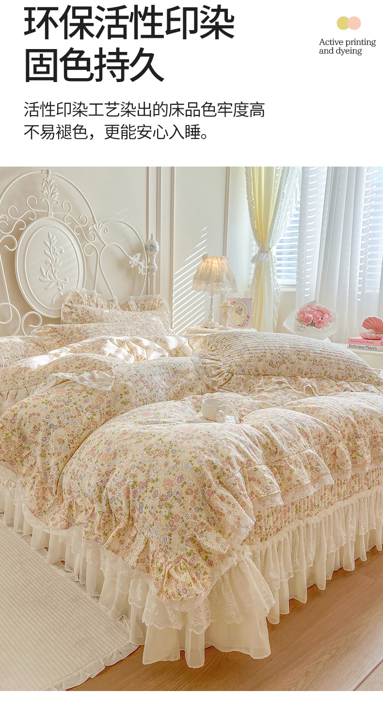 (总)麒豆豆 2025新款全棉蕾丝边床裙款床笠-晨暮花间,晨暮花间-绯红,晨暮花间-粉色,晨暮花间-麦绿,晨暮花间-米色,晨暮花间-浅紫,晨暮花间-雾蓝