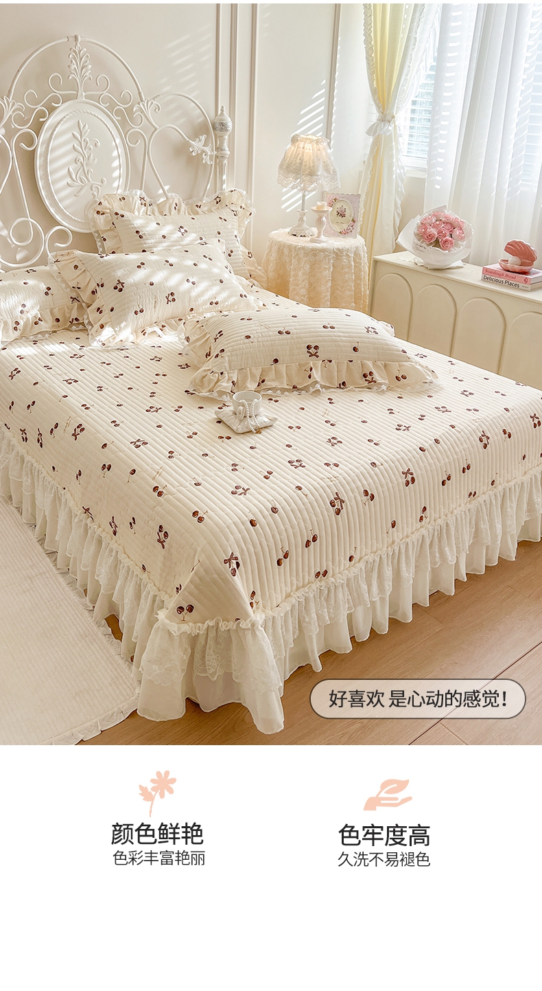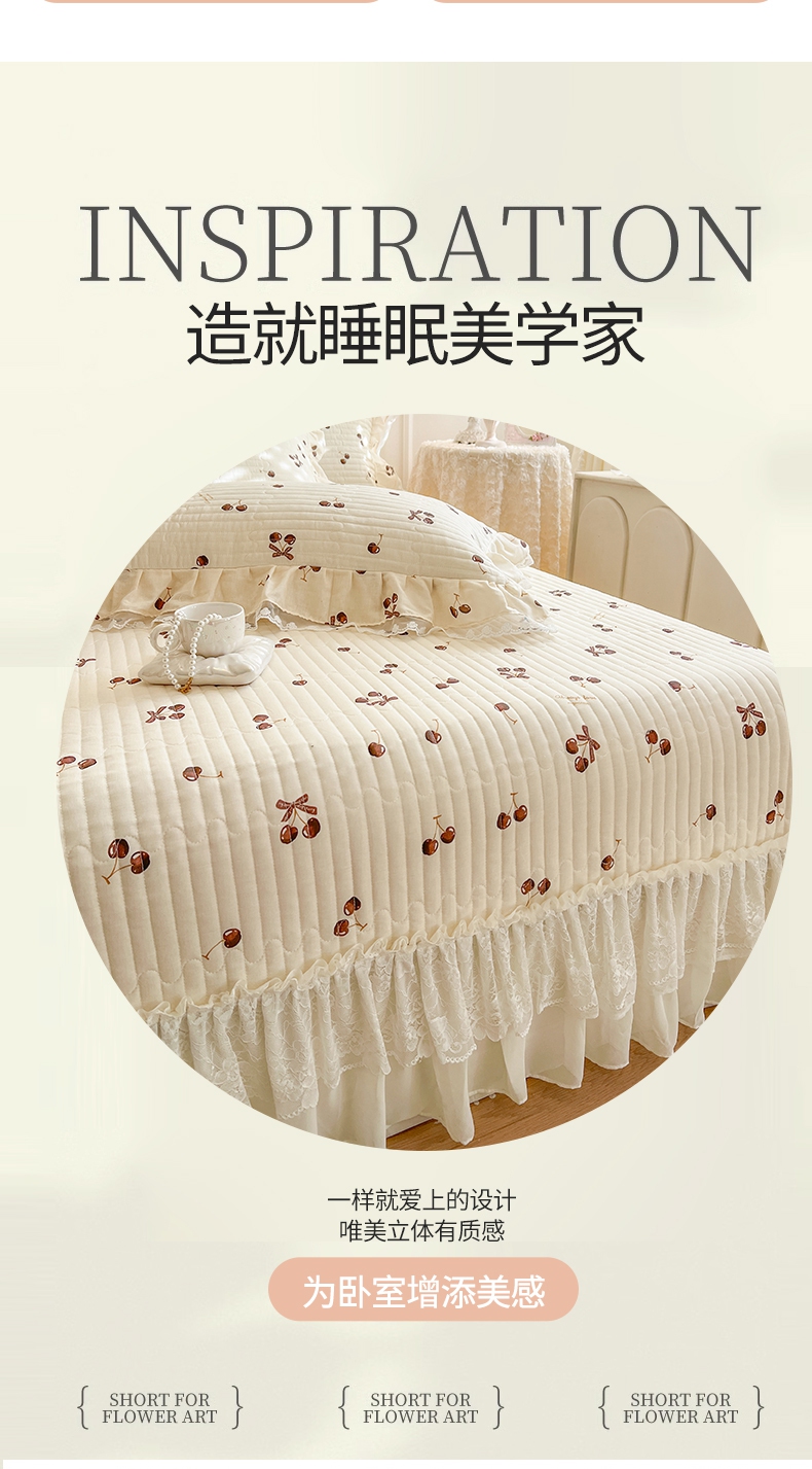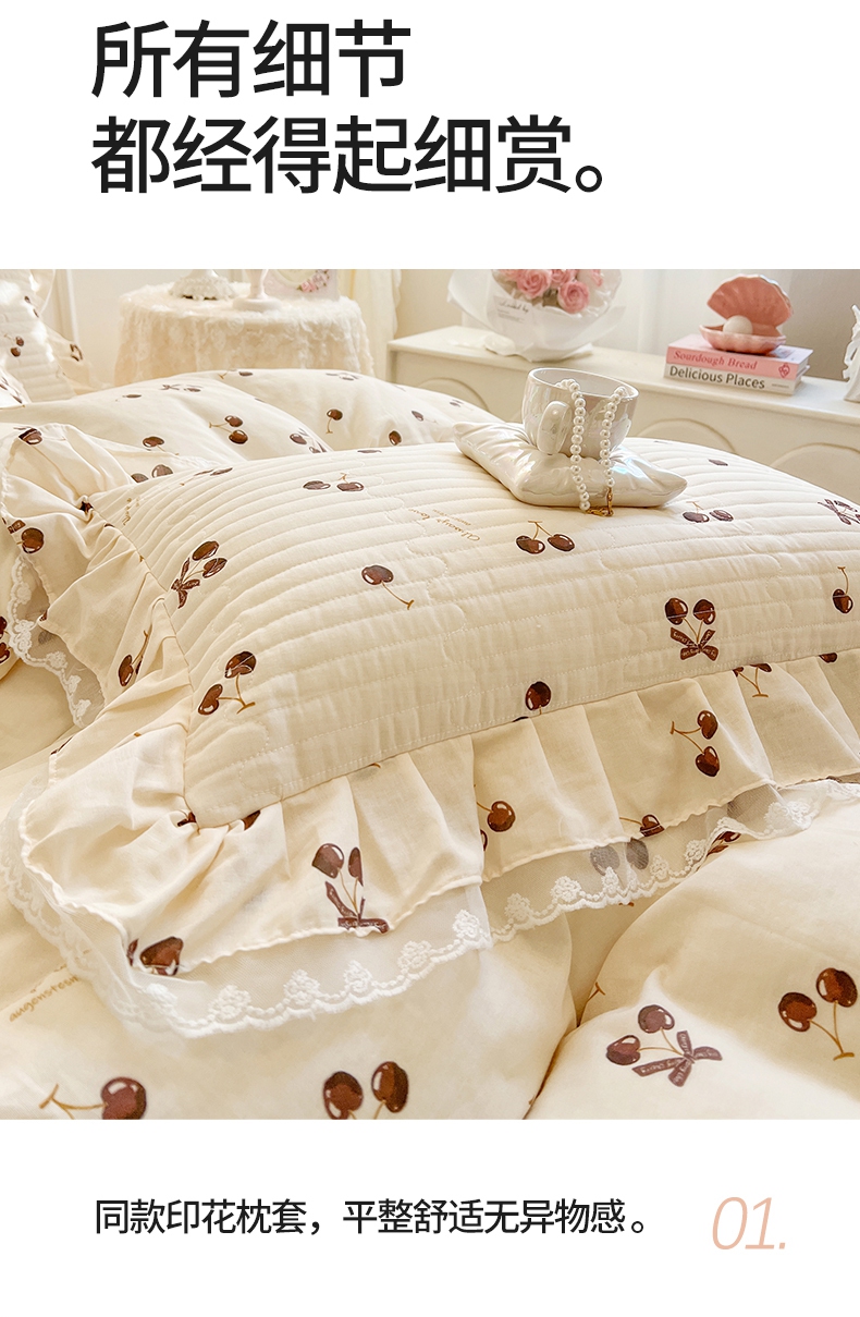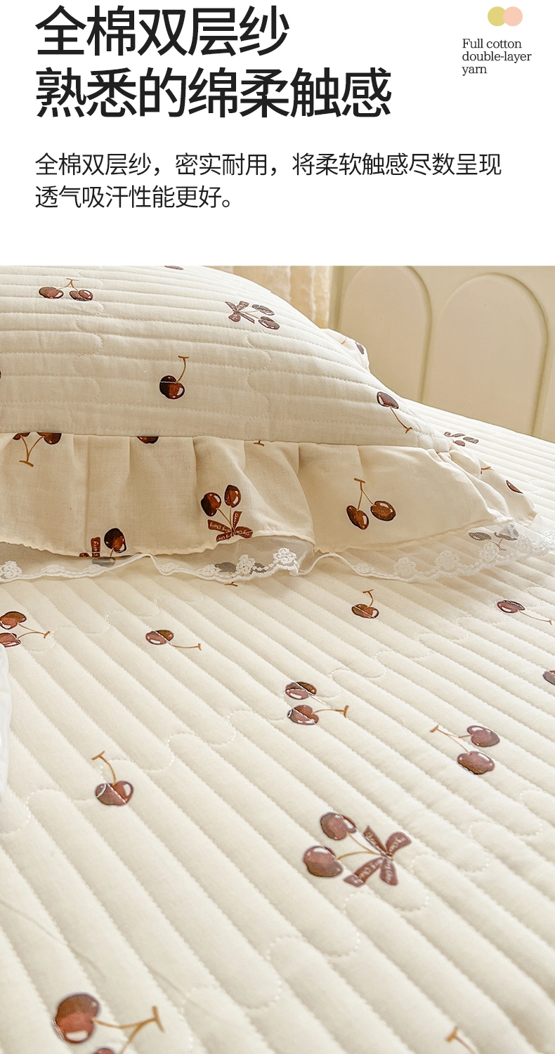 商品名称:麒豆豆 2025新款全棉印花双层纱床盖 车厘子