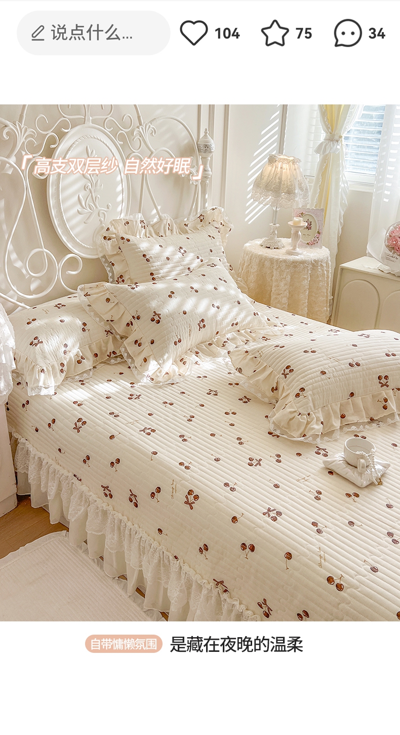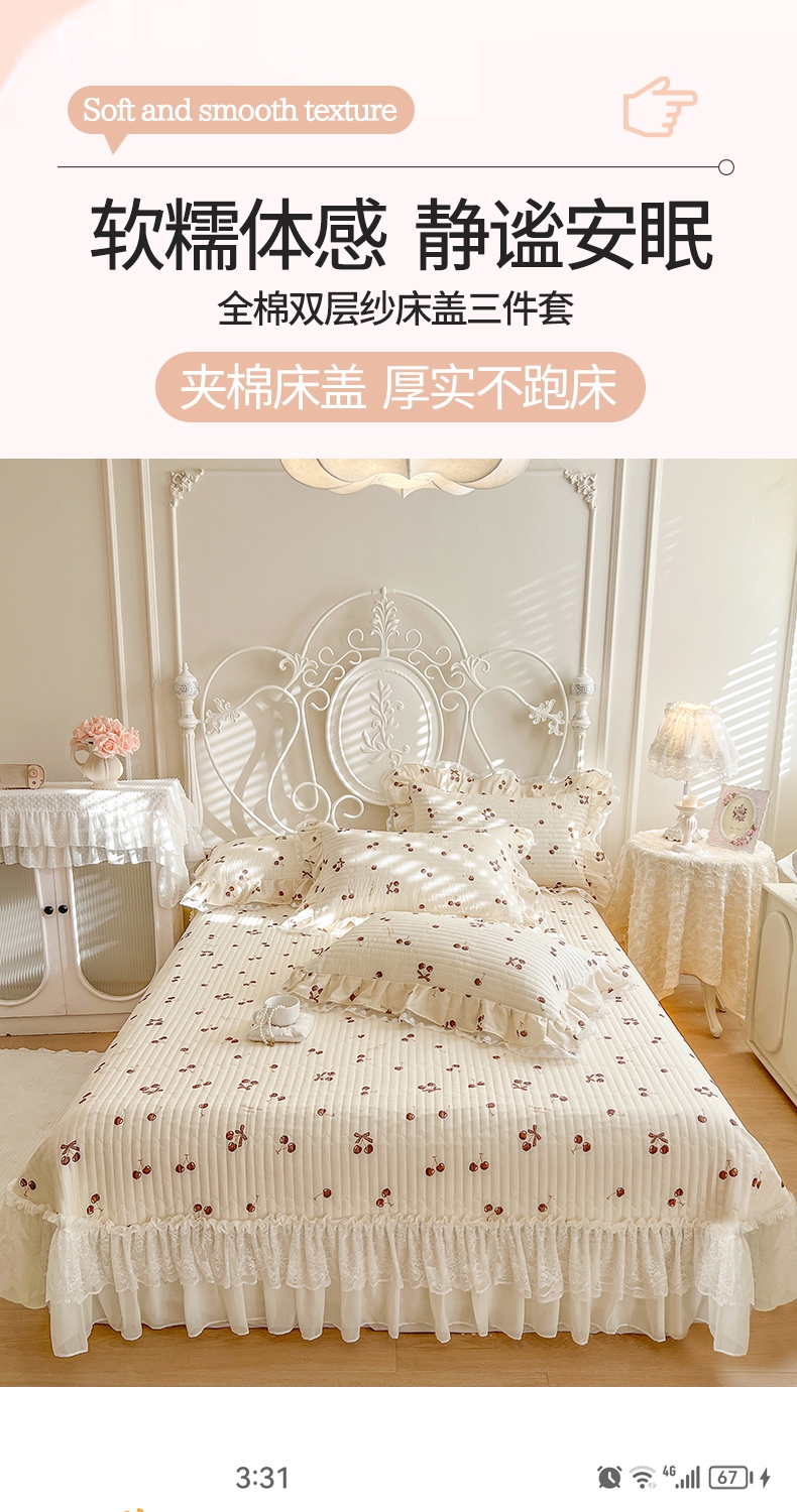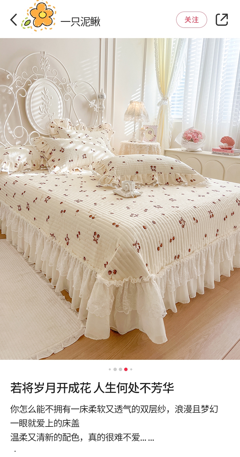 商品名称:麒豆豆 2025新款全棉印花双层纱床盖 车厘子
