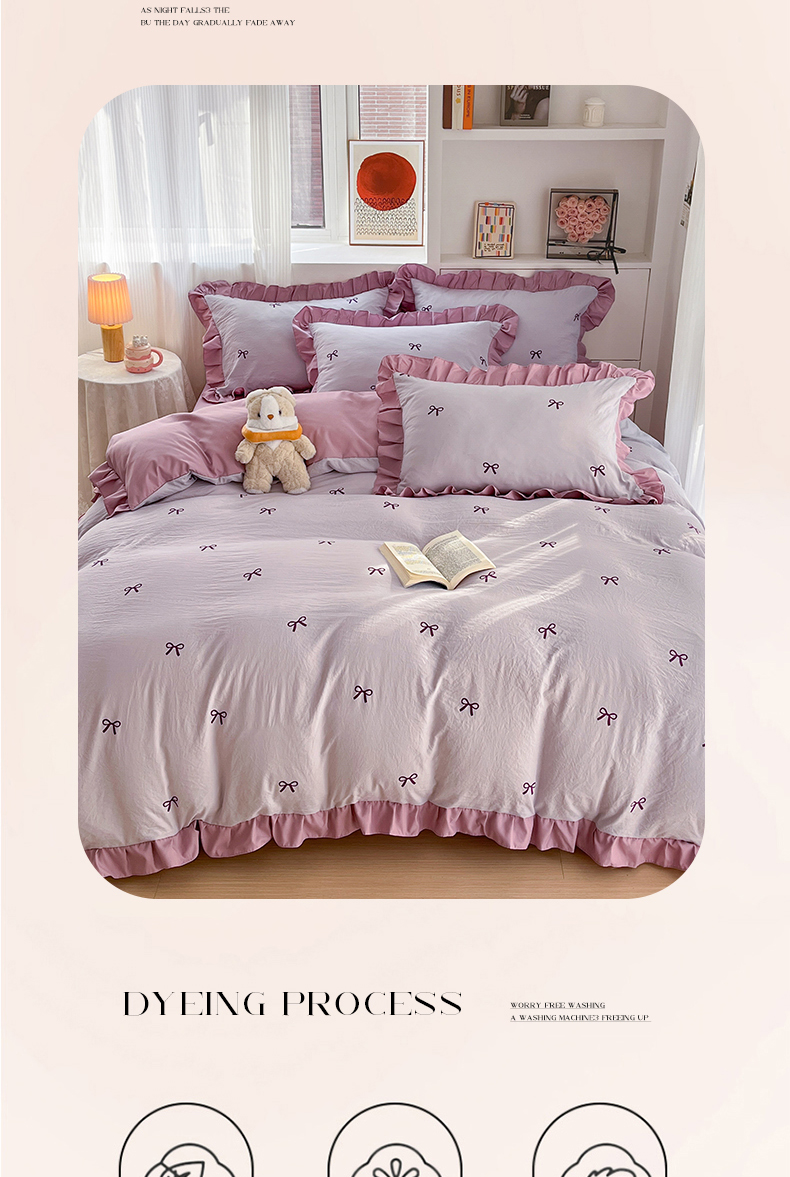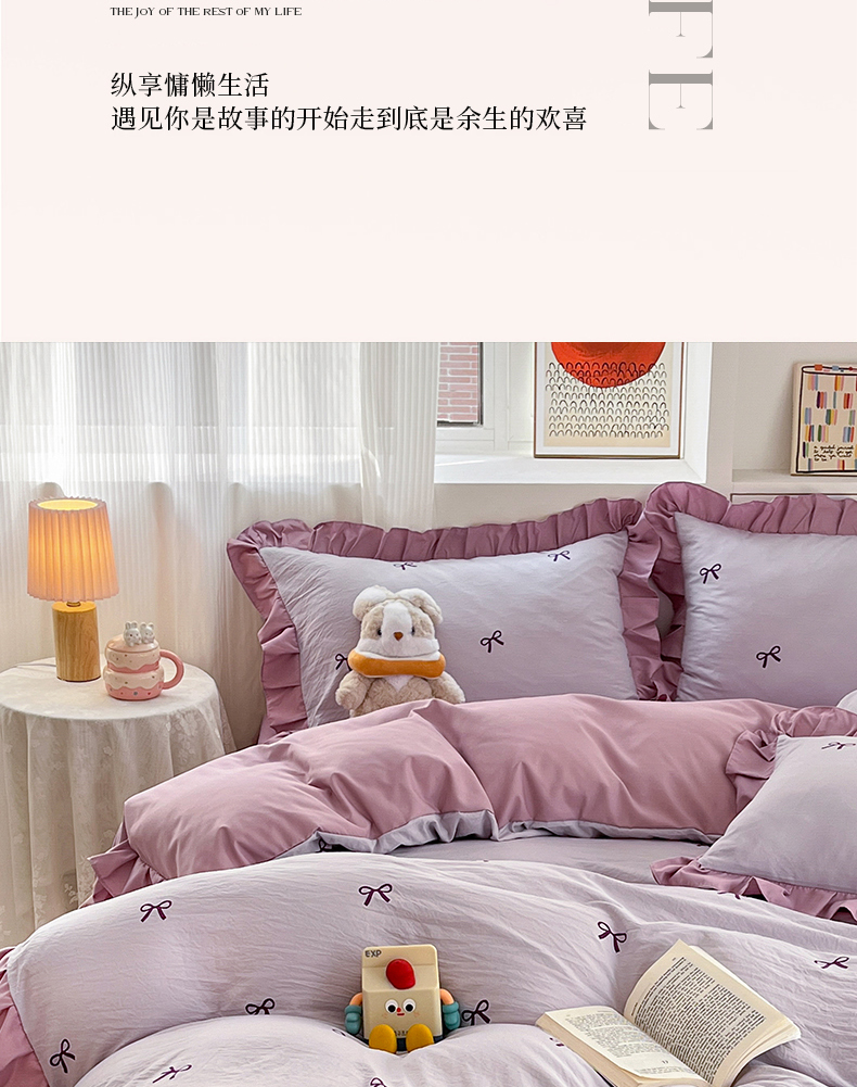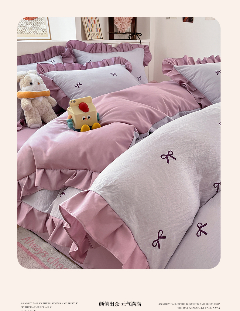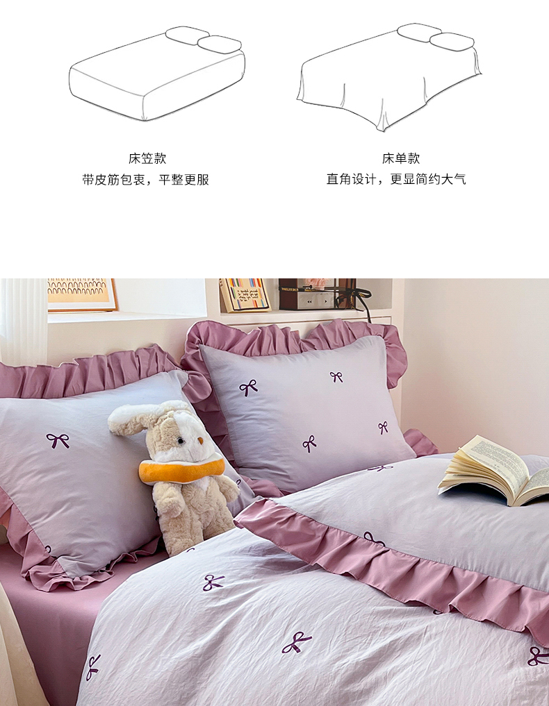 当前位置: 91家纺网 > 商品网购 > 床品套件 > 四件套 > 普通磨毛四件套 > 苏源家纺2025新款 公主风荷叶边亲肤棉磨毛四件套 绮梦-浅紫