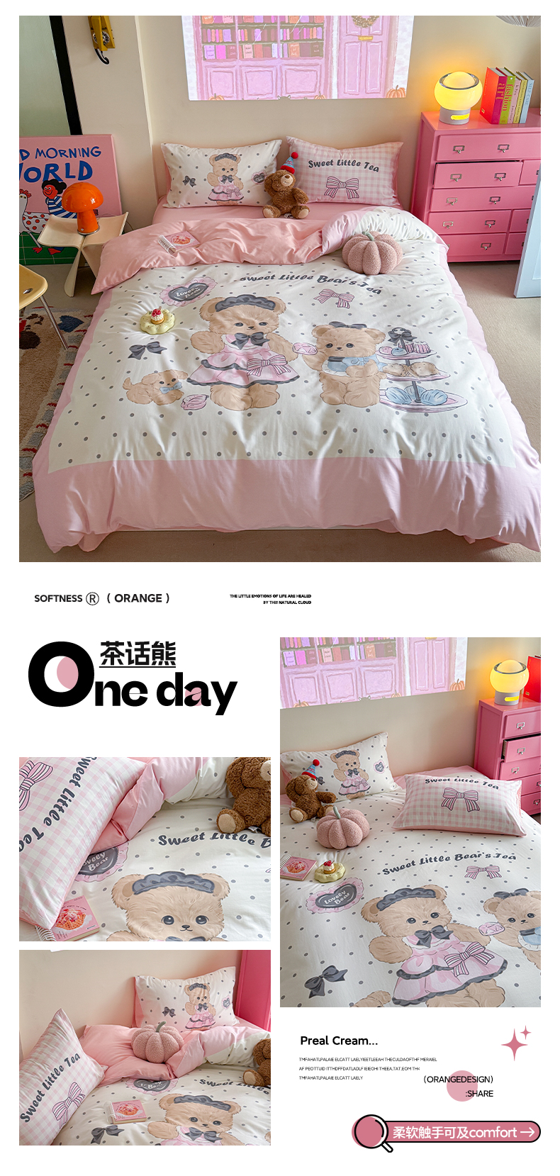 美乐迪家纺 2025新款大版全棉四件套 茶话熊