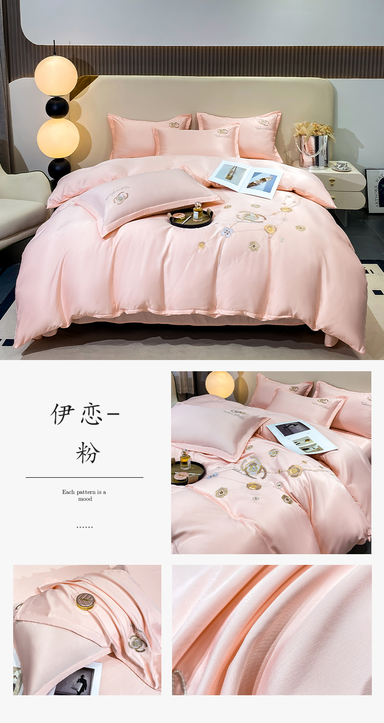 商品名称:慧菲 2025新款轻奢水洗天丝四件套-伊恋 伊恋-粉