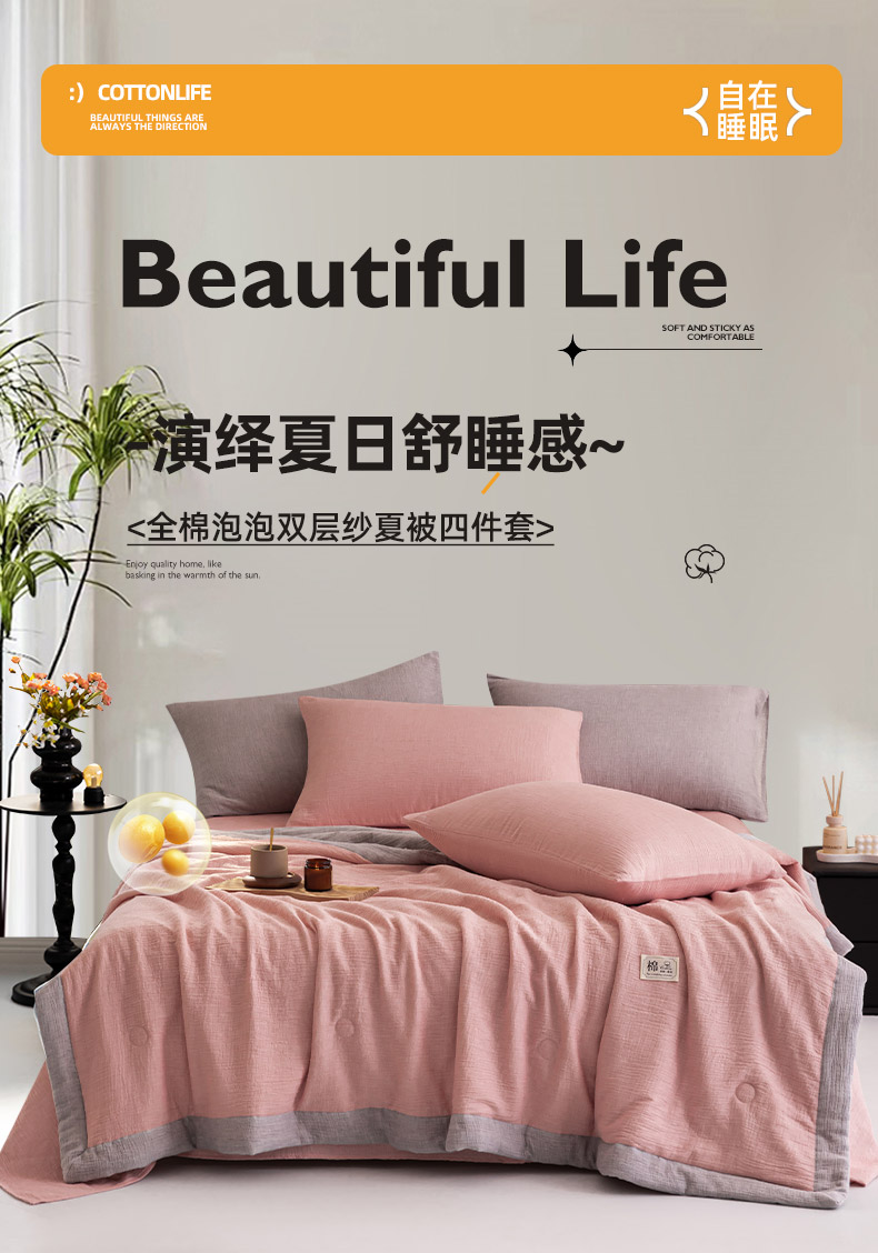 商品名称:吾诺 2025 纯色全棉泡泡双层纱夏被大豆夏被子被芯夏被四件套夏凉被空调被 芭乐粉