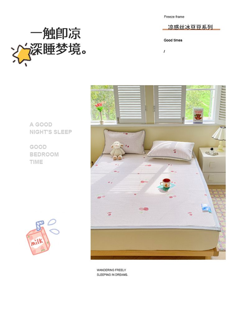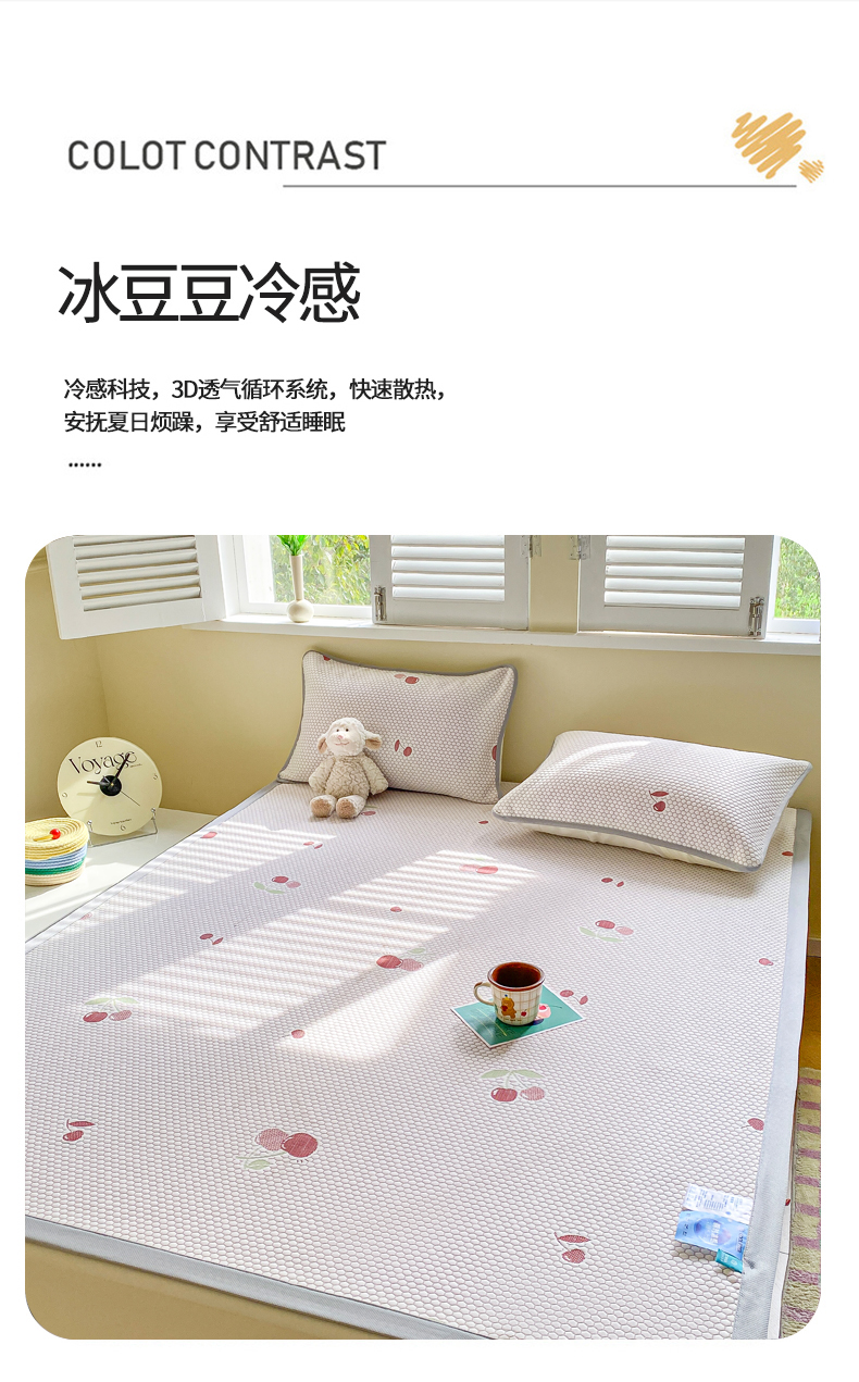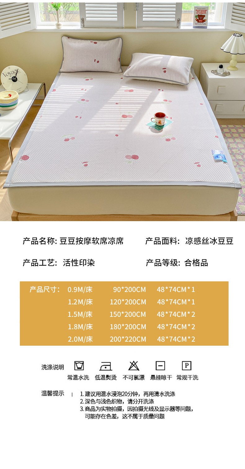 当前位置: 91家纺网 > 商品网购 > 床上用品 > 凉席 > 其他凉席 > 缦卡琳家纺 2025新款按摩豆豆凉席三件套 樱桃