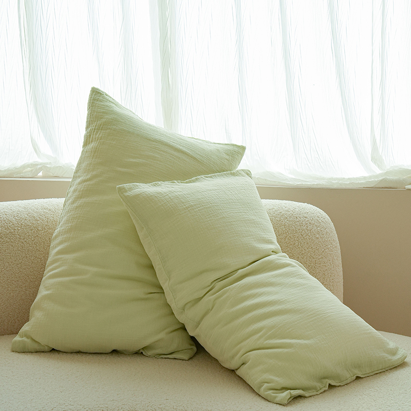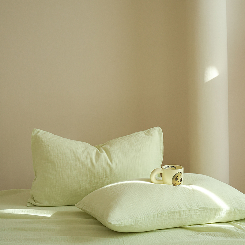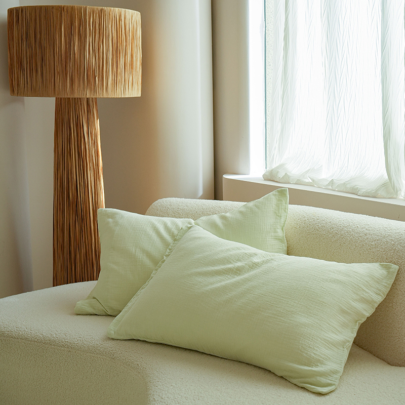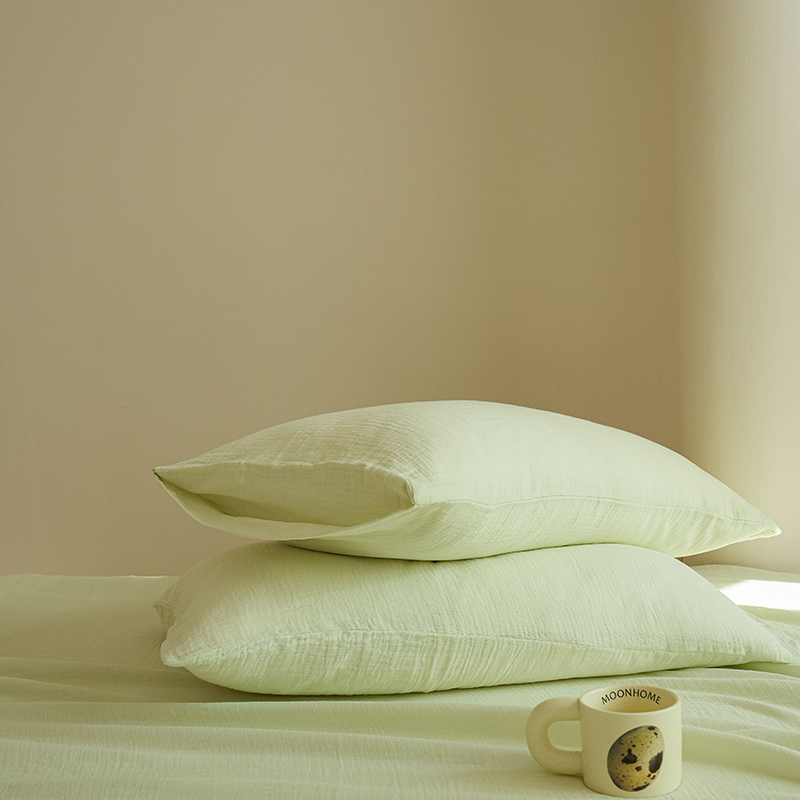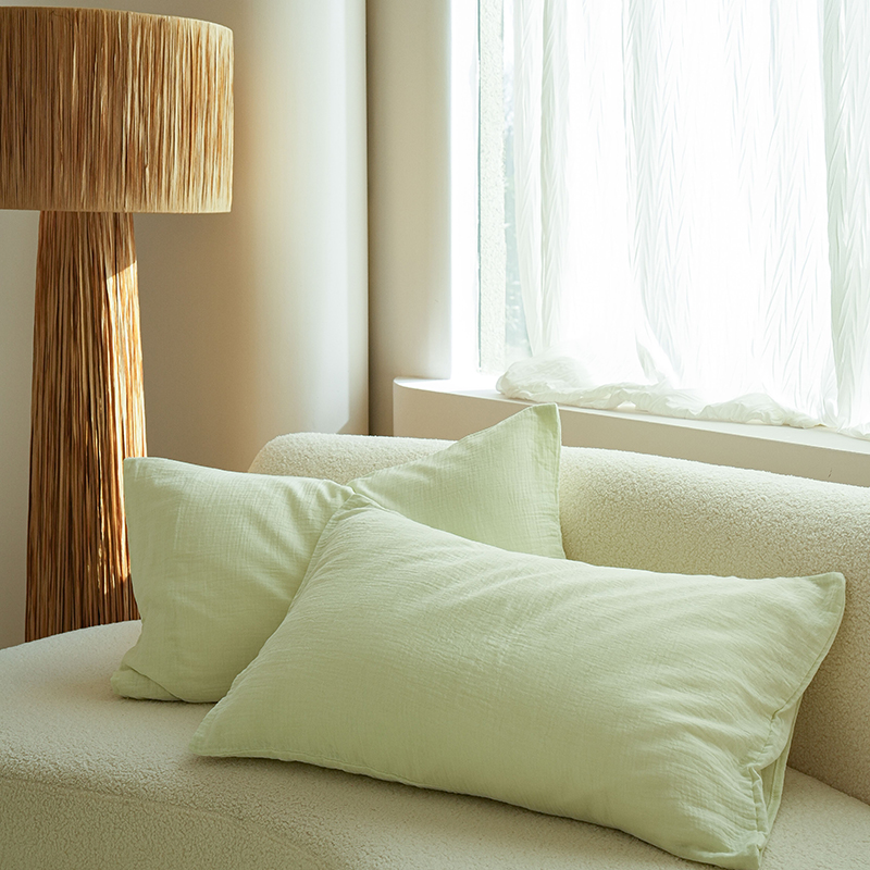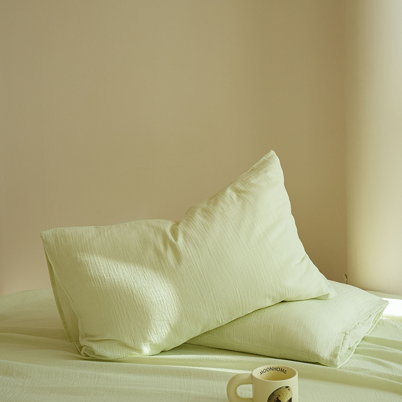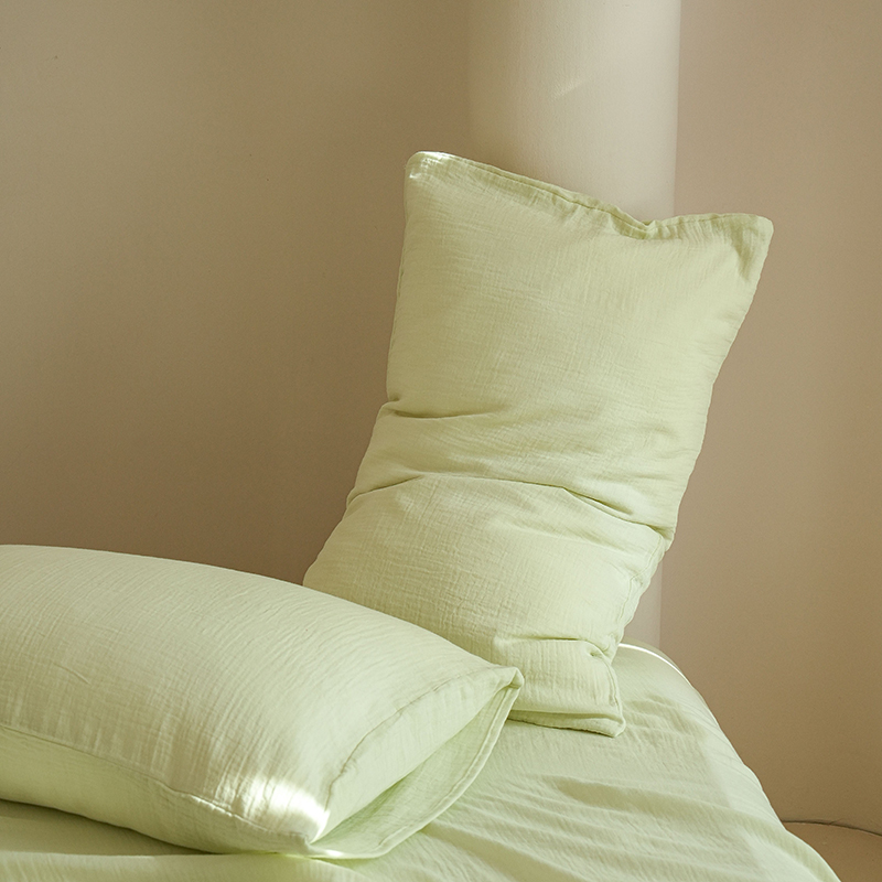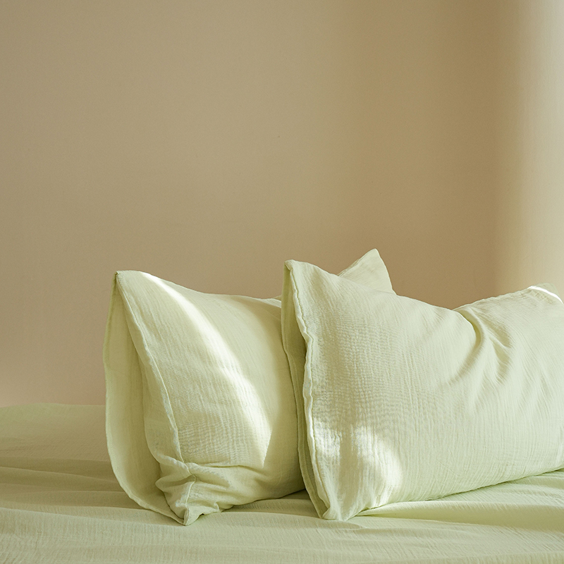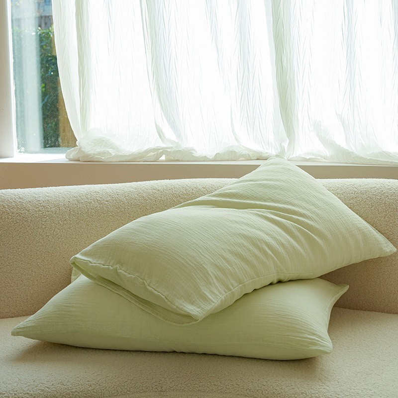 商品名称:简纯主义 2025新款全棉有机雾感纱双层皱皱纱系列单枕套绿豆