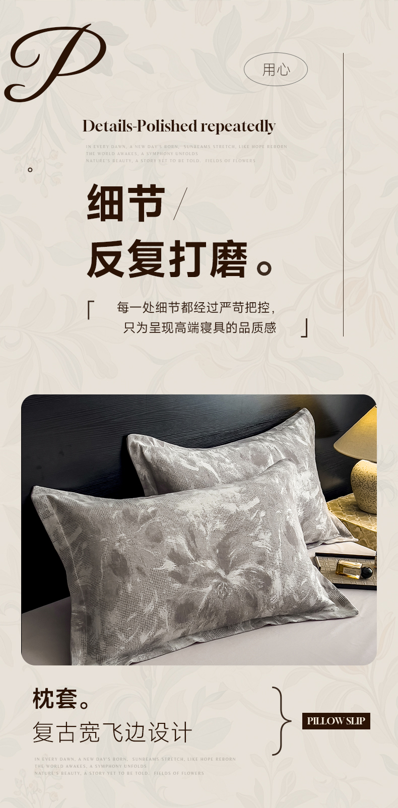倾慕家纺 2025新款60S提花全棉单品枕套 涂鸦灰
