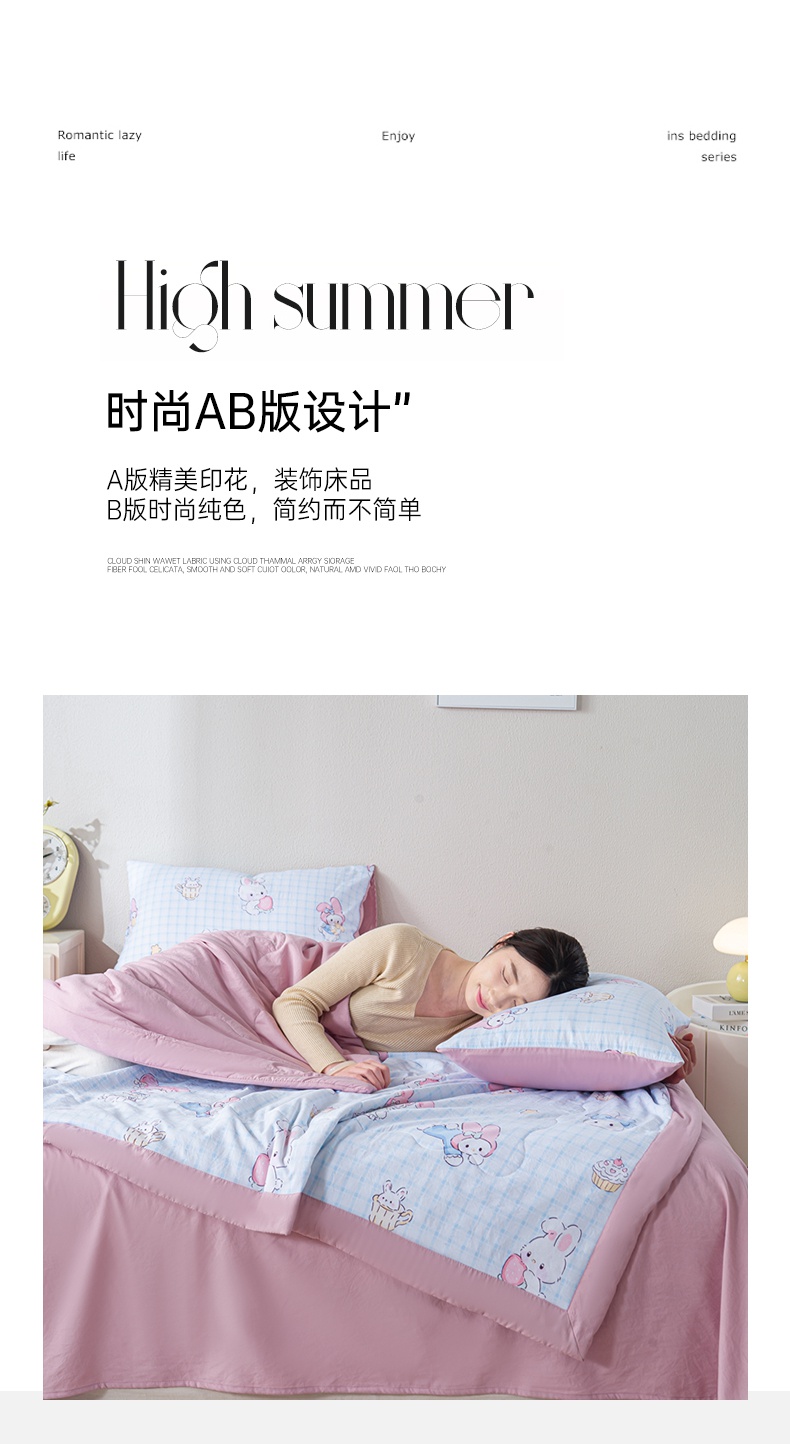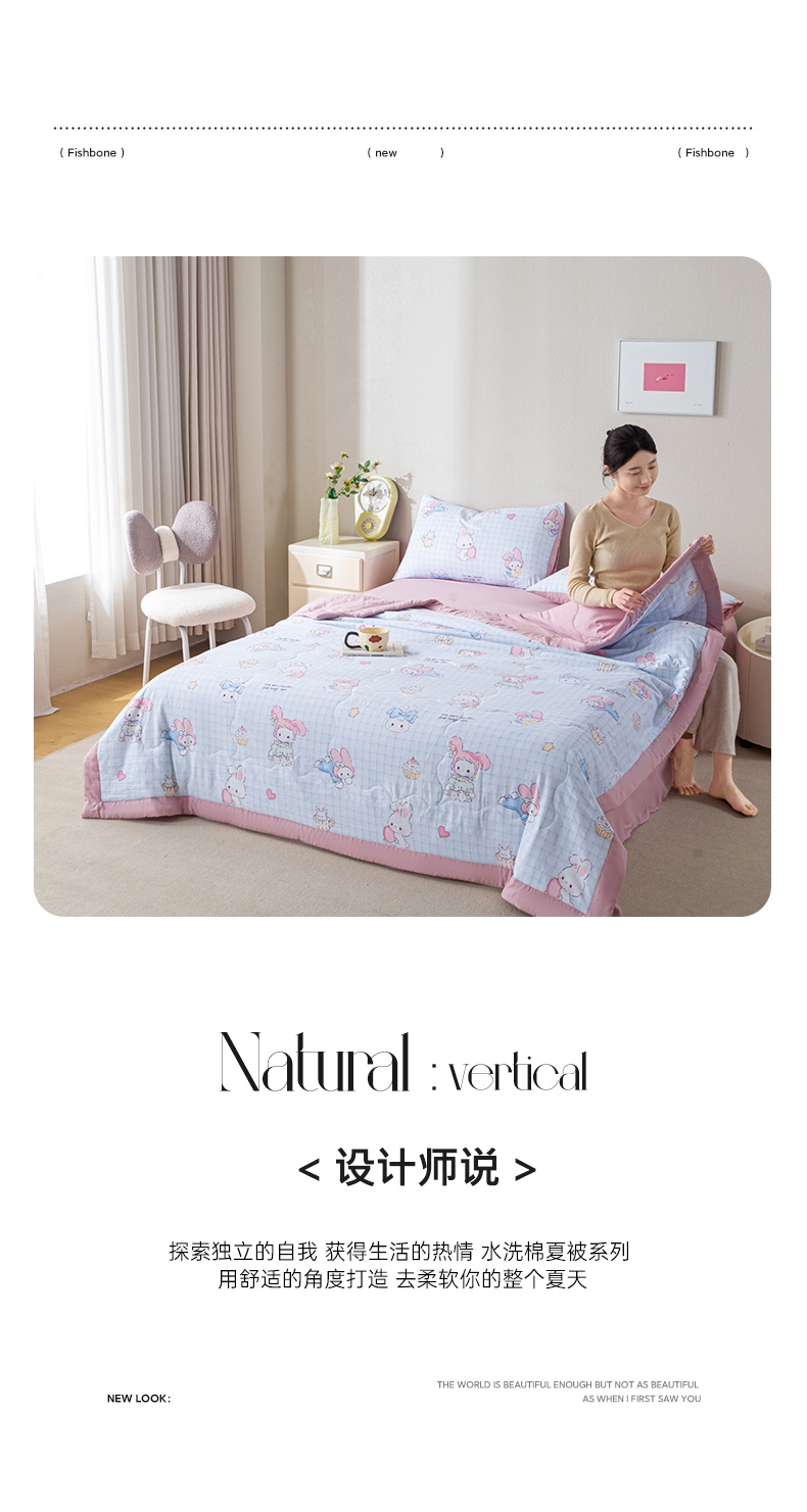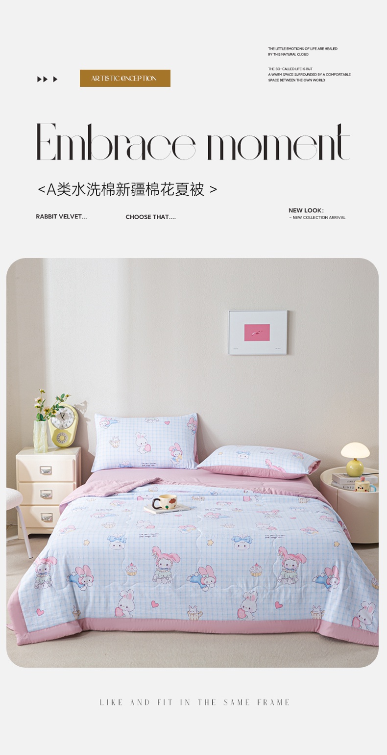 • 91家纺网 家纺一手货源 找家纺 慕木家纺 2025新款A类水洗棉印花新疆棉花夏被空调被(抽空压缩可供跨境) 萌兔宝贝