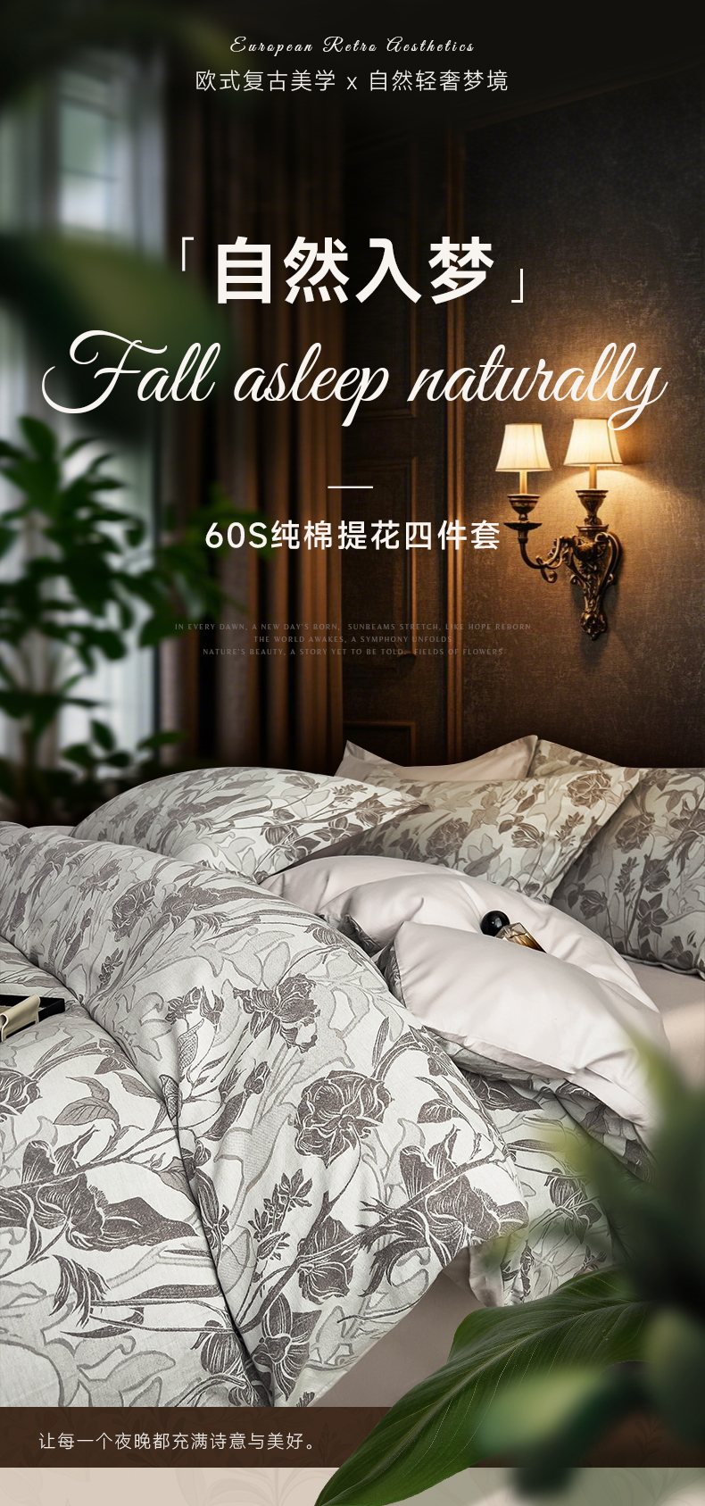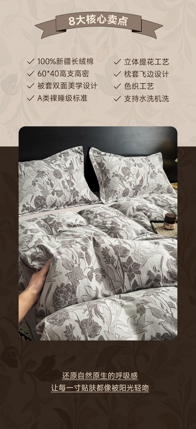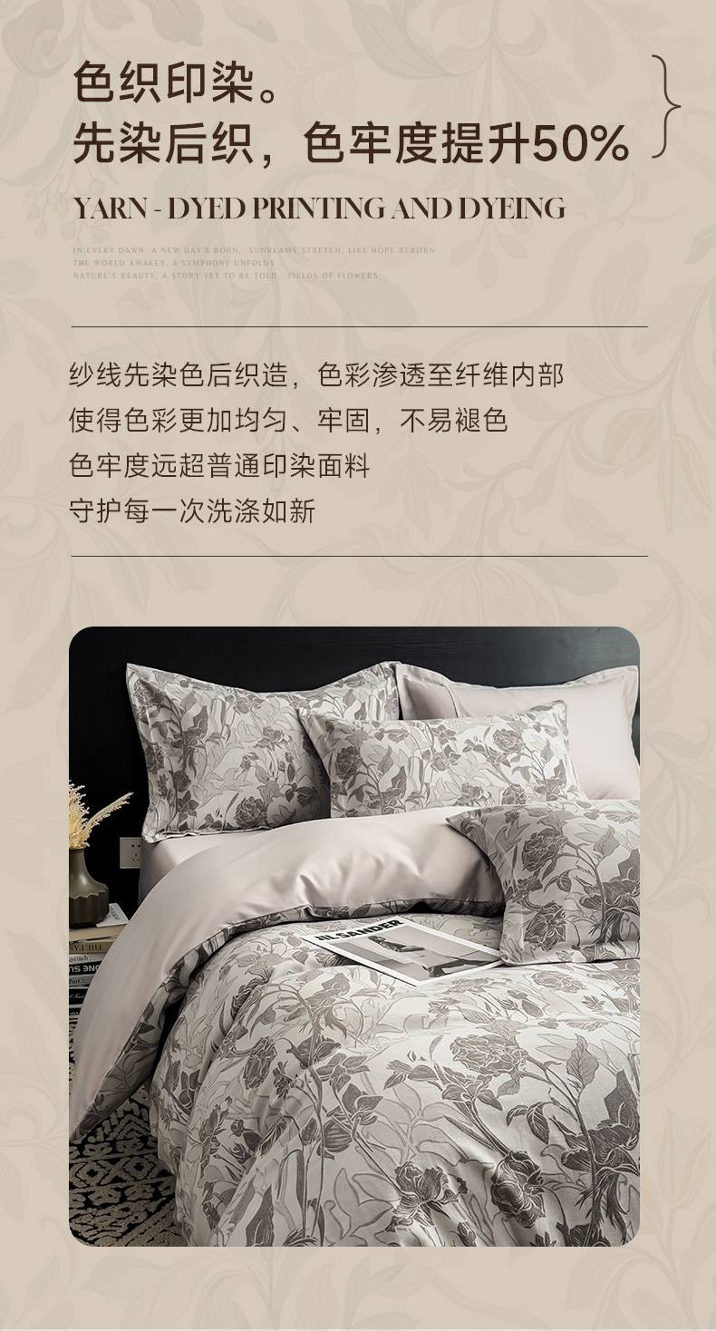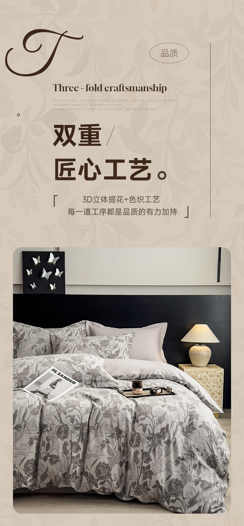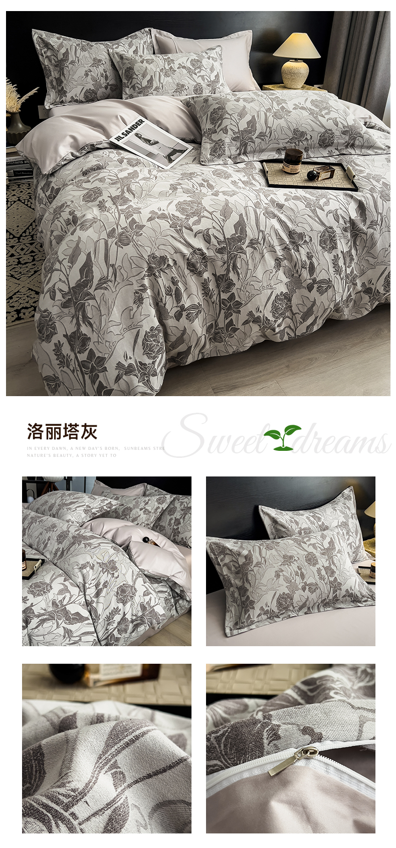 商品名称:倾慕家纺 2025新款60S提花全棉单品被套 洛丽塔灰