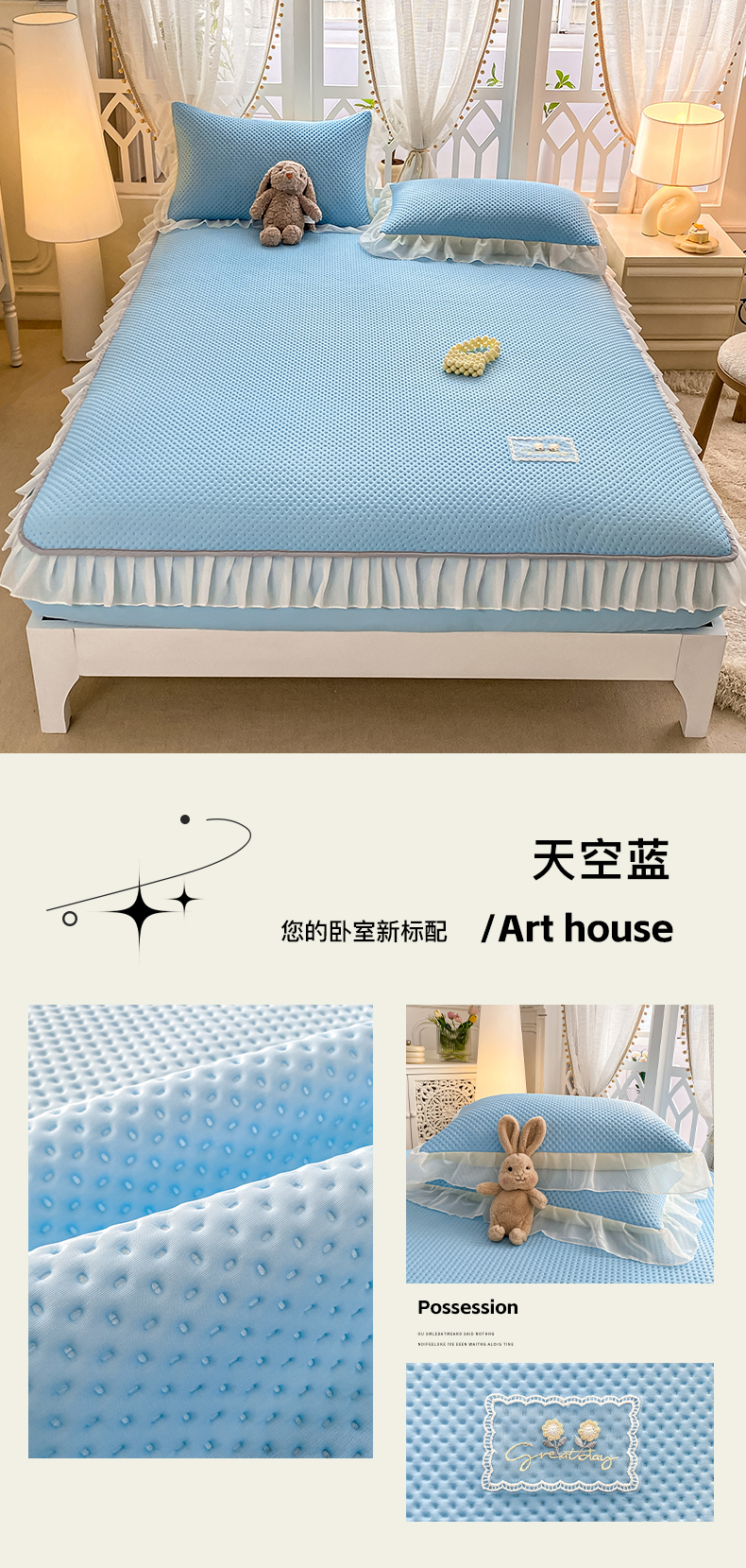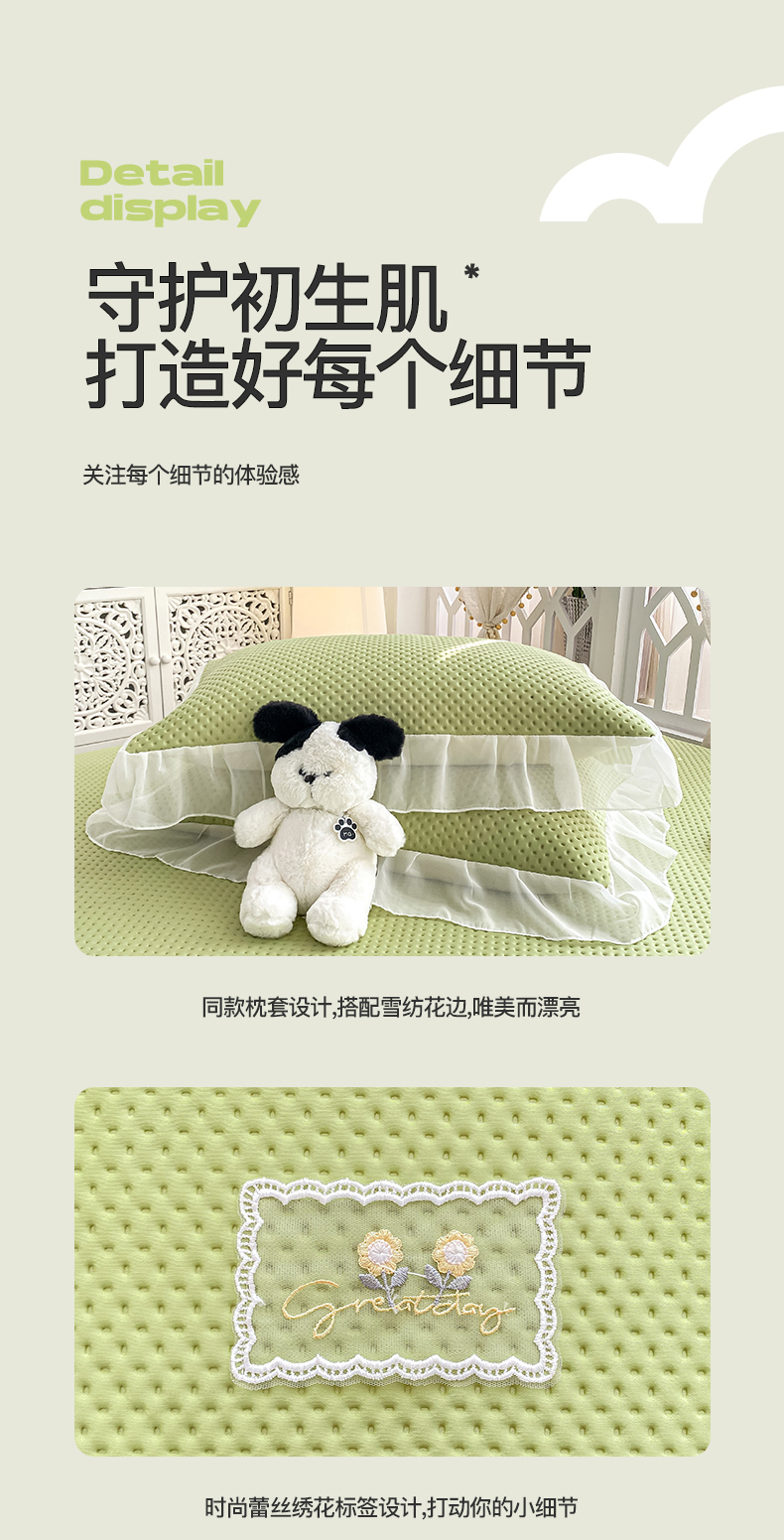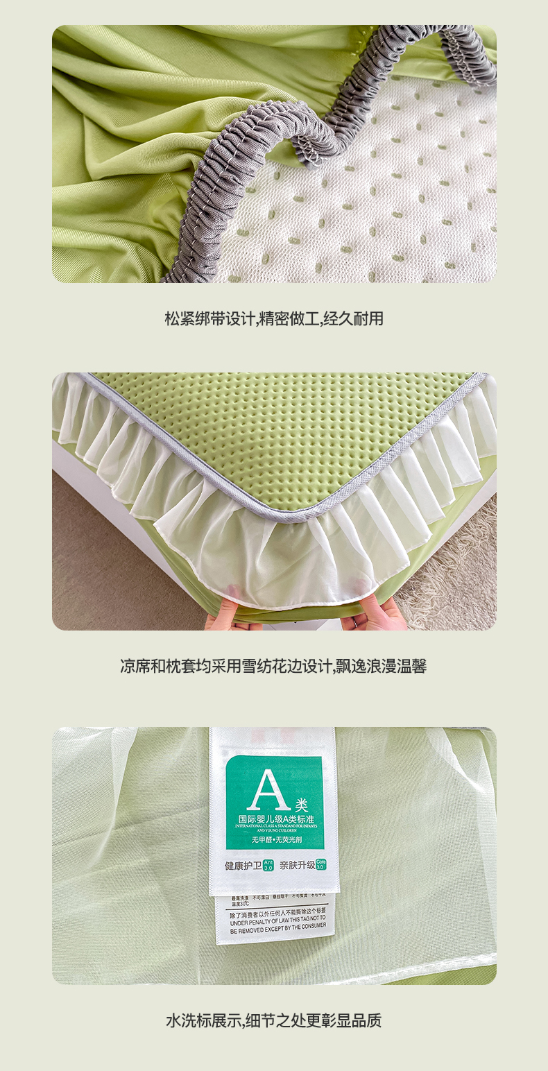 商品名称:(总)眠势力 2025新款华夫格花边床笠豆豆凉席款夏季凉感床垫保护套 (提供买家秀)