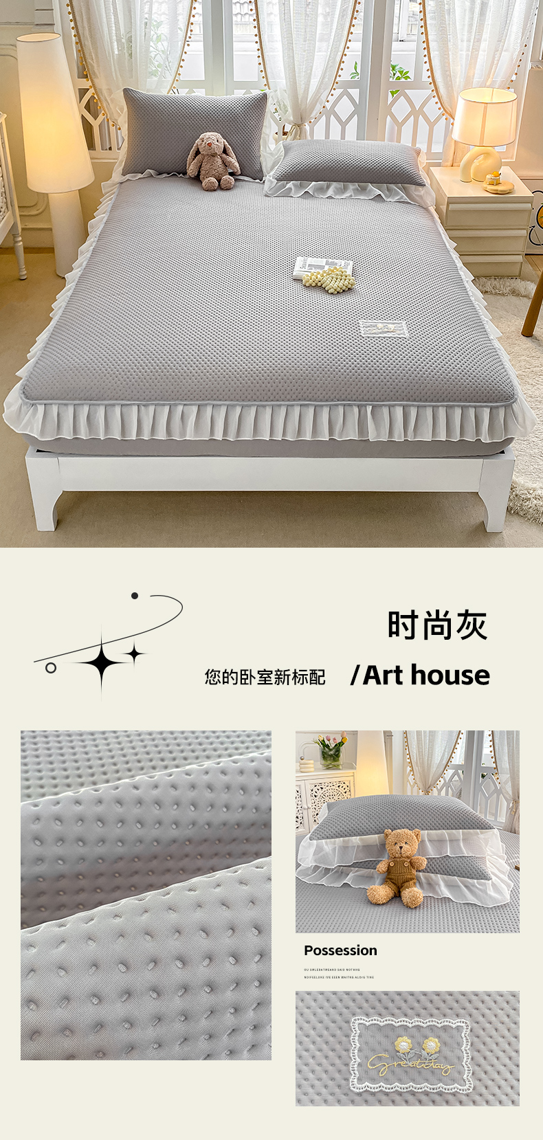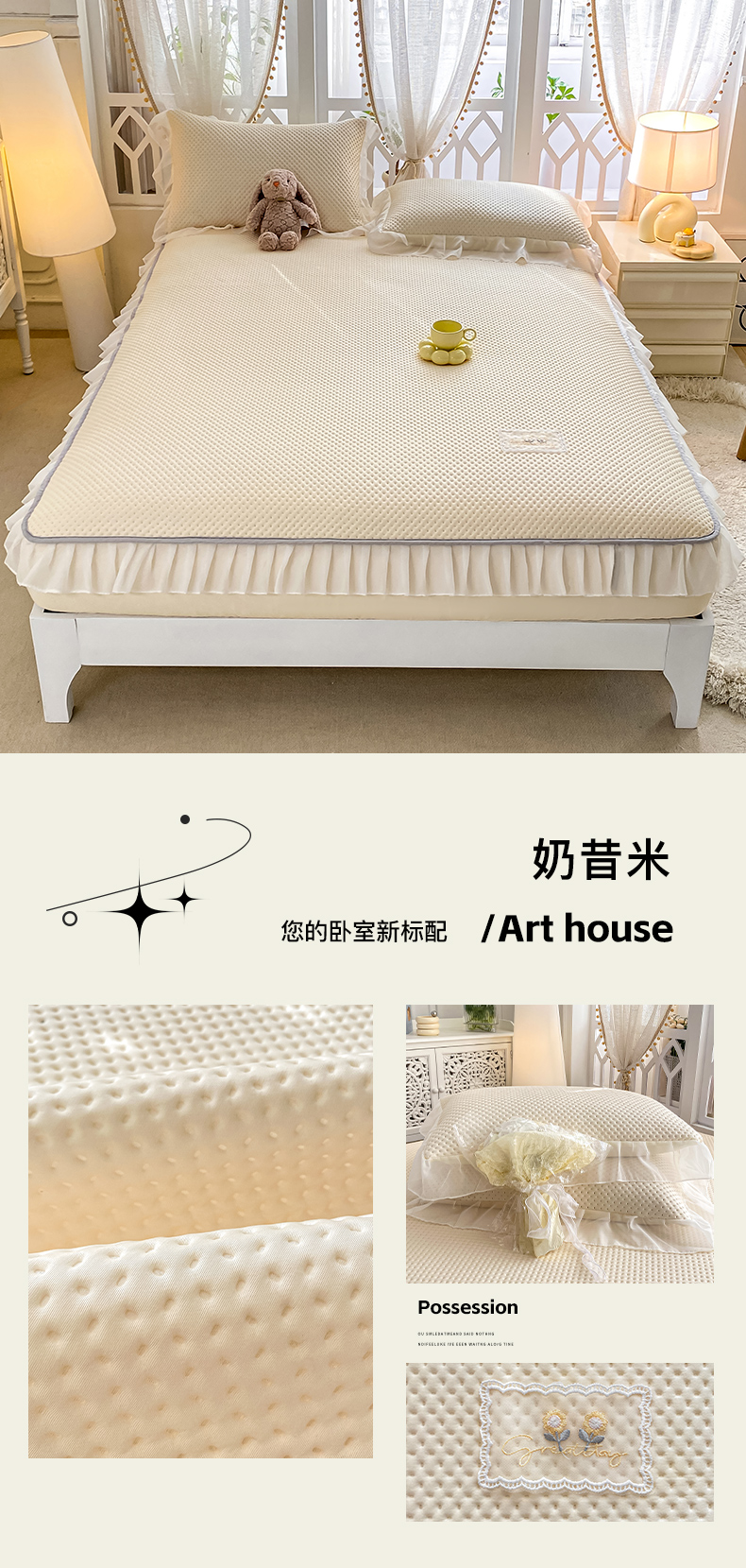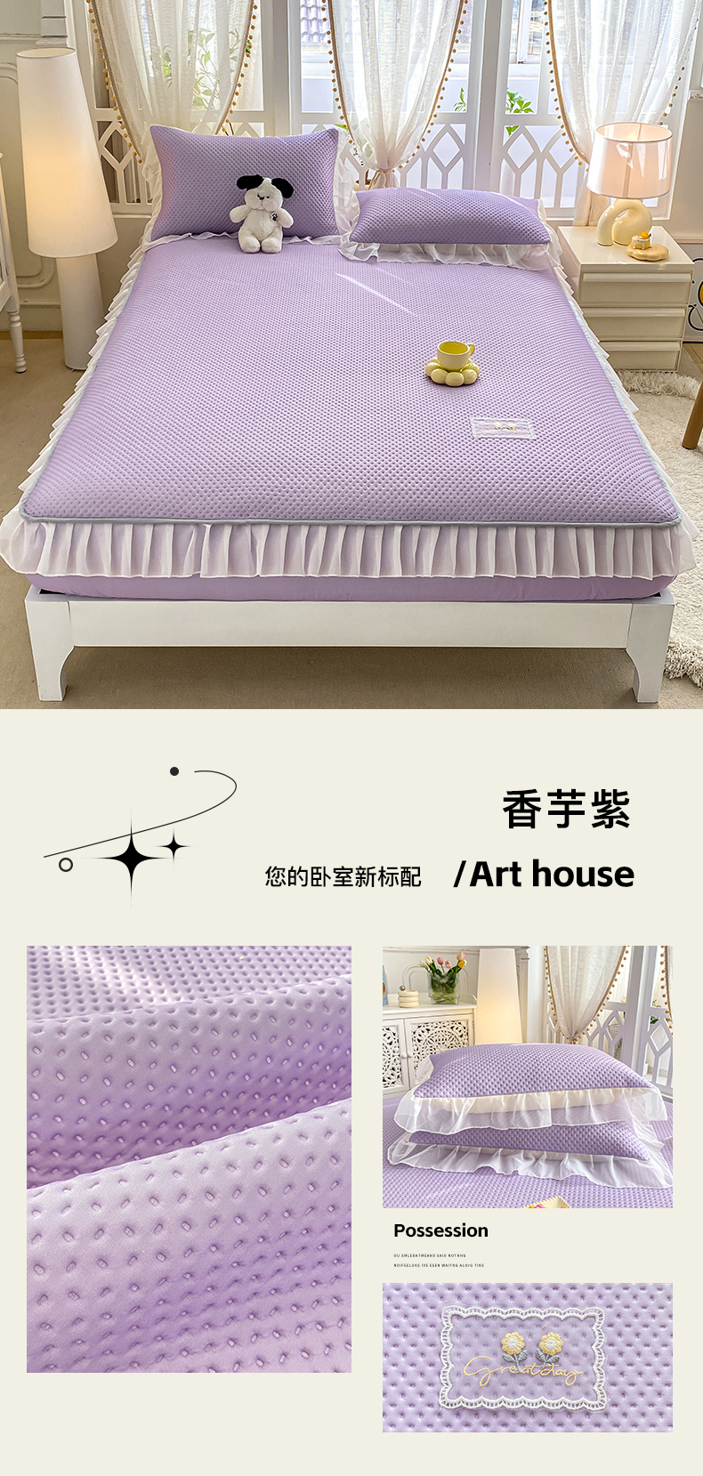 商品名称:(总)眠势力 2025新款华夫格花边床笠豆豆凉席款夏季凉感床垫保护套 (提供买家秀)