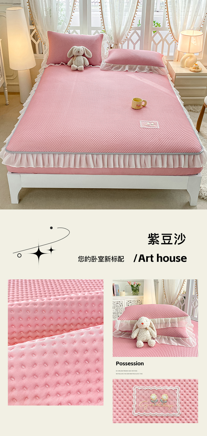 (总)眠势力 2025新款兔毛绒雕花床笠单件冬季兔兔绒加绒保暖席梦思床垫保护套全包,繁花-沁粉,繁花-灰紫,繁花-绒绿,繁花-霜兰,若溪-灰紫,若溪-沁粉,若溪-绒绿,若溪-霜兰