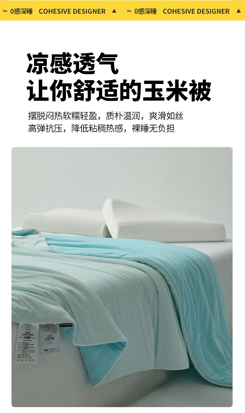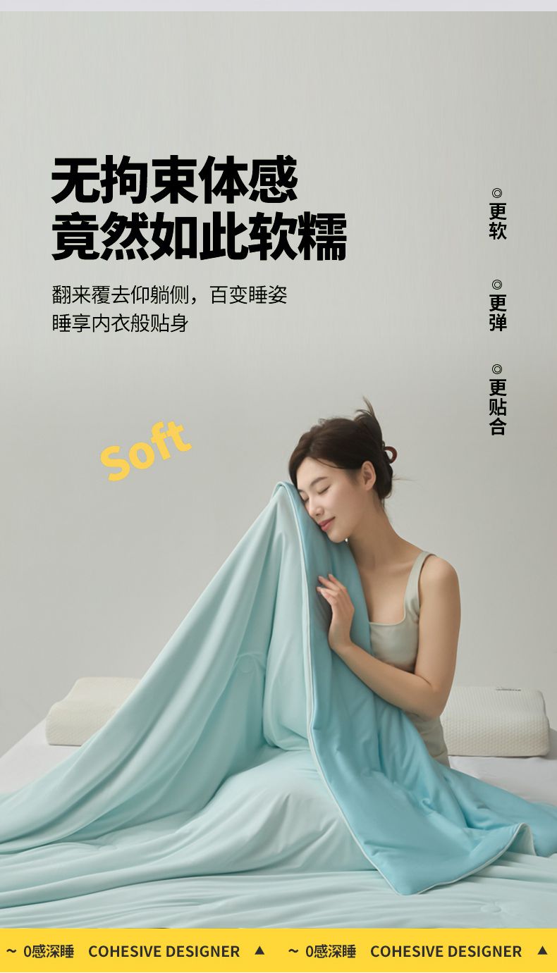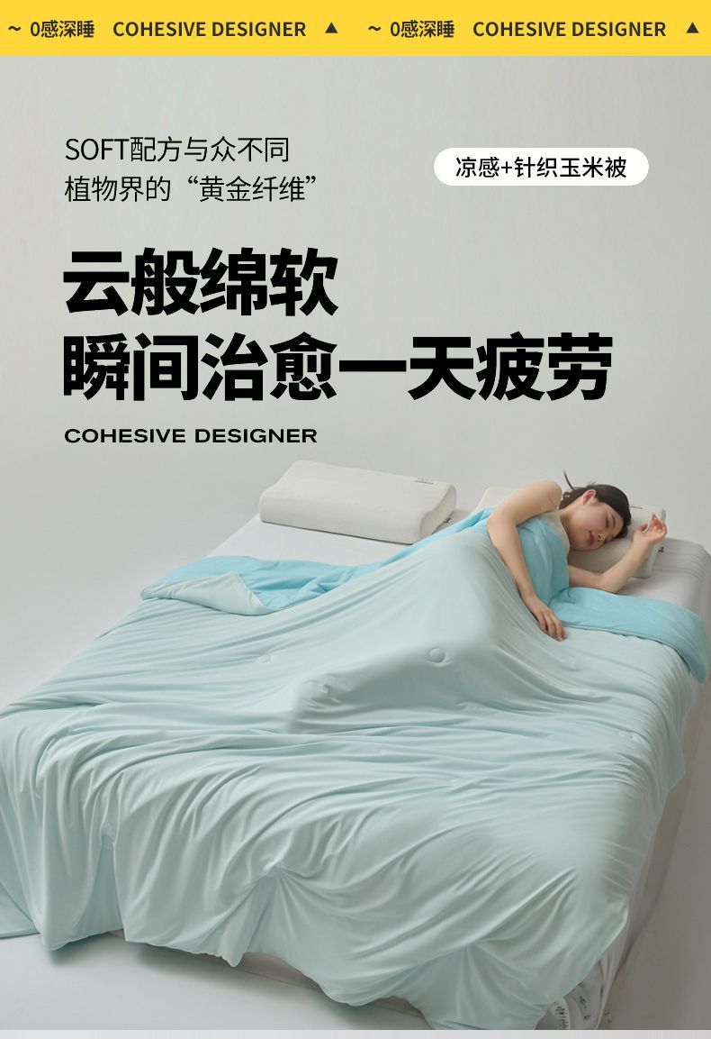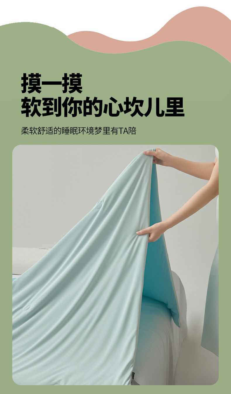 商品名称:帕拉美拉 2025新款凉感丝夏被针织棉高克重玉米聚乳酸双拼两用被 水绿+天蓝