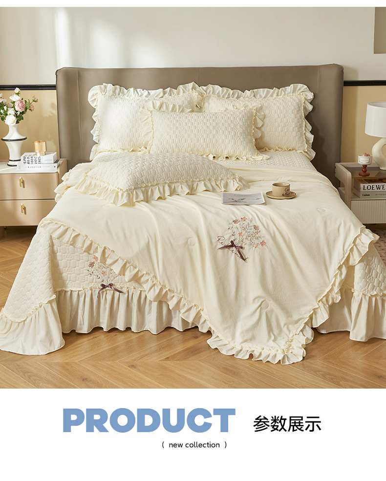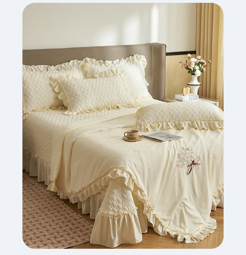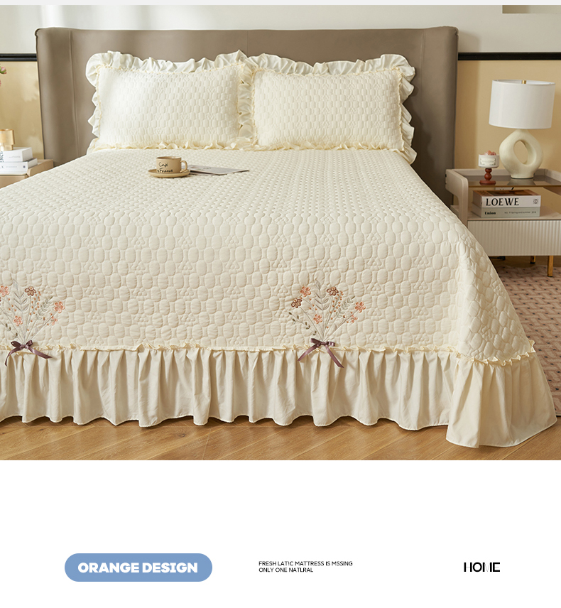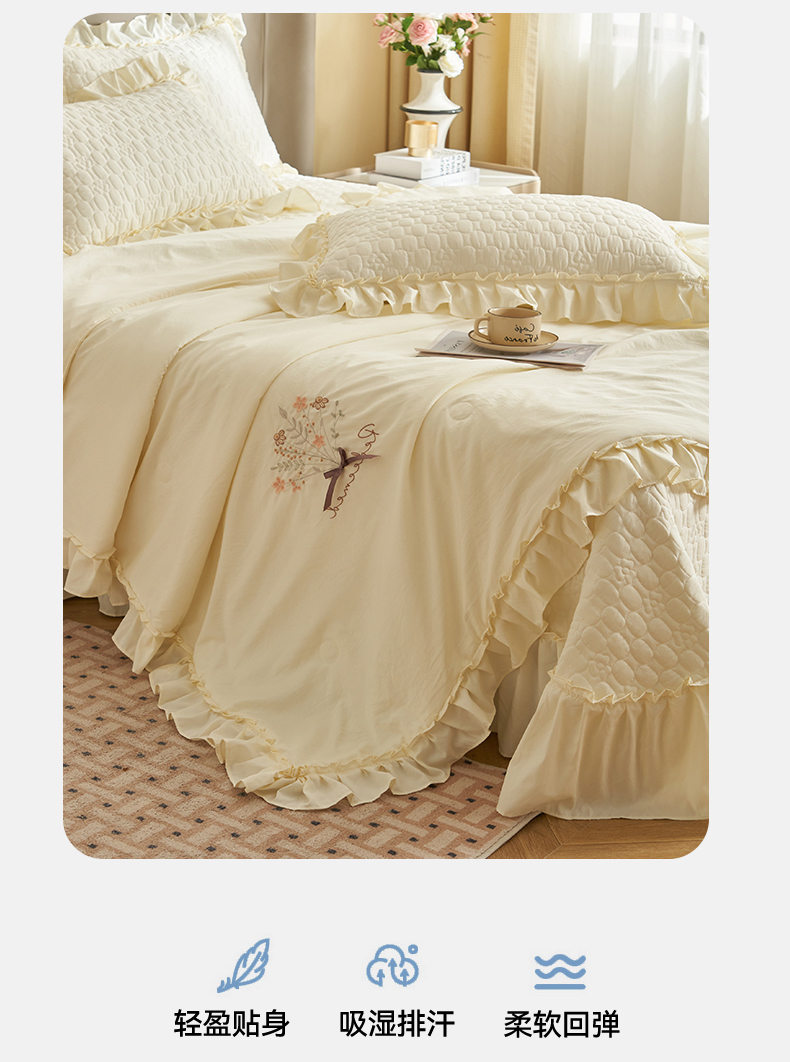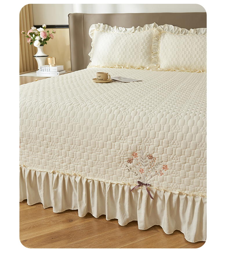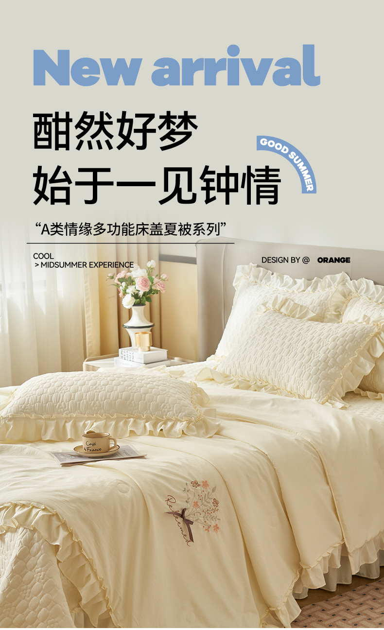 恒爱家纺 2025新款A类情缘多功能床盖四件套 奶昔白