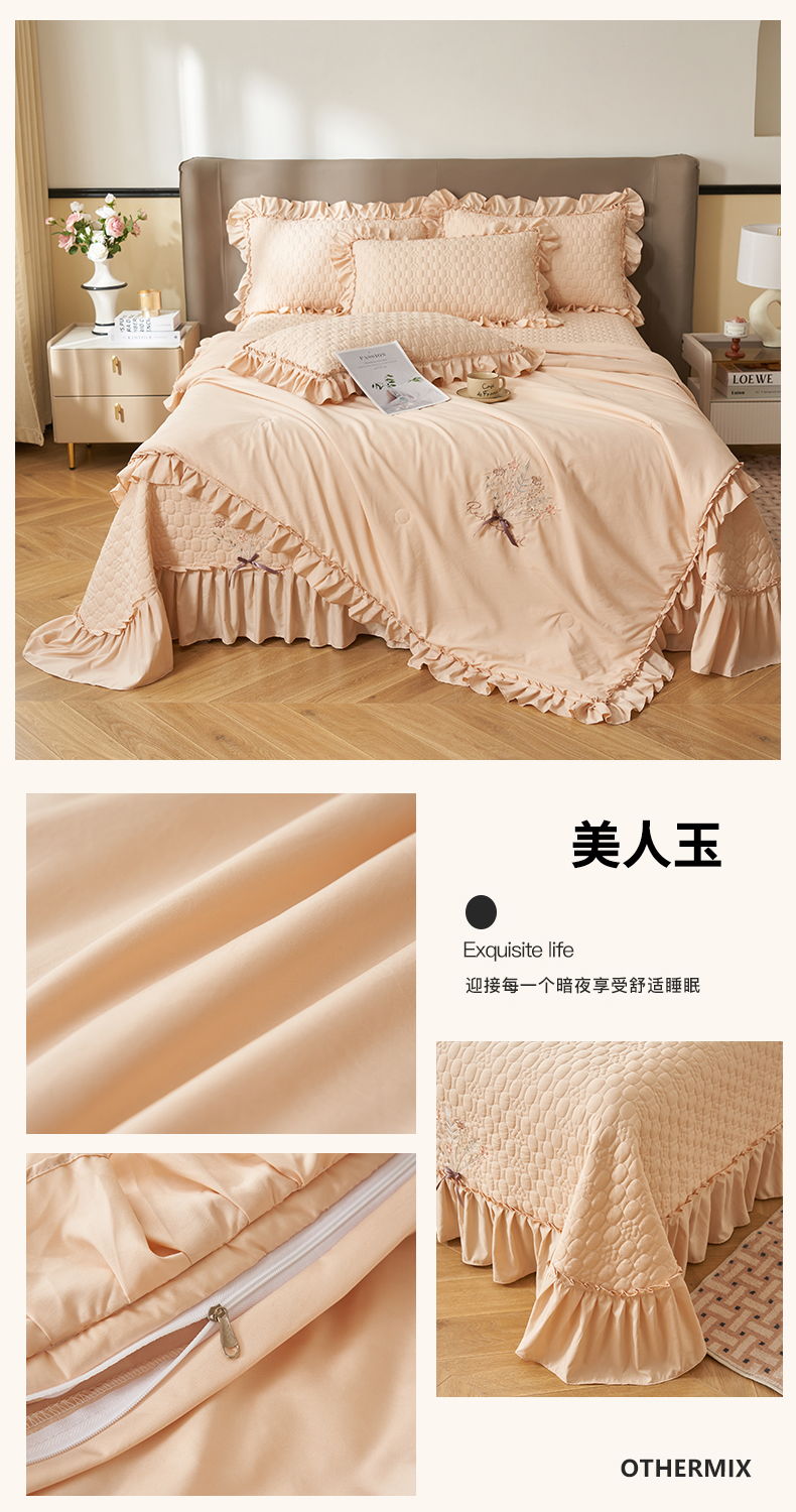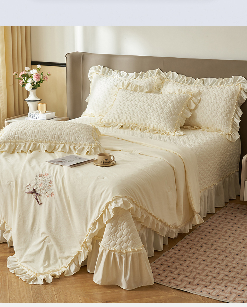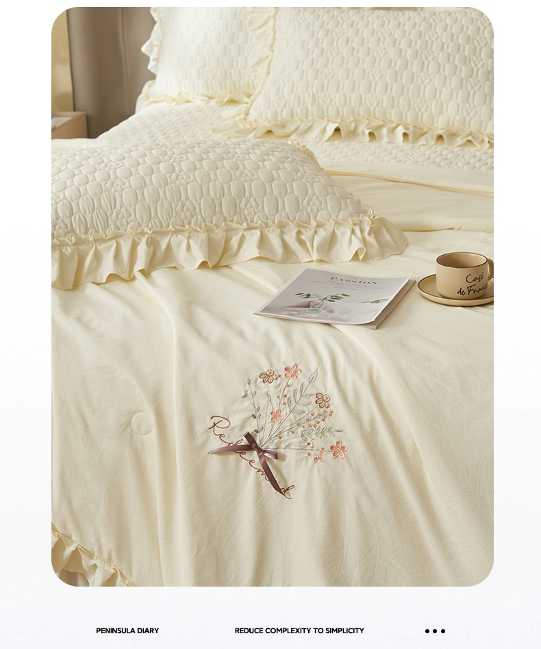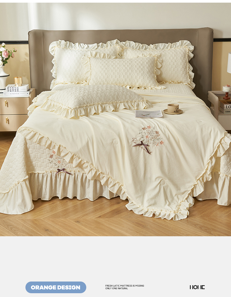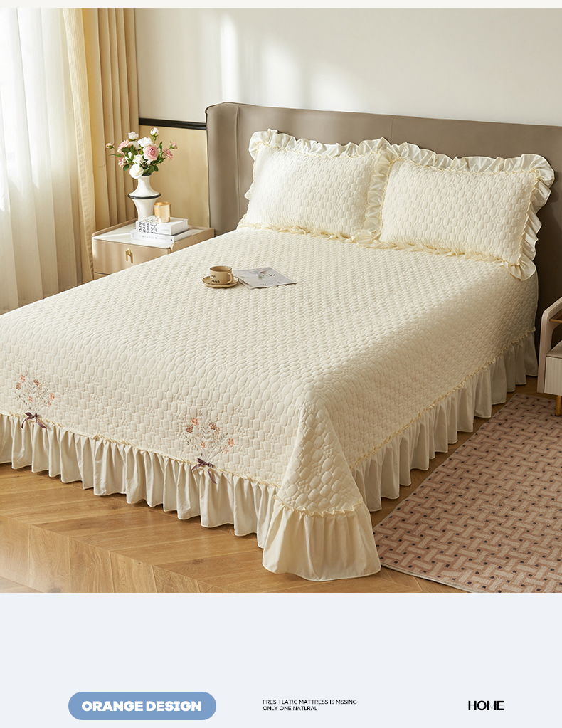 恒爱家纺 2025新款A类情缘多功能床盖四件套 奶昔白