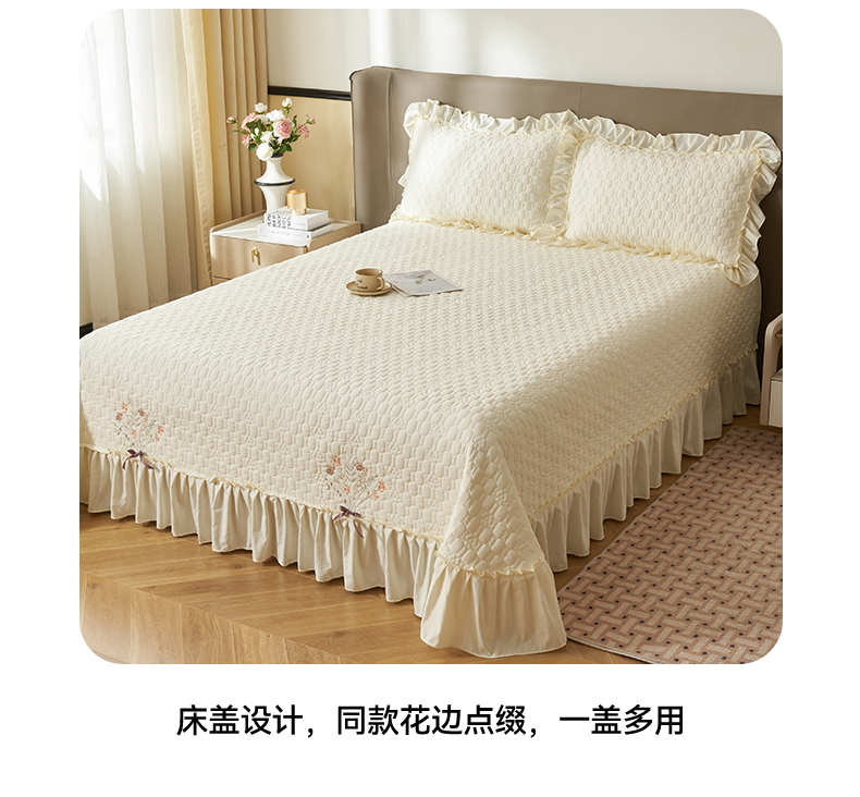 商品名称:恒爱家纺 2025新款A类情缘多功能床盖四件套 奶昔白