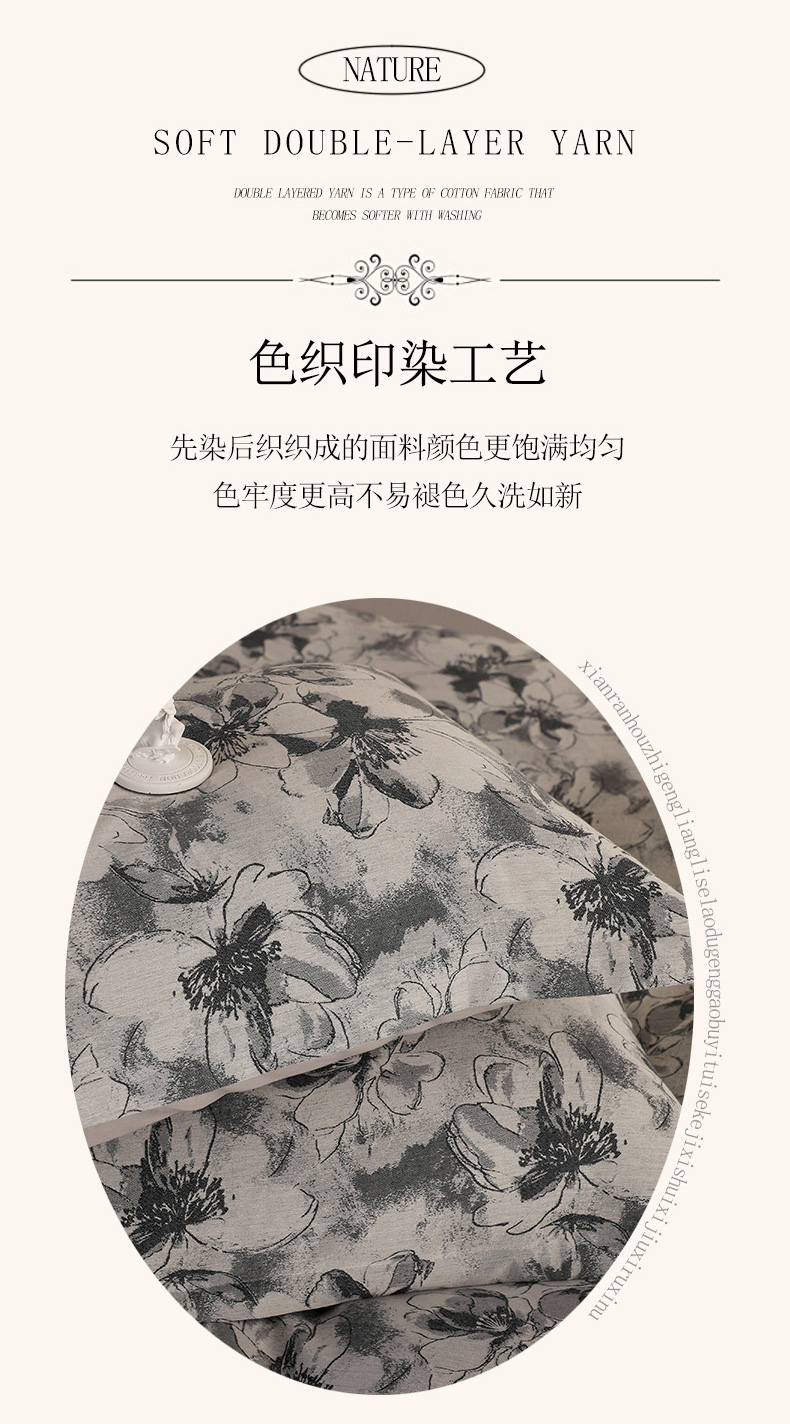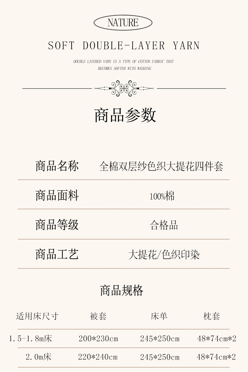 商品名称:昊川家纺 2025新款全棉双层纱水洗色织大提花四件套 百合