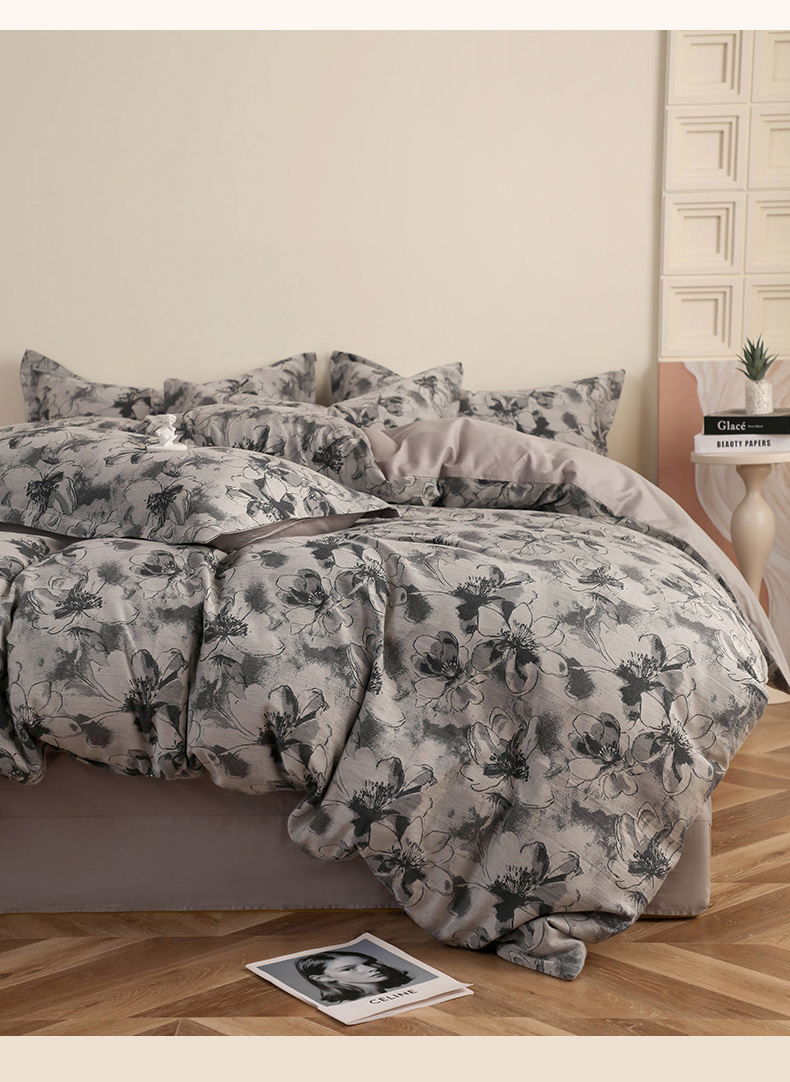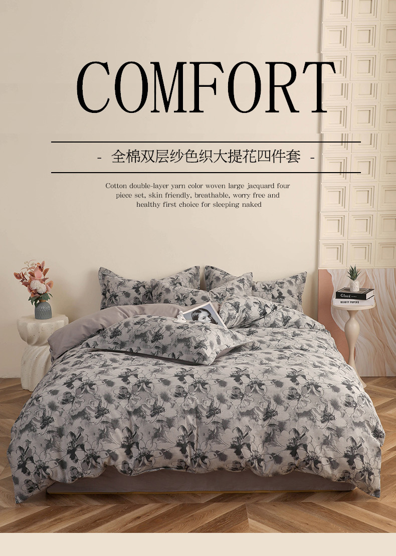 昊川家纺 2025新款全棉双层纱水洗色织大提花四件套 百合
