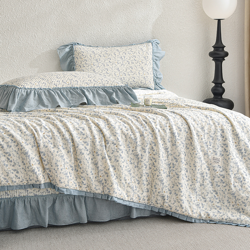 商品名称:有货 2025春夏新款全棉纯棉双层纱夏被夏凉被空调被+床盖三件套 蝶梦