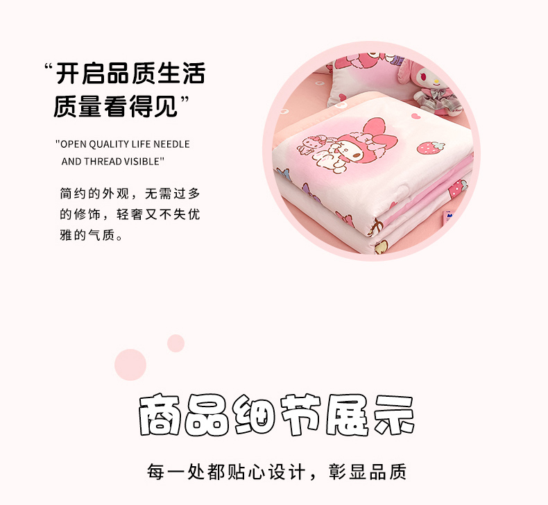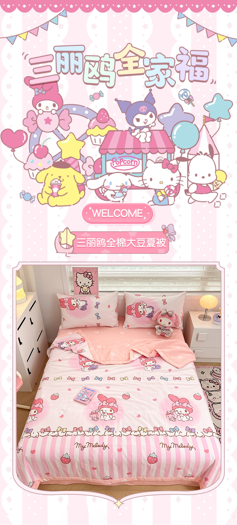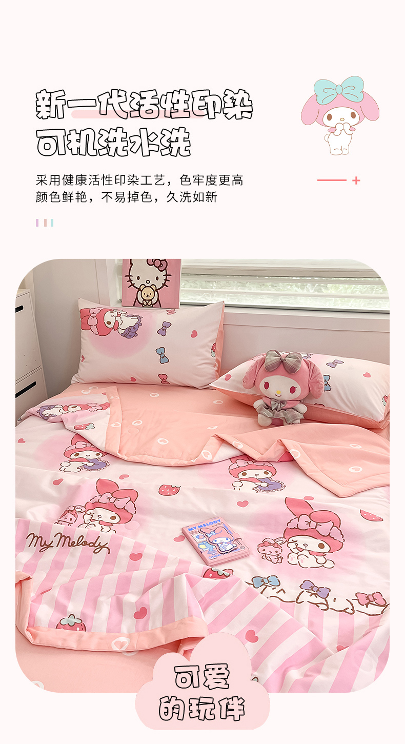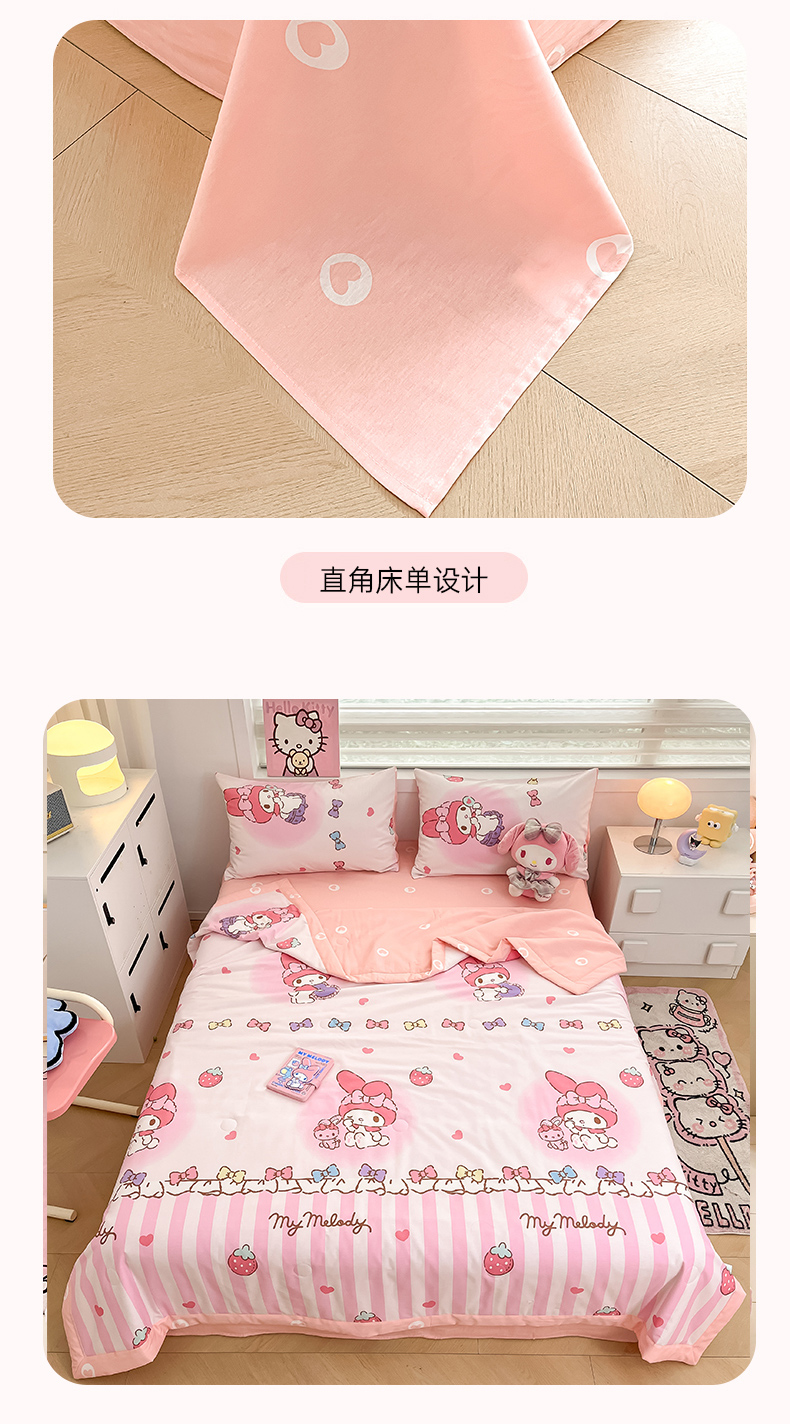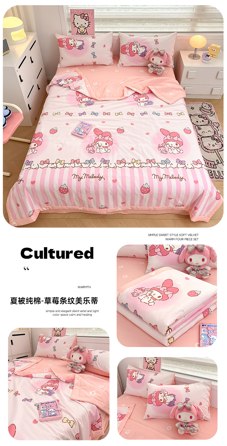 商品名称:博雅 2025新款三丽鸥全棉纯棉夏被夏凉被空调被四件套 夏被全棉-草莓条纹美乐蒂