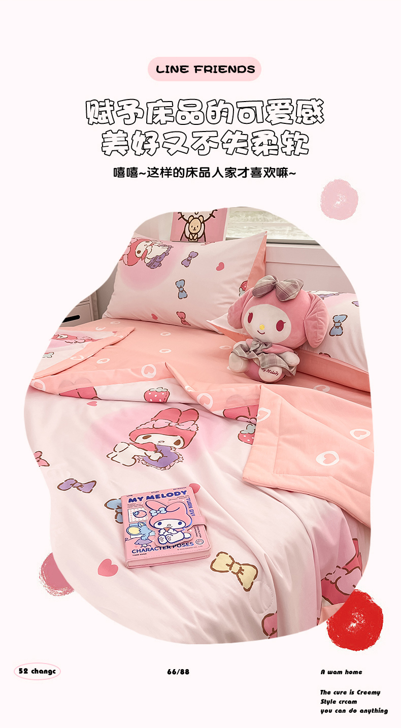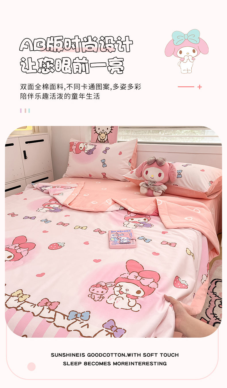 博雅 2025新款三丽鸥全棉纯棉夏被夏凉被空调被四件套 夏被全棉-草莓条纹美乐蒂