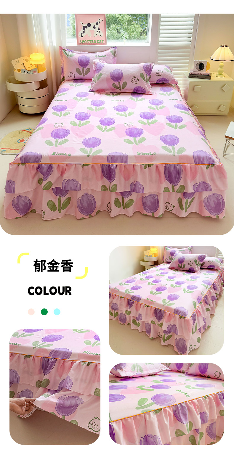 • 91家纺网 家纺一手货源 找家纺 爱一个家 2023新款芦荟棉双边单床裙 郁金香