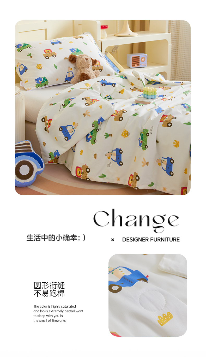 (总)ds生活馆 2025新款儿童学生纯棉精梳棉系列单夏被,森林巴士,草莓生活,海底世界,花朵小鸭,滑板巴拉,水果恐龙,太空库洛米,玩具玉桂狗,小狗熊猫,星星恐龙白,星星恐龙蓝,星星恐龙绿