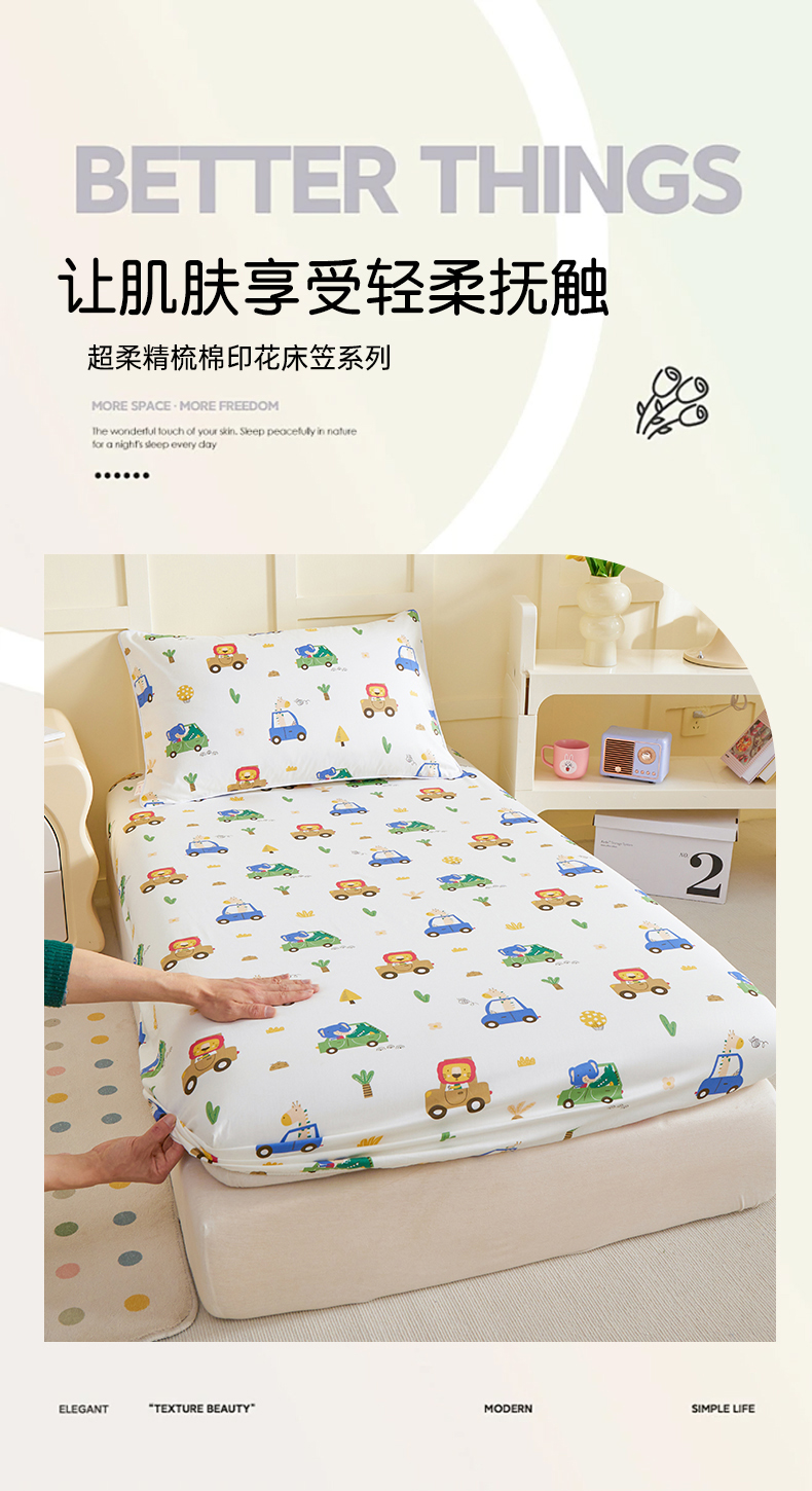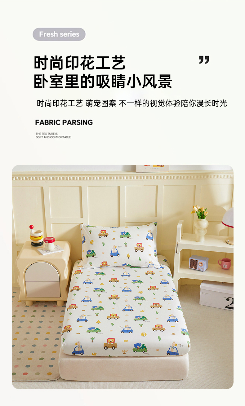 ds生活馆 2025新款儿童纯棉精梳棉系列单床笠 森林巴士