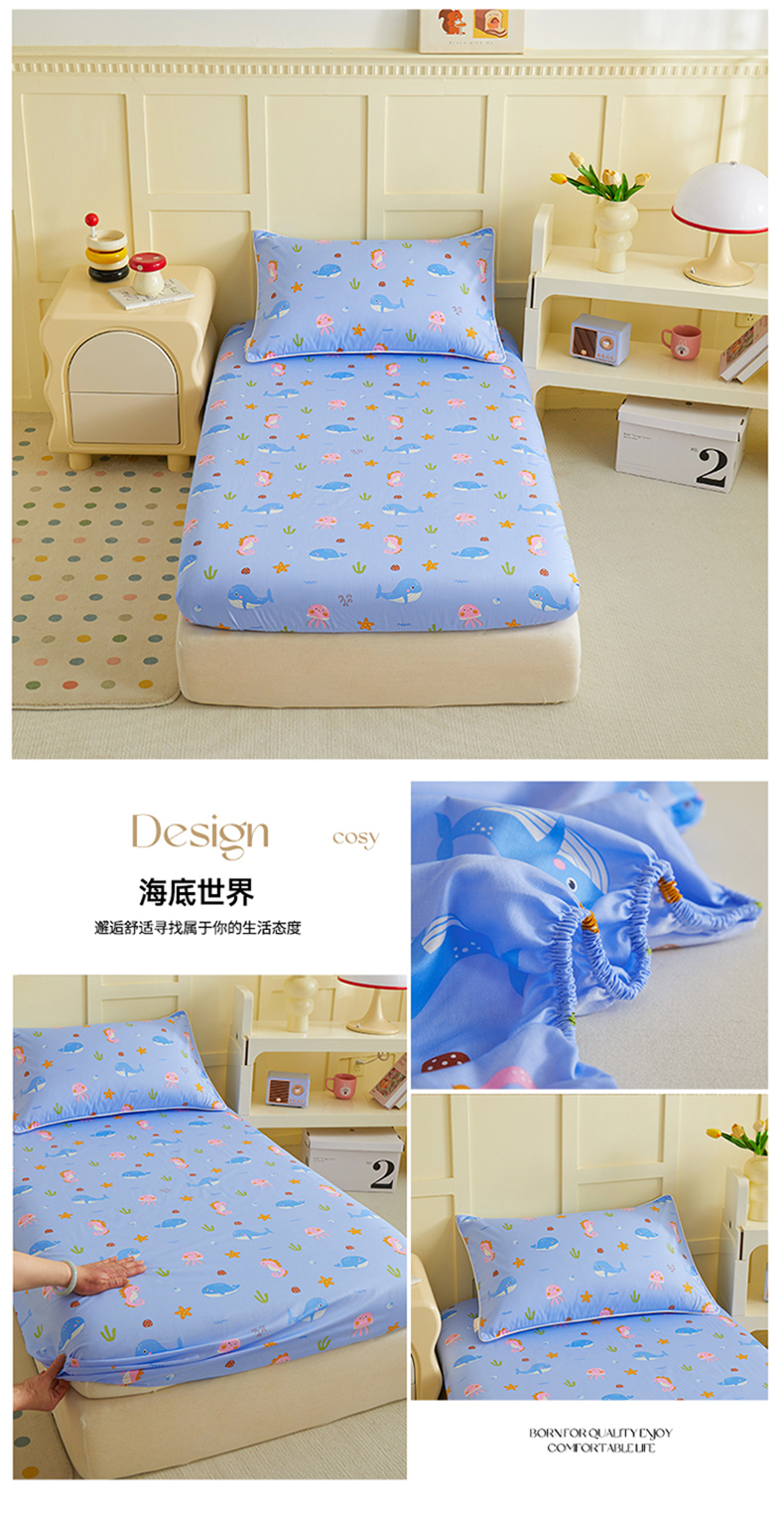 (总)ds生活馆 2025新款儿童纯棉精梳棉系列单床笠,森林巴士,草莓生活,海底世界,花朵小鸭,滑板巴拉,水果恐龙,太空库洛米,玩具玉桂狗,小狗熊猫,星星恐龙白,星星恐龙蓝,星星恐龙绿
