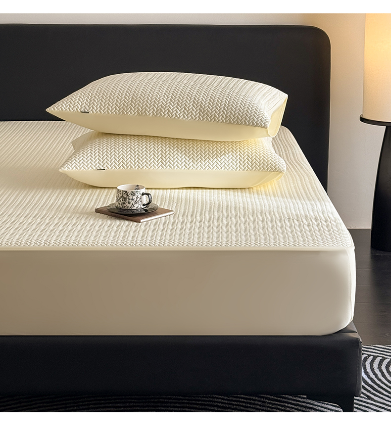 床上用品 > 床笠 > Mr.pig猪先生水洗棉 2025新款天丝莱赛尔夹棉床笠夏季凉感冰丝凉席天丝床笠三件套冰丝床罩床垫保护套(可当软凉席) 菱格-伊连青