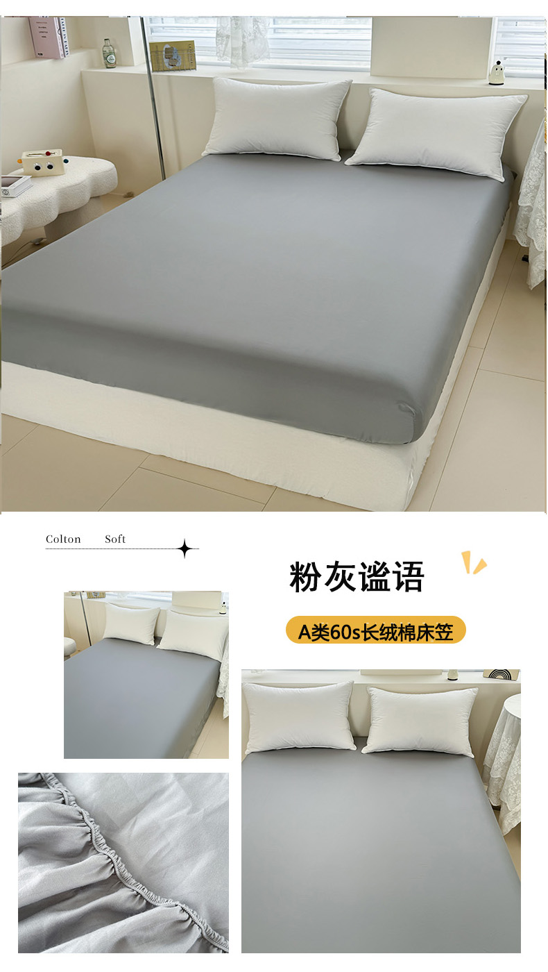 艾迪尚家纺 2025新款A类纯色双拼长绒棉纯棉刺绣系列单品床笠 床笠单件(有单品 可定制) 粉灰谧语