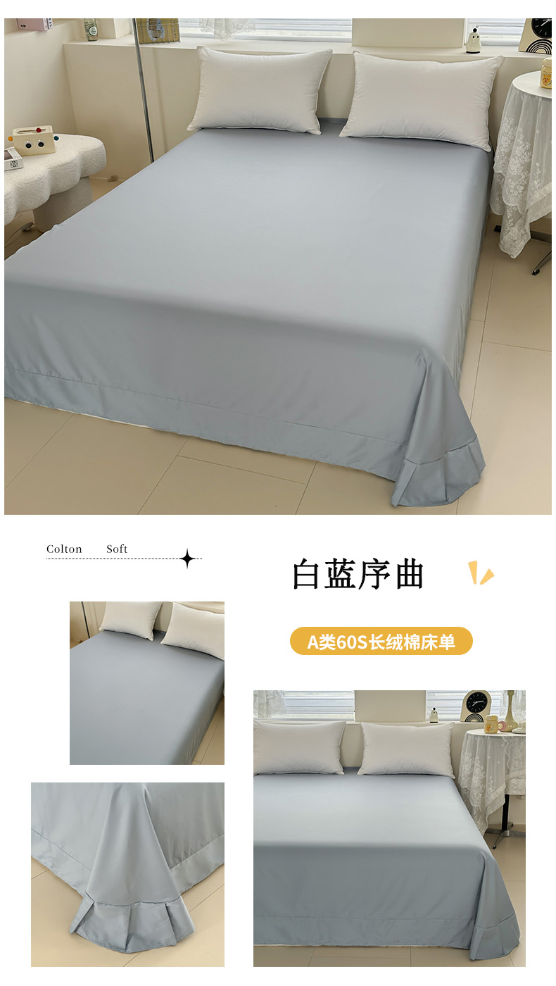 商品名称:艾迪尚家纺 2025新款A类纯色双拼长绒棉纯棉刺绣系列单品床单 床单单件(有单品 可定制) 白蓝序曲