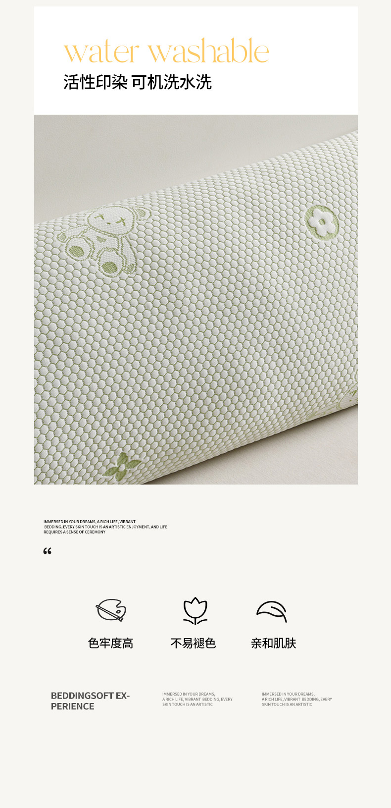 商品名称:艾兜坊 2025新款凉豆豆双人枕套 极简小熊-绿
