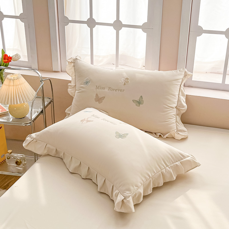 恋之语 2025新款水洗棉刺绣花边四件套-蝶羽 蝶羽-米白