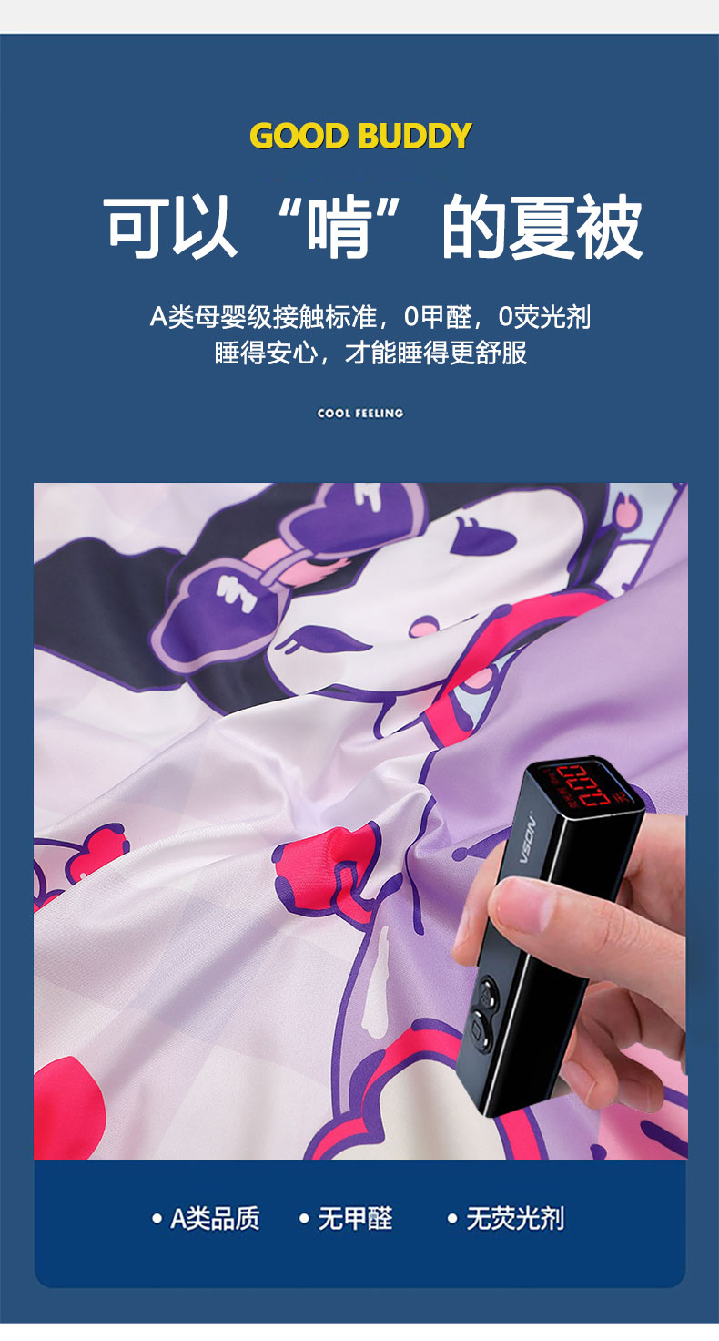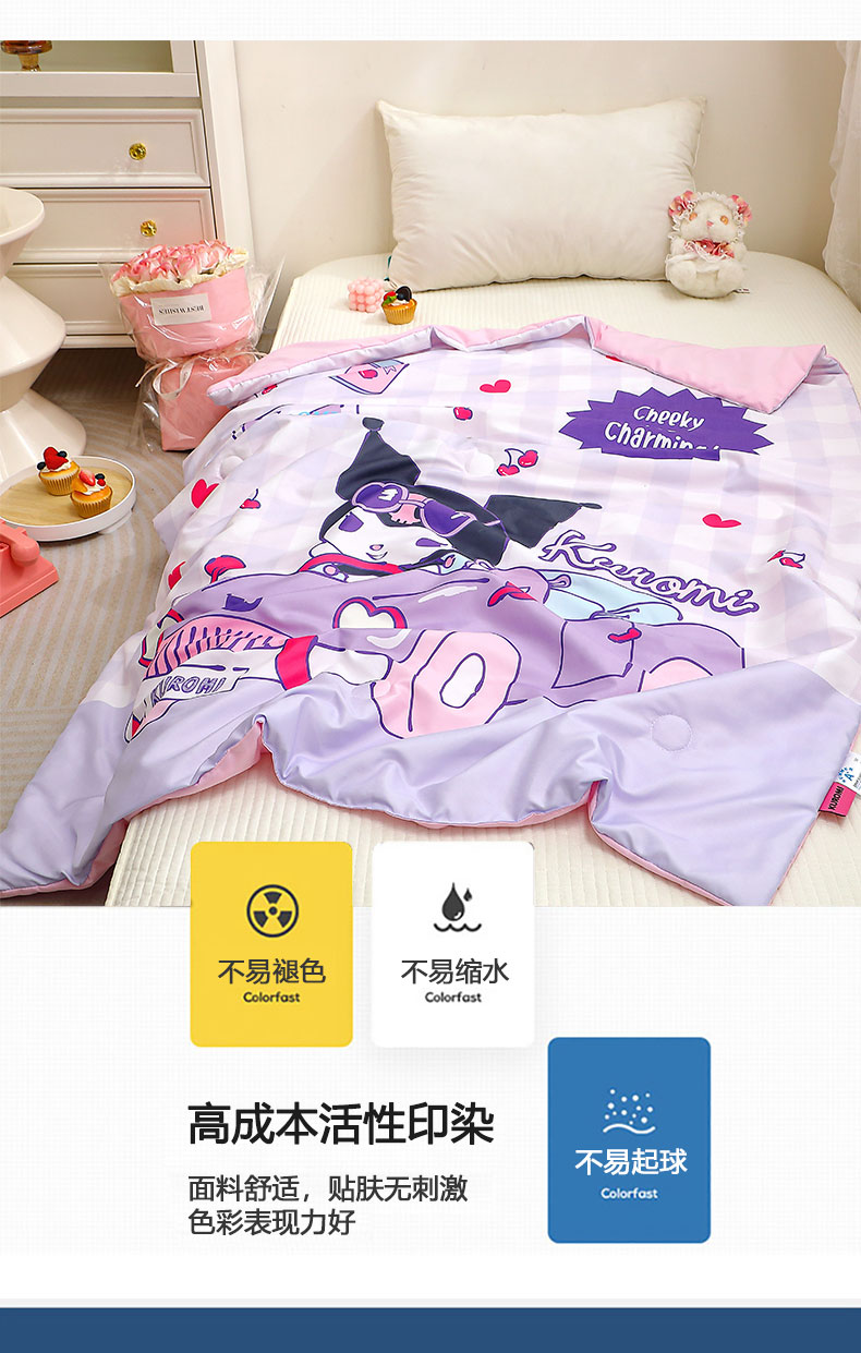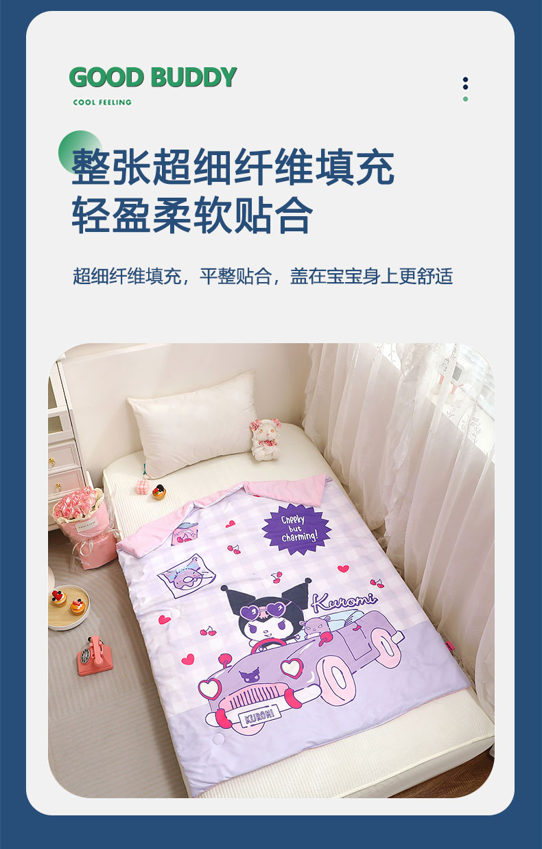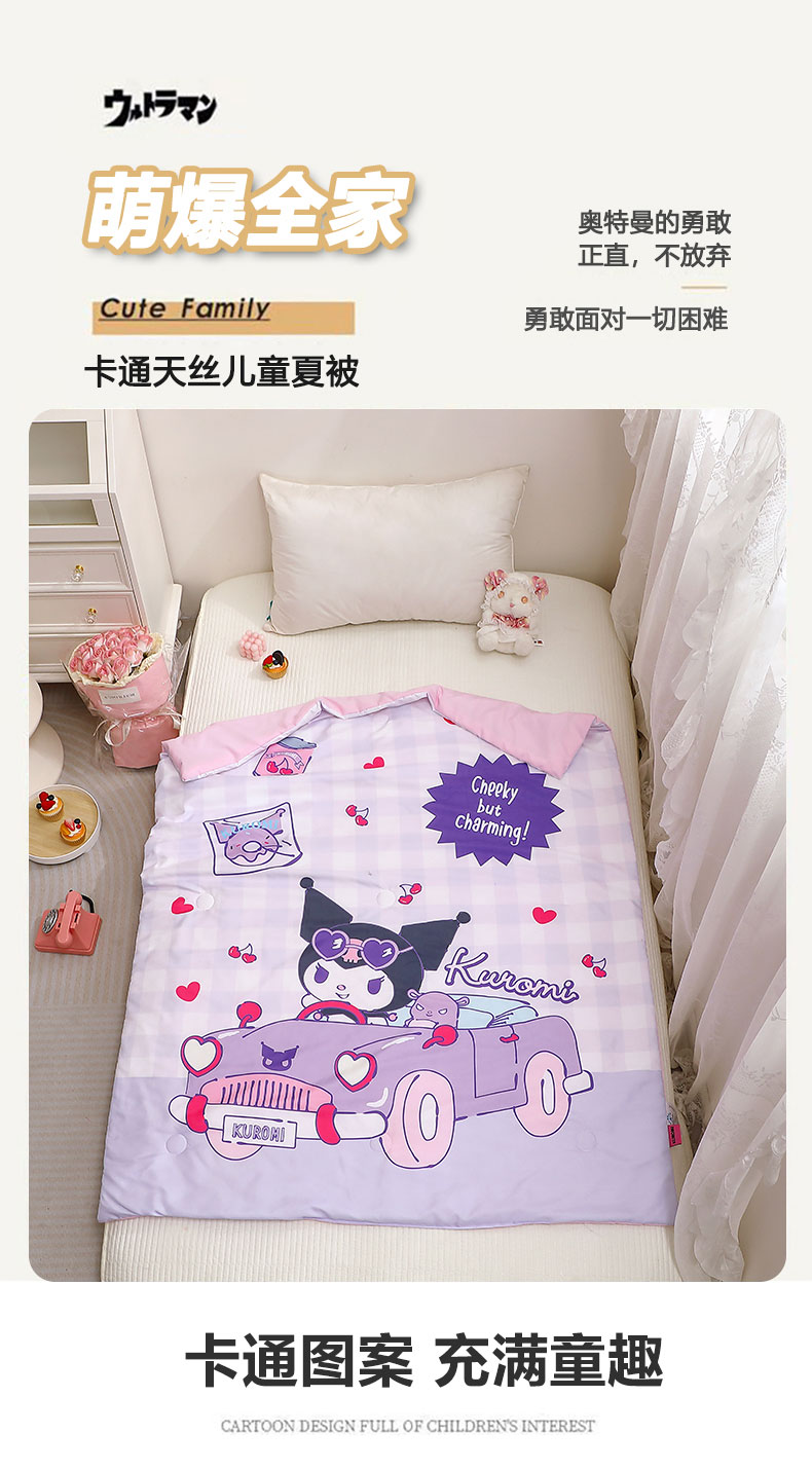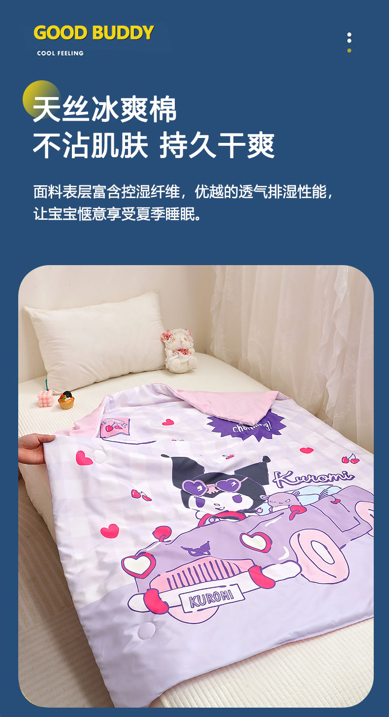 商品名称:2025新款三丽鸥正版授权库洛米儿童大版夏被夏凉被凉感天丝空调被夏凉被幼儿园午睡凉席夏被三件套 库洛米-汽车
