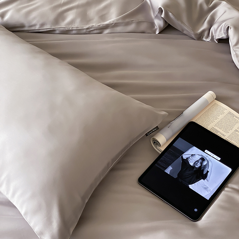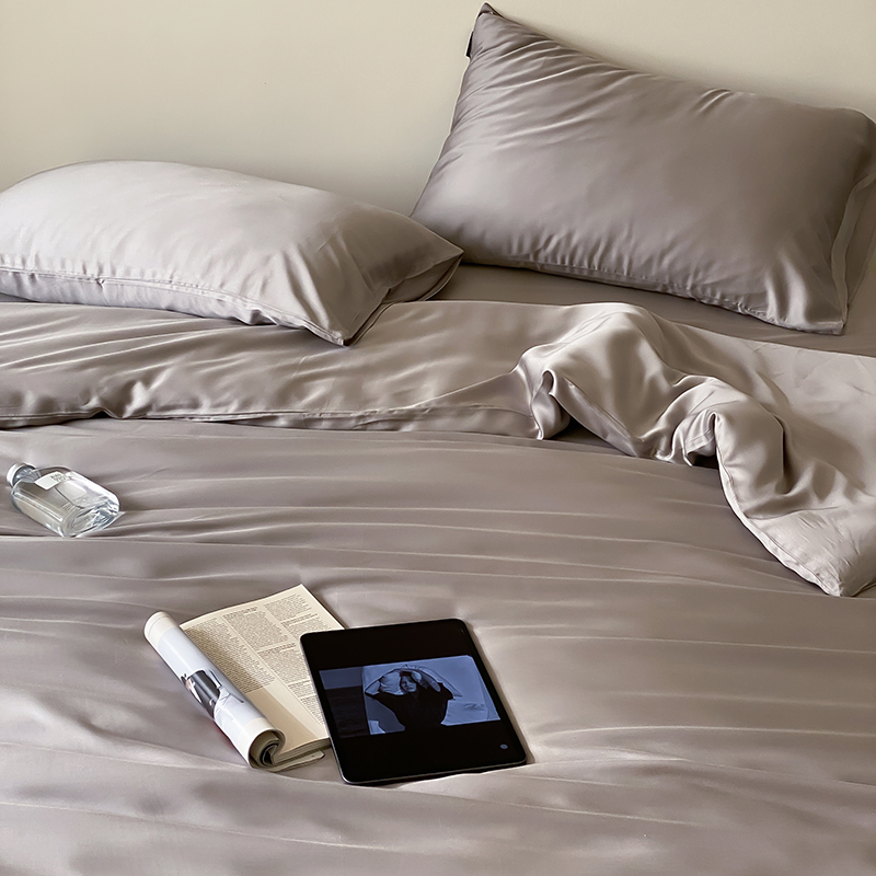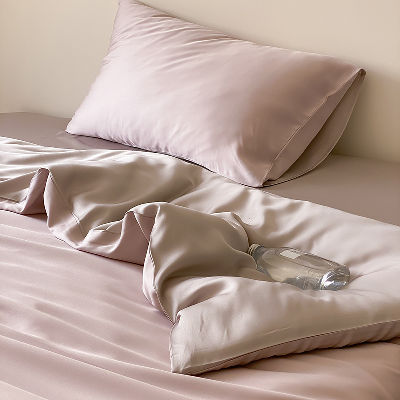 商品名称:2025新款春夏精致都市风60s兰精天丝纯色拼色四件套 都市灰香槟