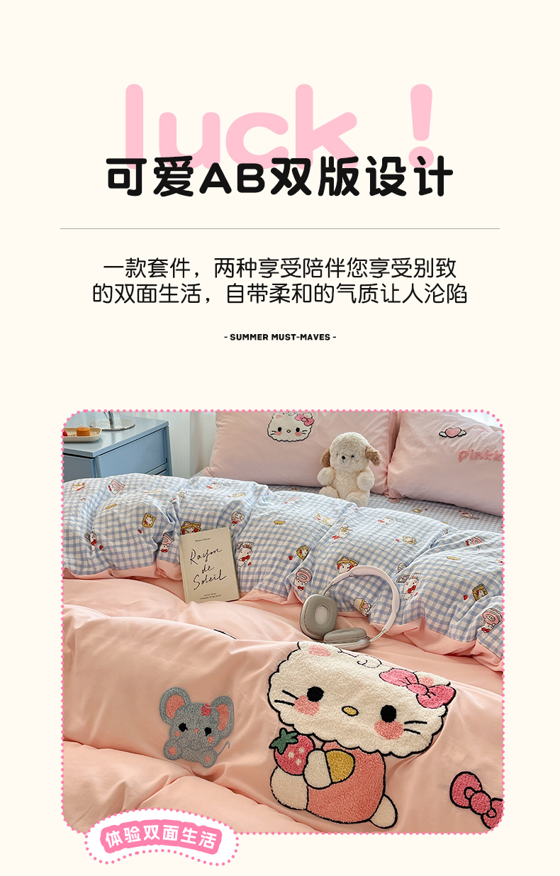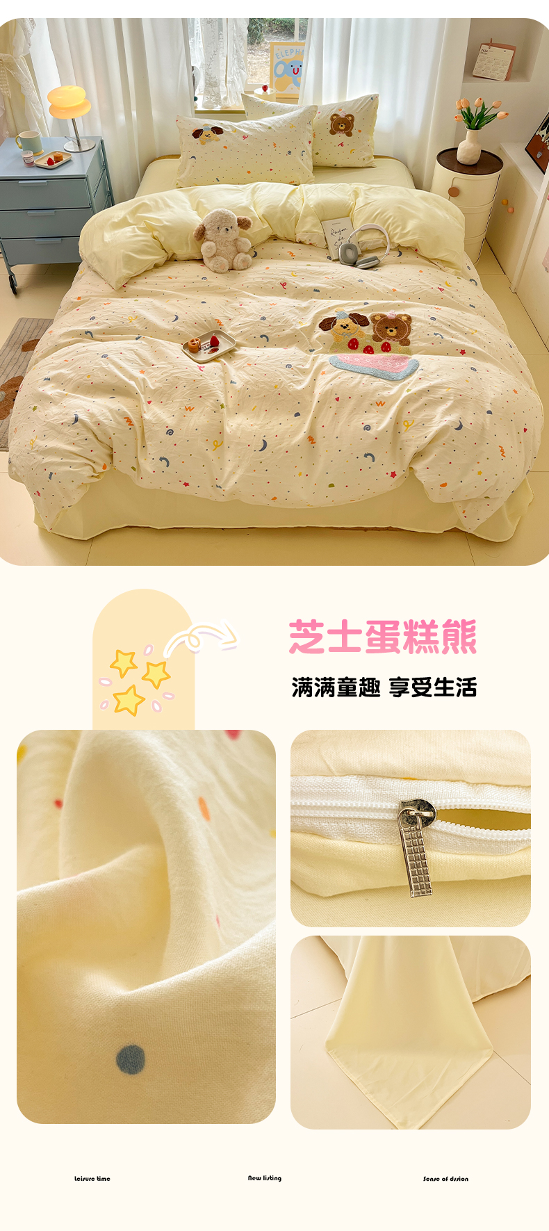 (总)罗亿家纺 2026新款A类古法水洗仿棉云感纱四件套,俏皮豹纹-kt-粉,小幸运,花颜,甜品小猫,爱心甜猫,梦境花园,芝士莓莓熊,蝴蝶结,冰淇淋超甜,奶味星人,狗狗乐园,花花kt梦,小时光,小鱼的心事,旋转木马,樱桃格格,葡萄很甜,花集小兔,焦糖LABUBU,梦幻乐园,绿萌兔子,烟花星语