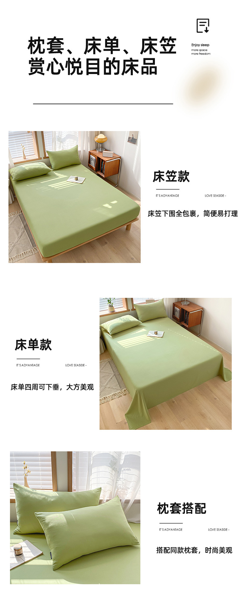 商品名称:耀悦家纺 2025新款A类人字纹提花水洗棉单品系列-单床单 人字纹-抹茶绿