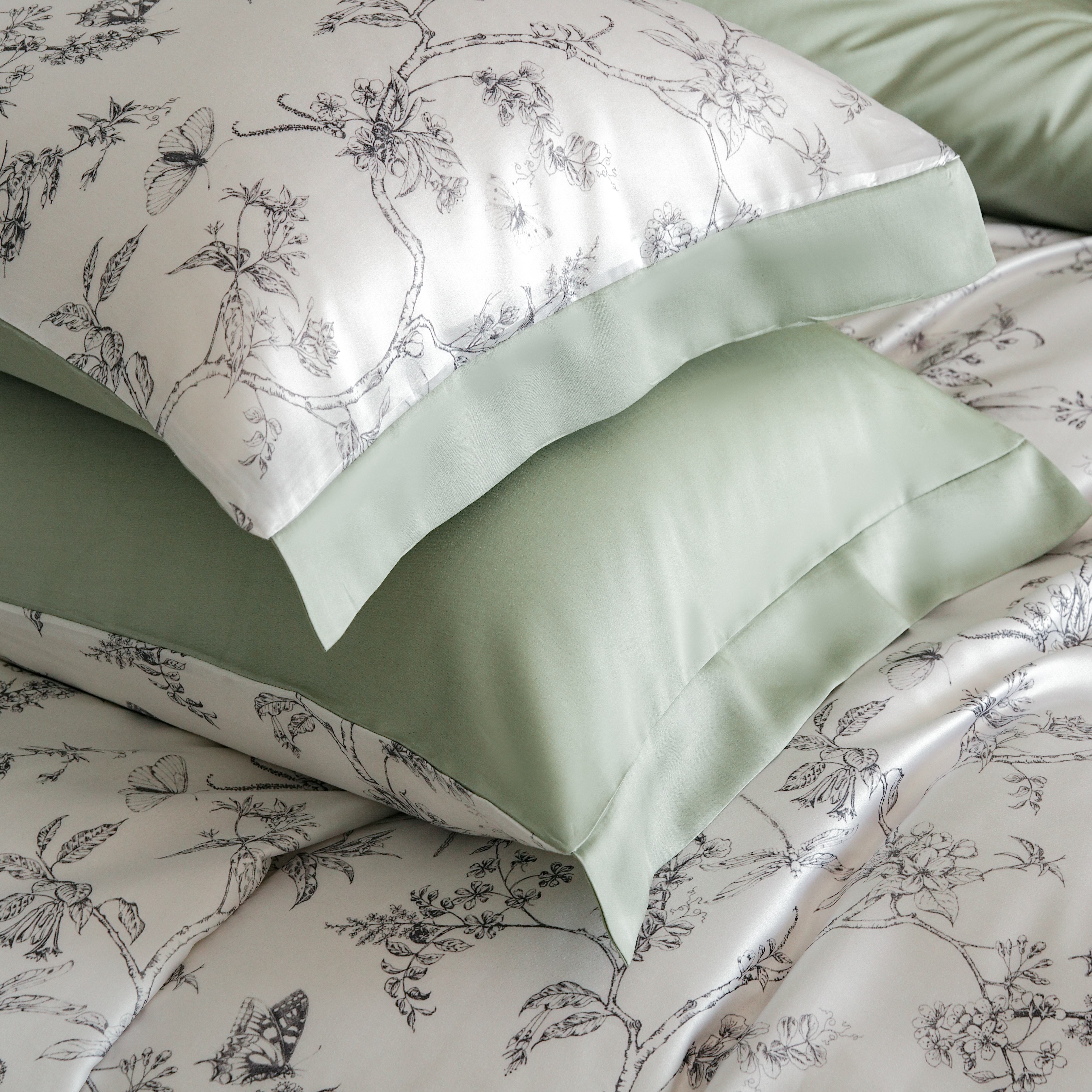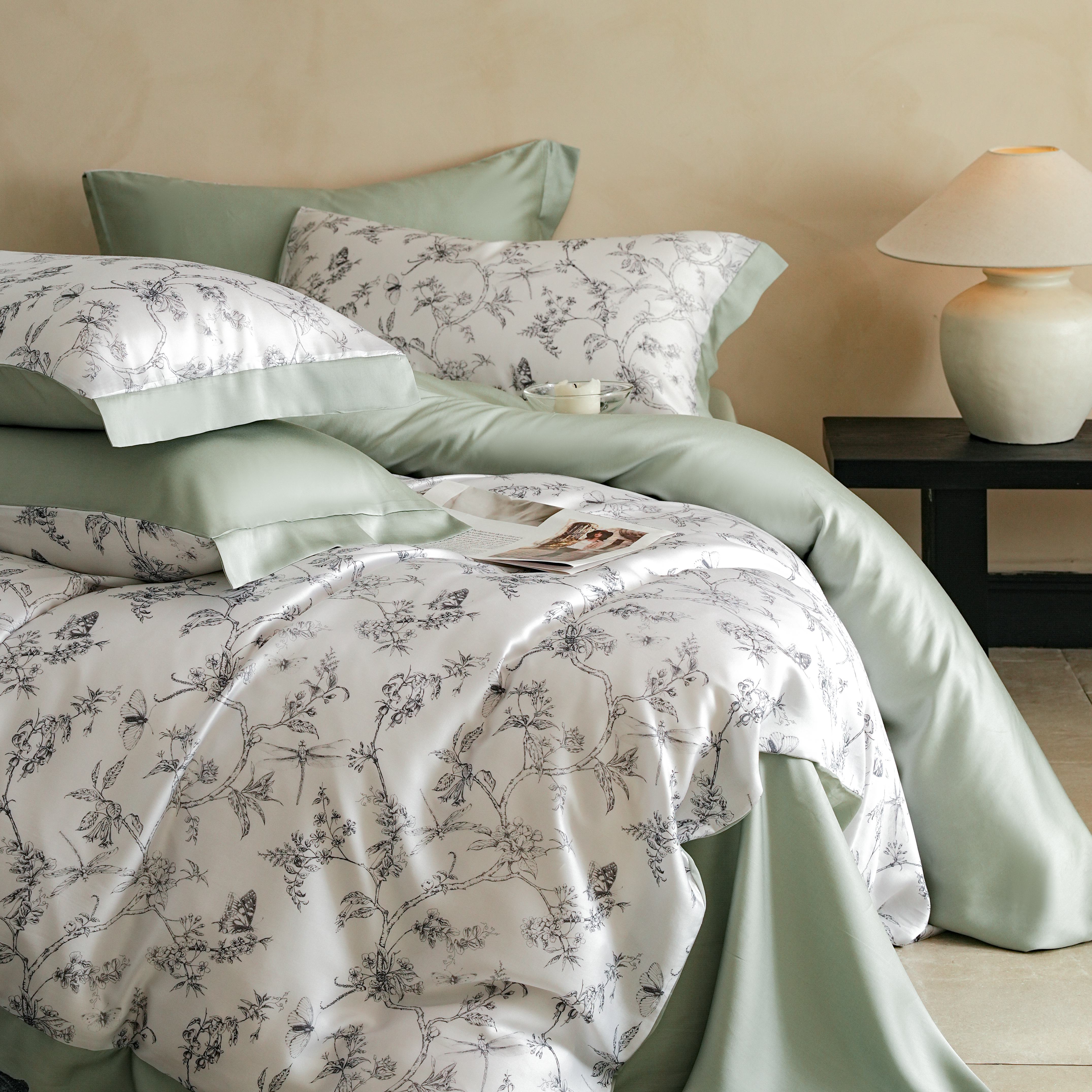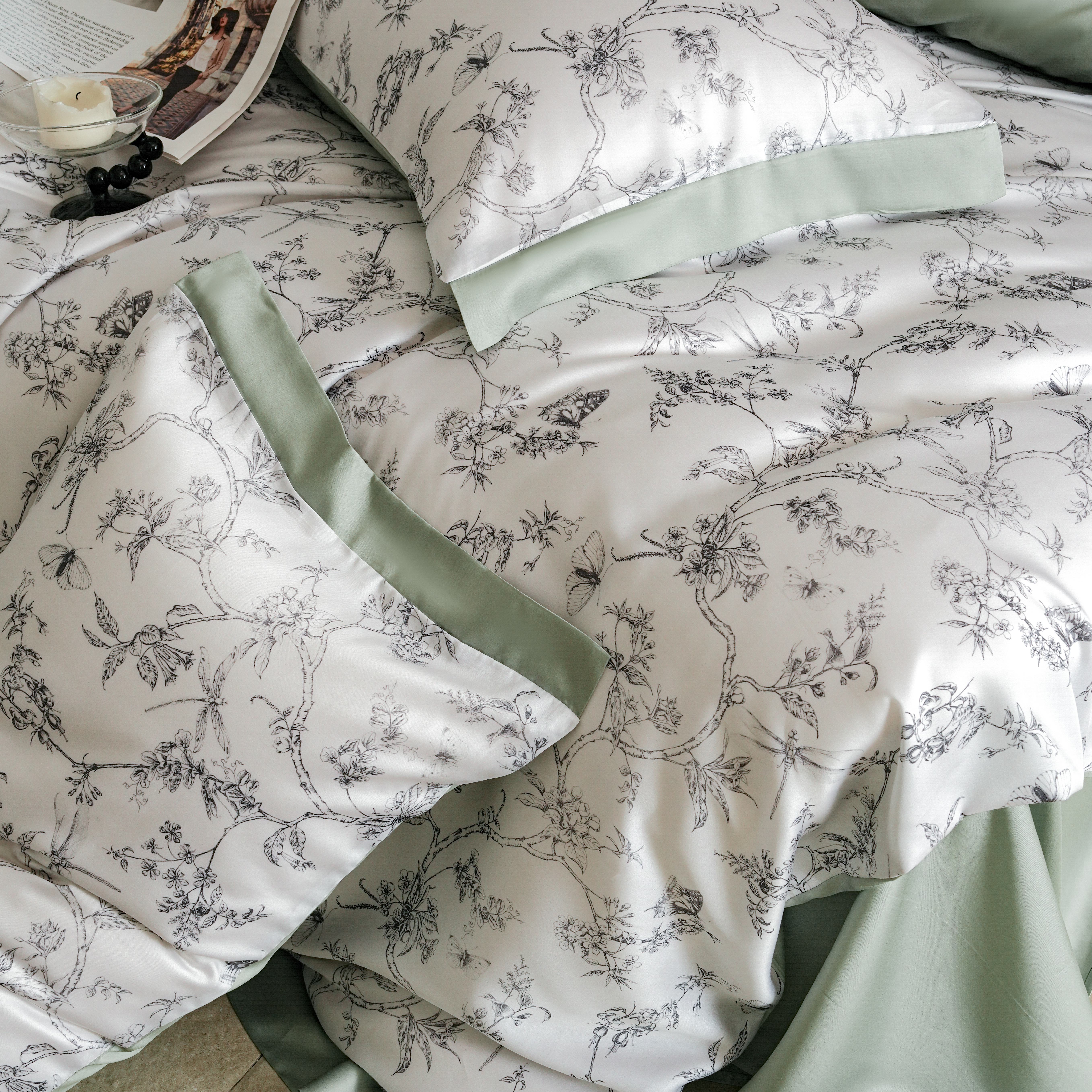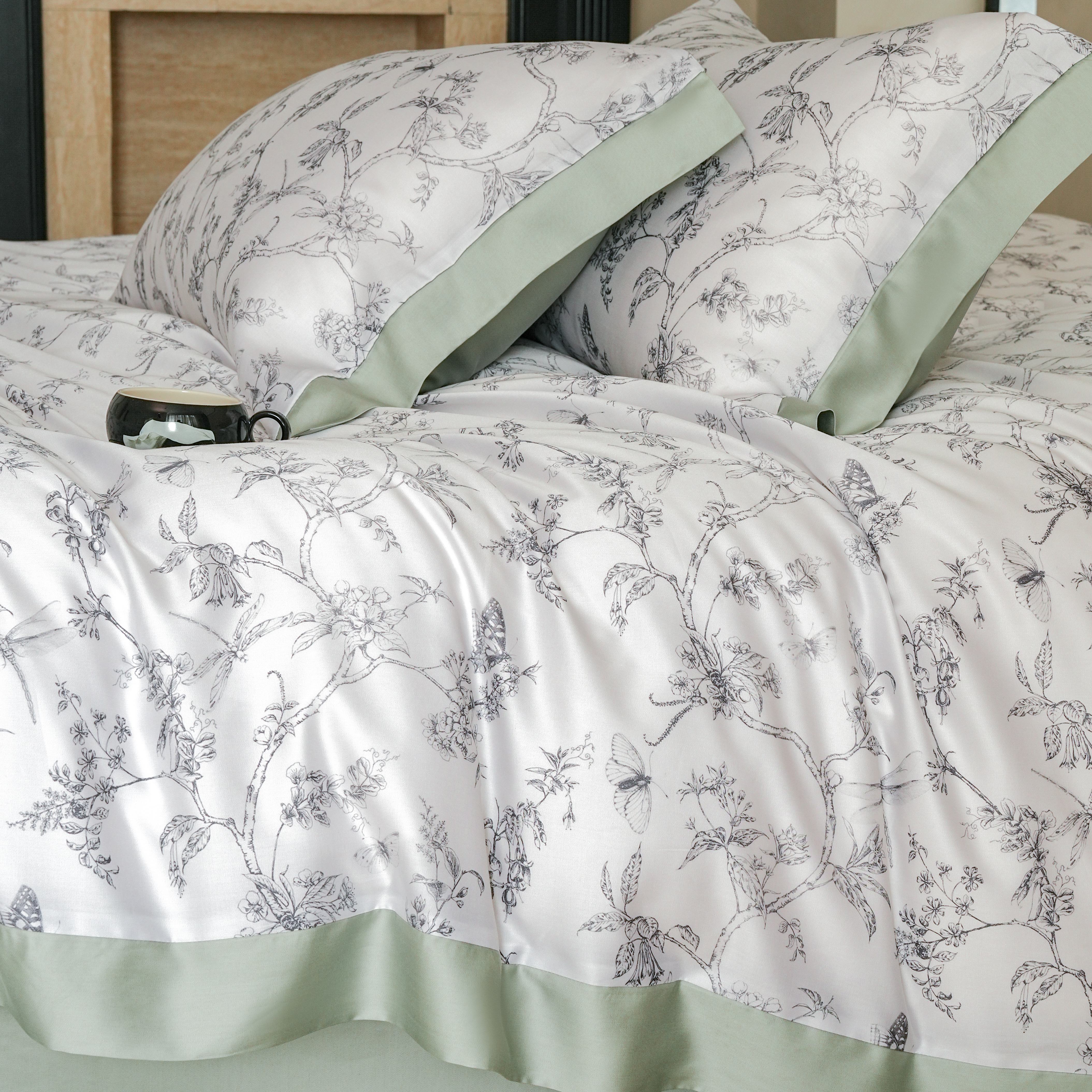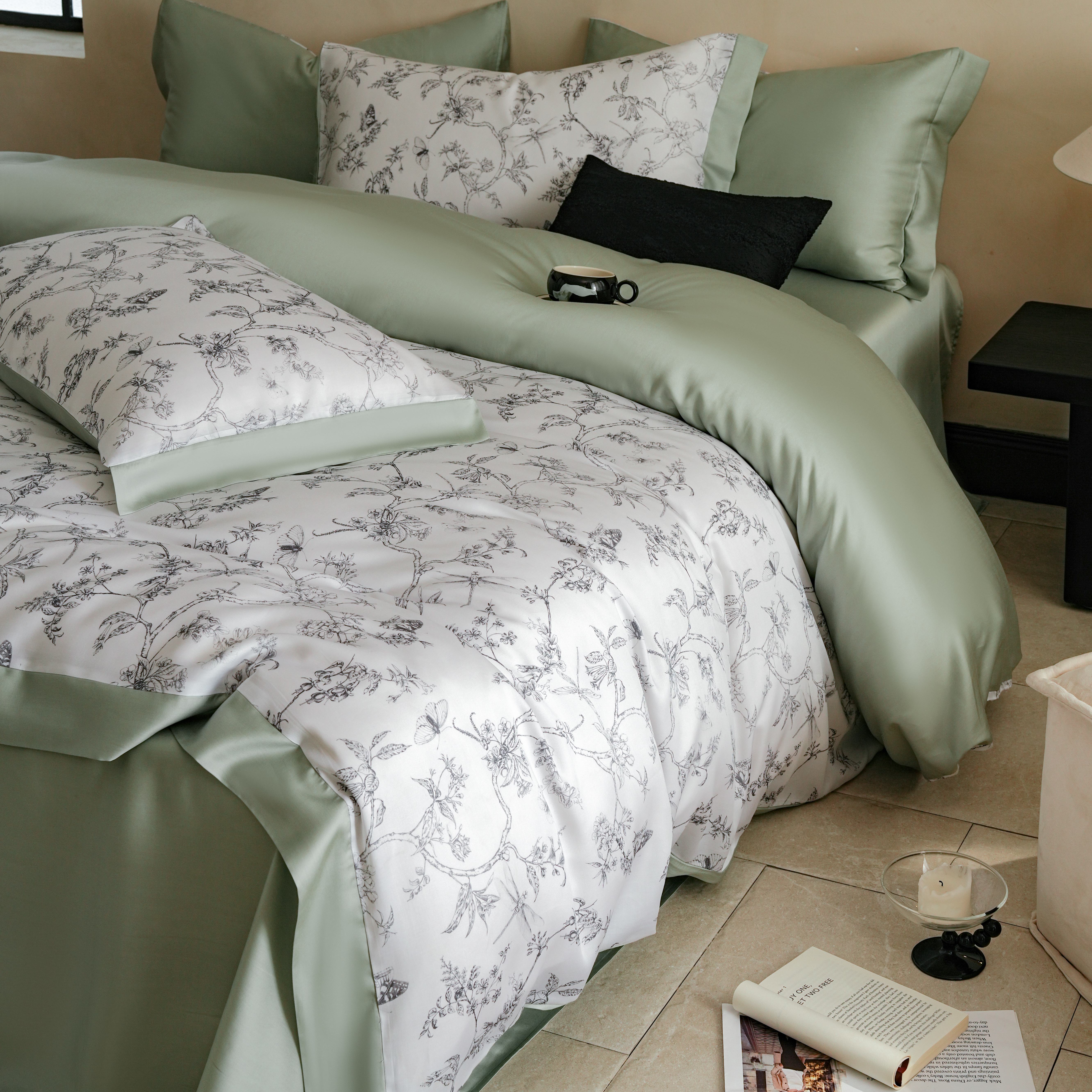 本制 2025新款水洗真丝印花四件套 浅绿卉影