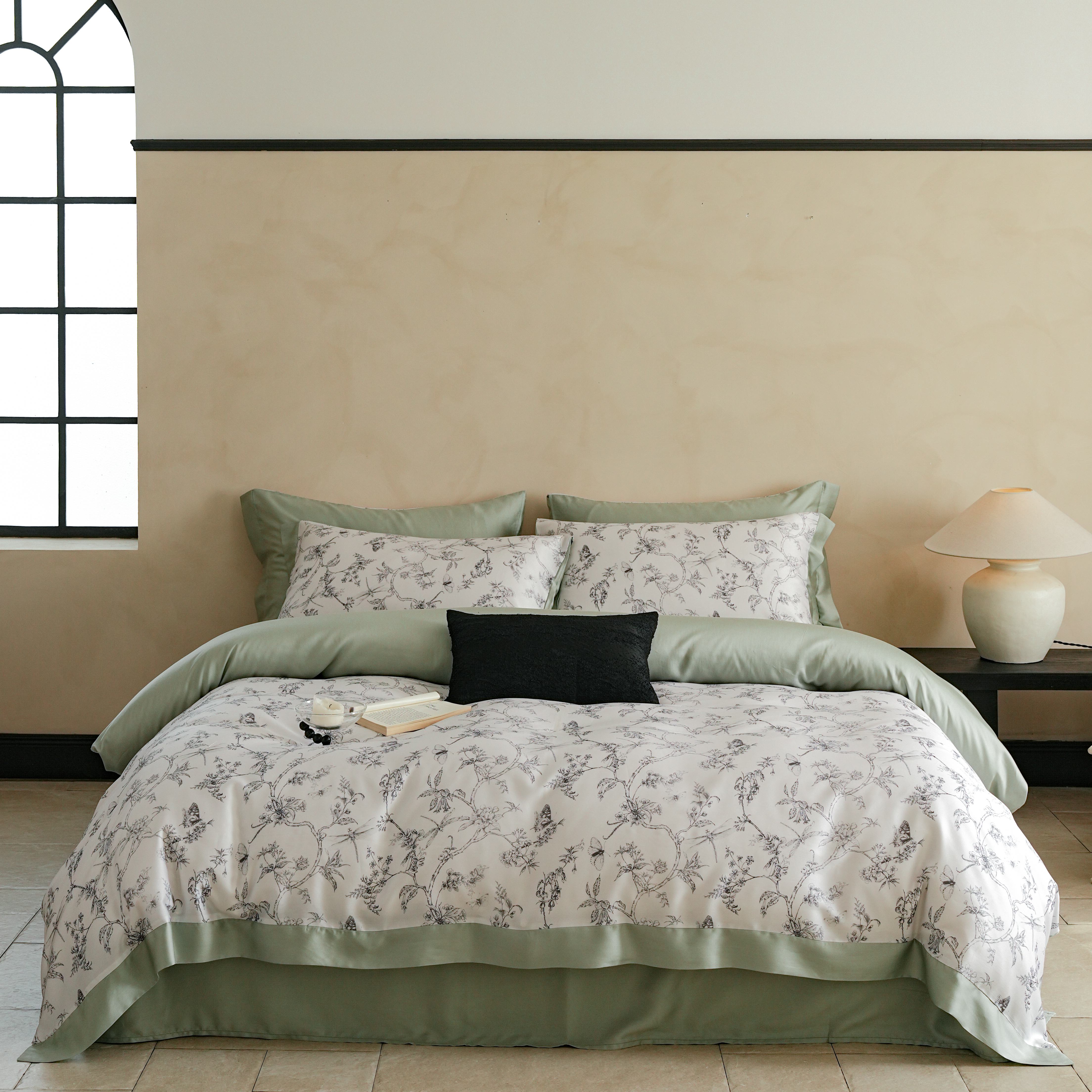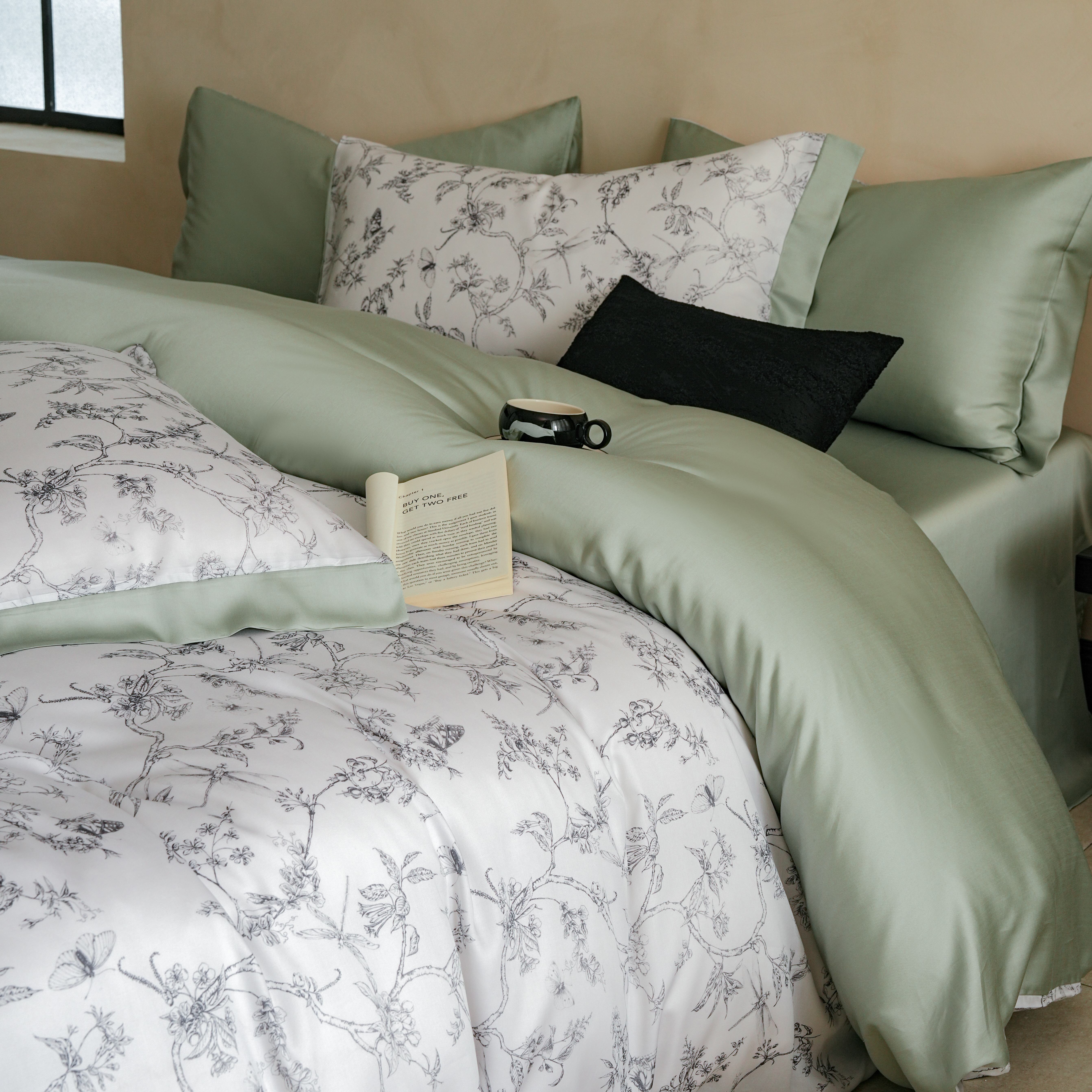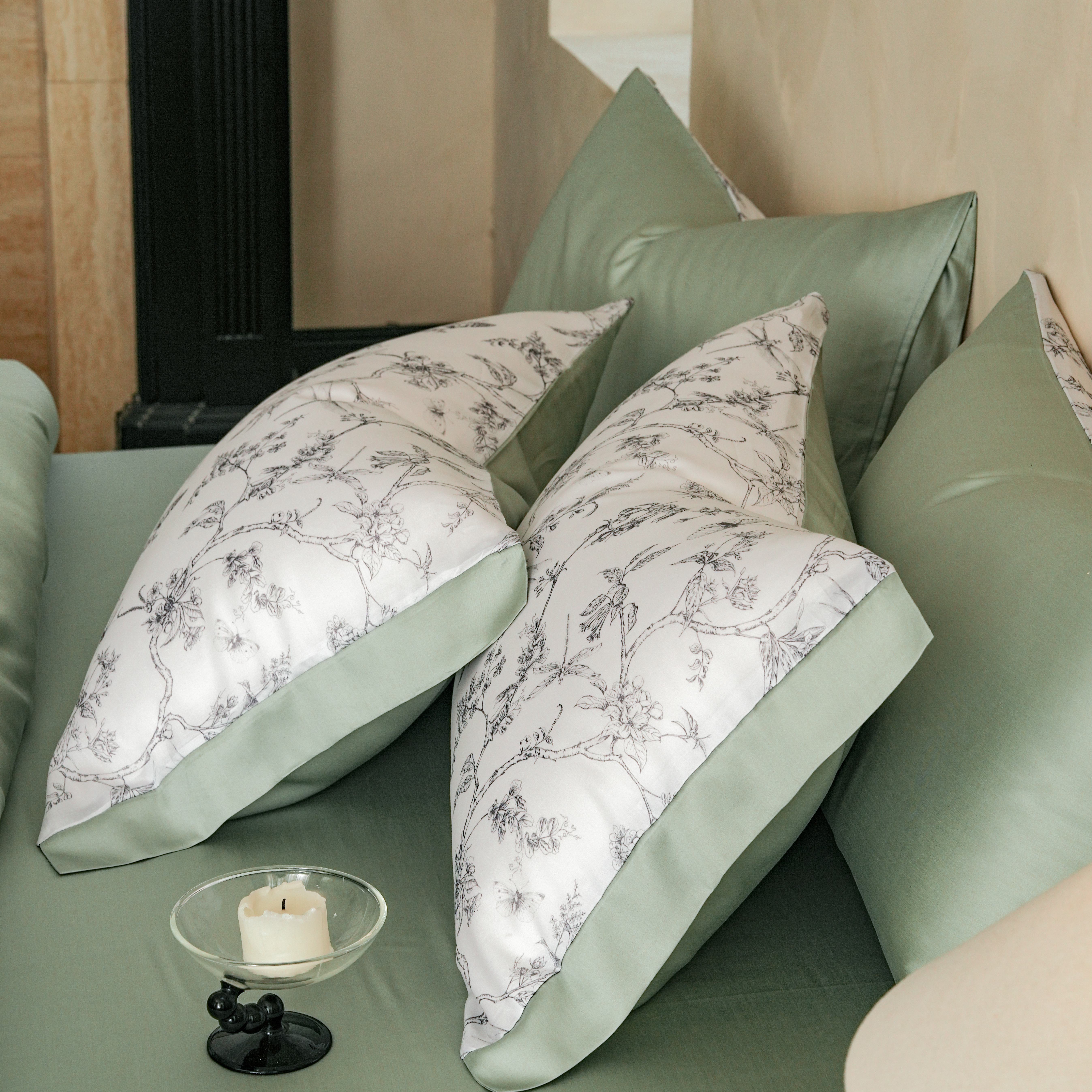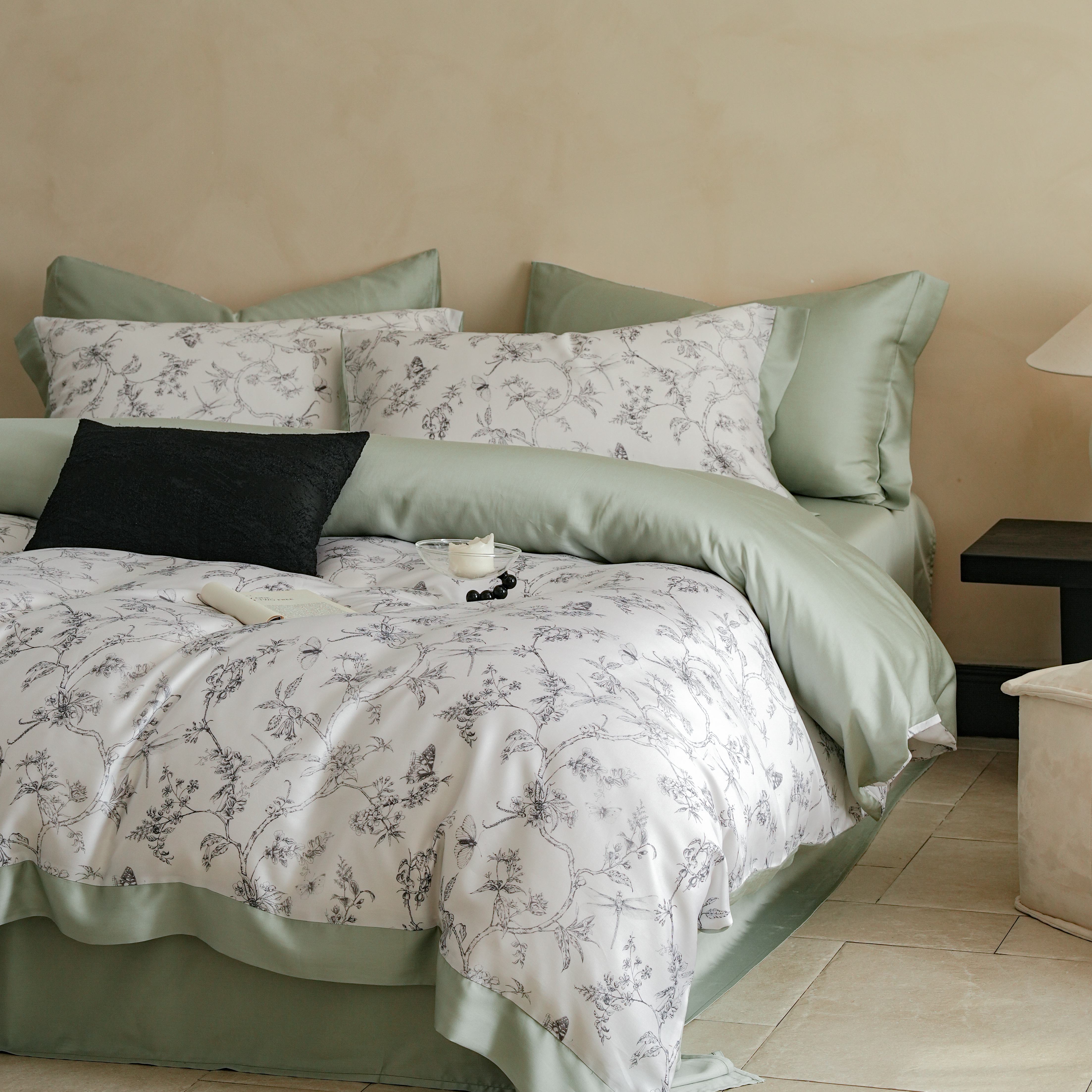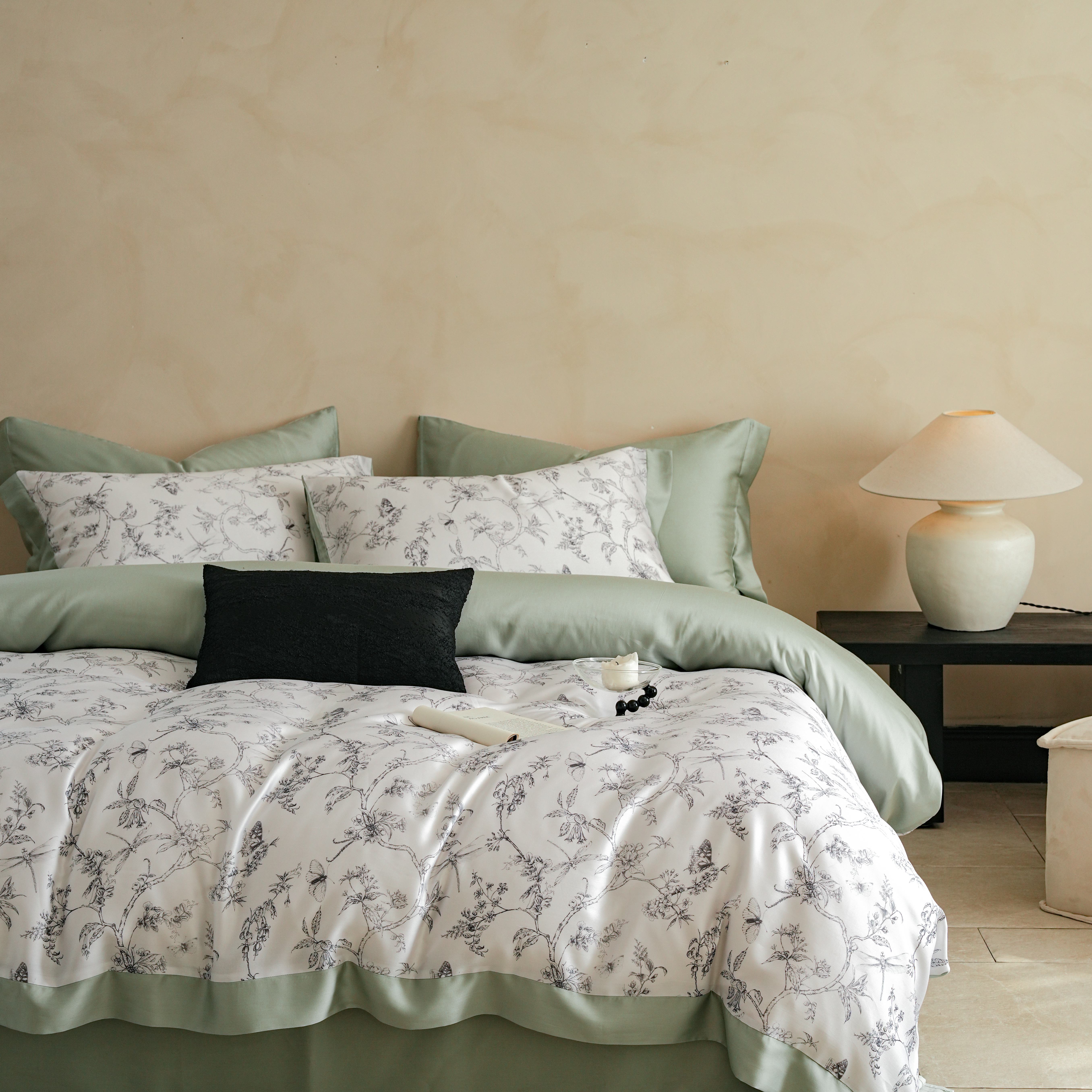 本制 2025新款水洗真丝印花四件套 浅绿卉影