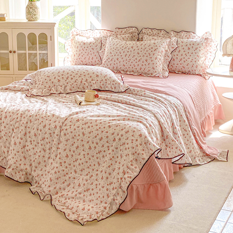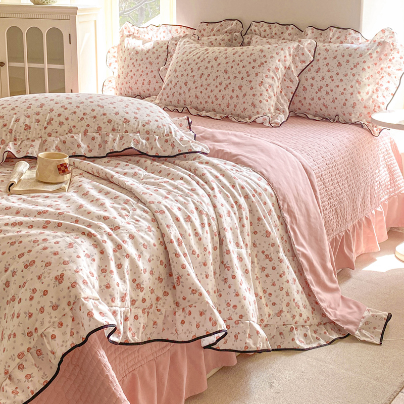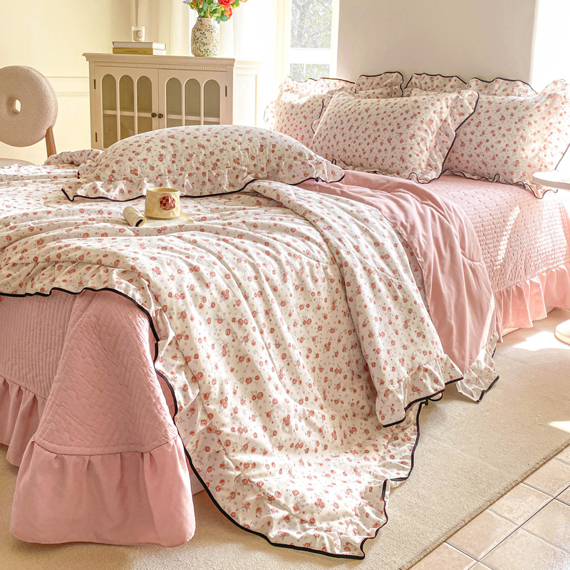 仟网汇 2025新款赫本针织双层纱夏被夏凉被空调被床盖四件套单夏被单床盖单品 花季