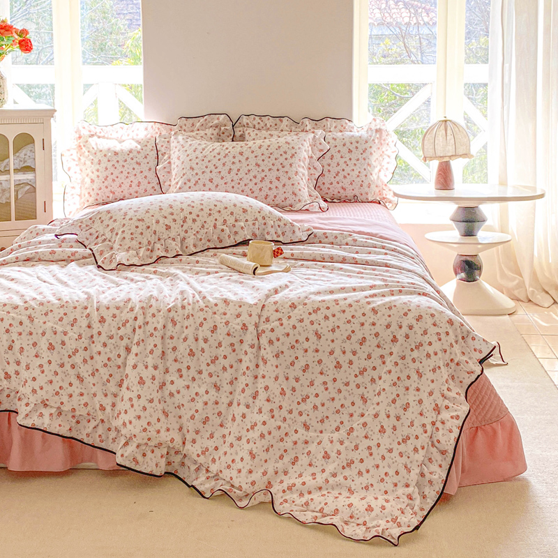 商品名称:仟网汇 2025新款赫本针织双层纱夏被夏凉被空调被床盖四件套单夏被单床盖单品 花季