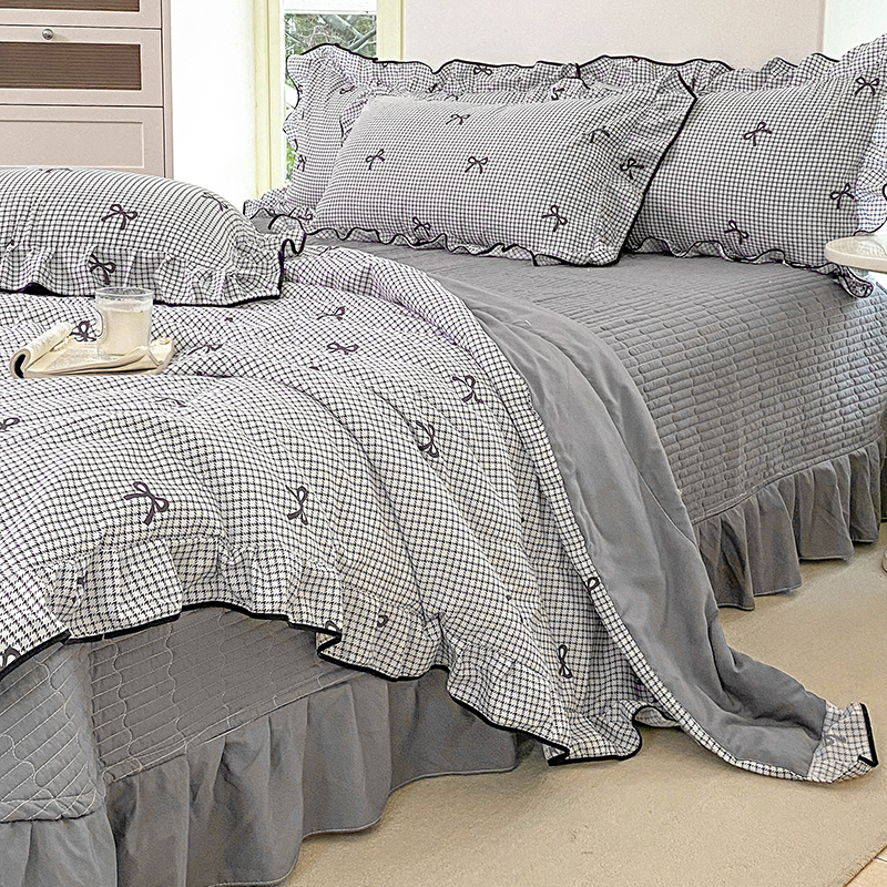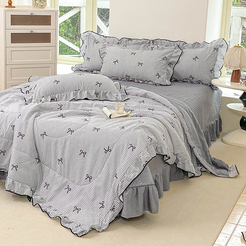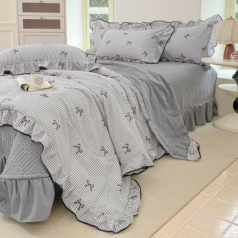 仟网汇 2025新款赫本针织双层纱夏被夏凉被空调被床盖四件套单夏被单床盖单品 小香风