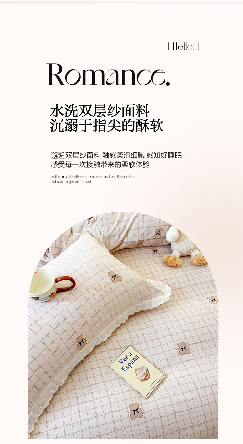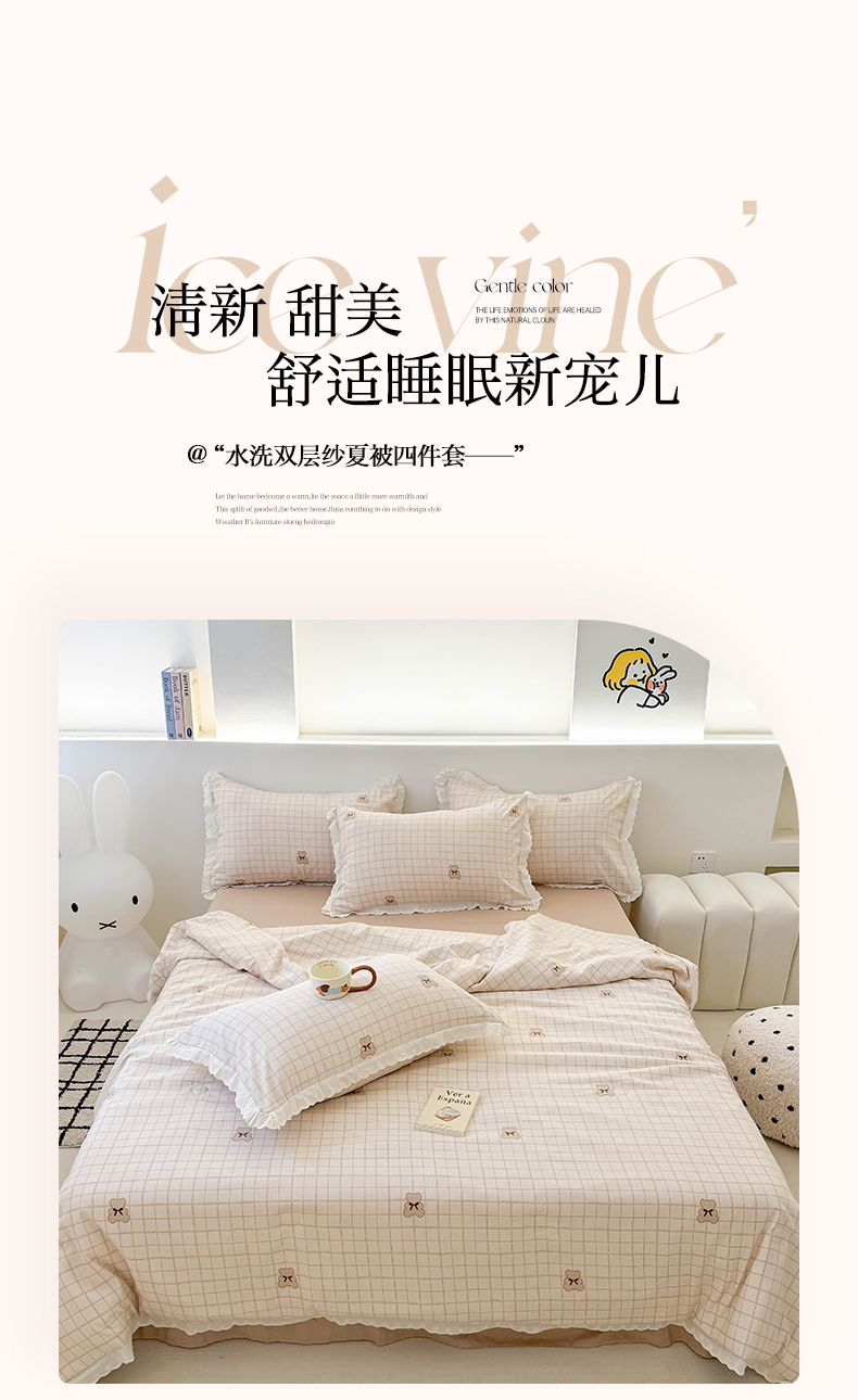 商品名称:吾欢心 2025新款水洗双层纱夏被四件套 宝贝熊