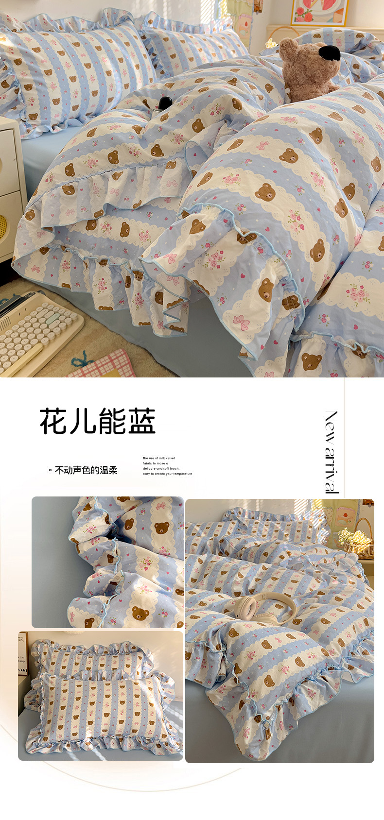 初念 2025新款柔软水洗棉花边四件套【提供买家秀】 花边款-花儿熊蓝