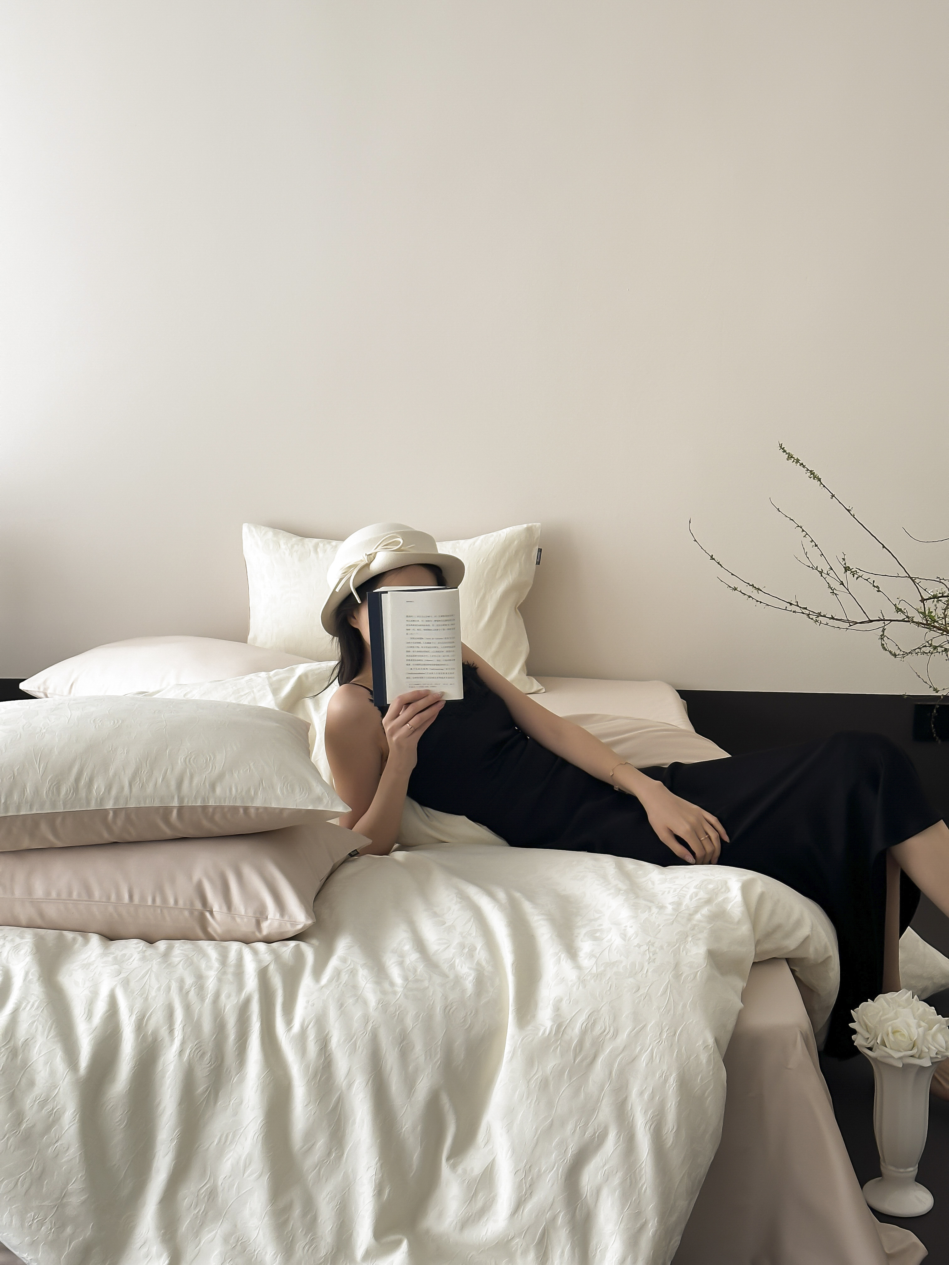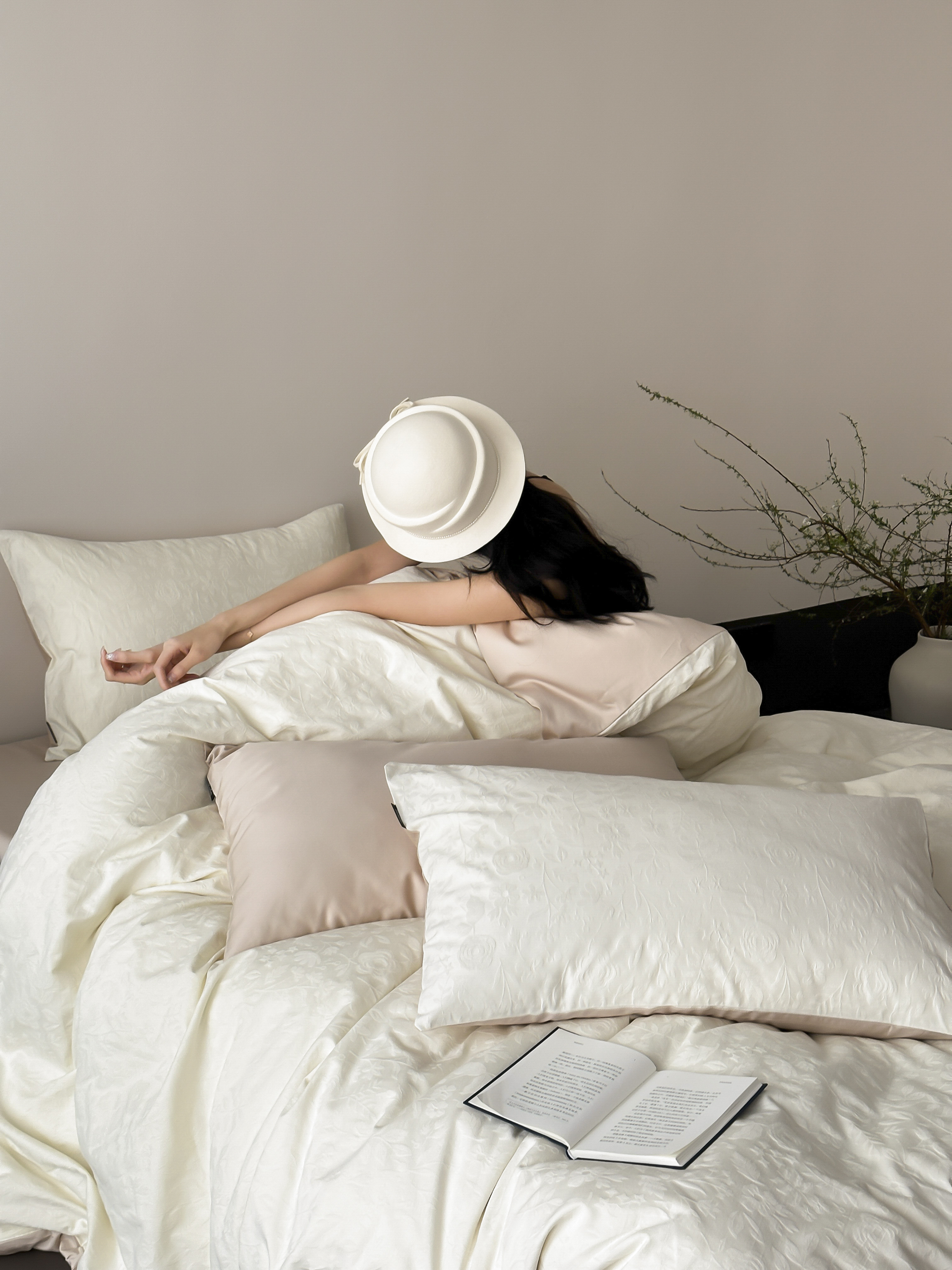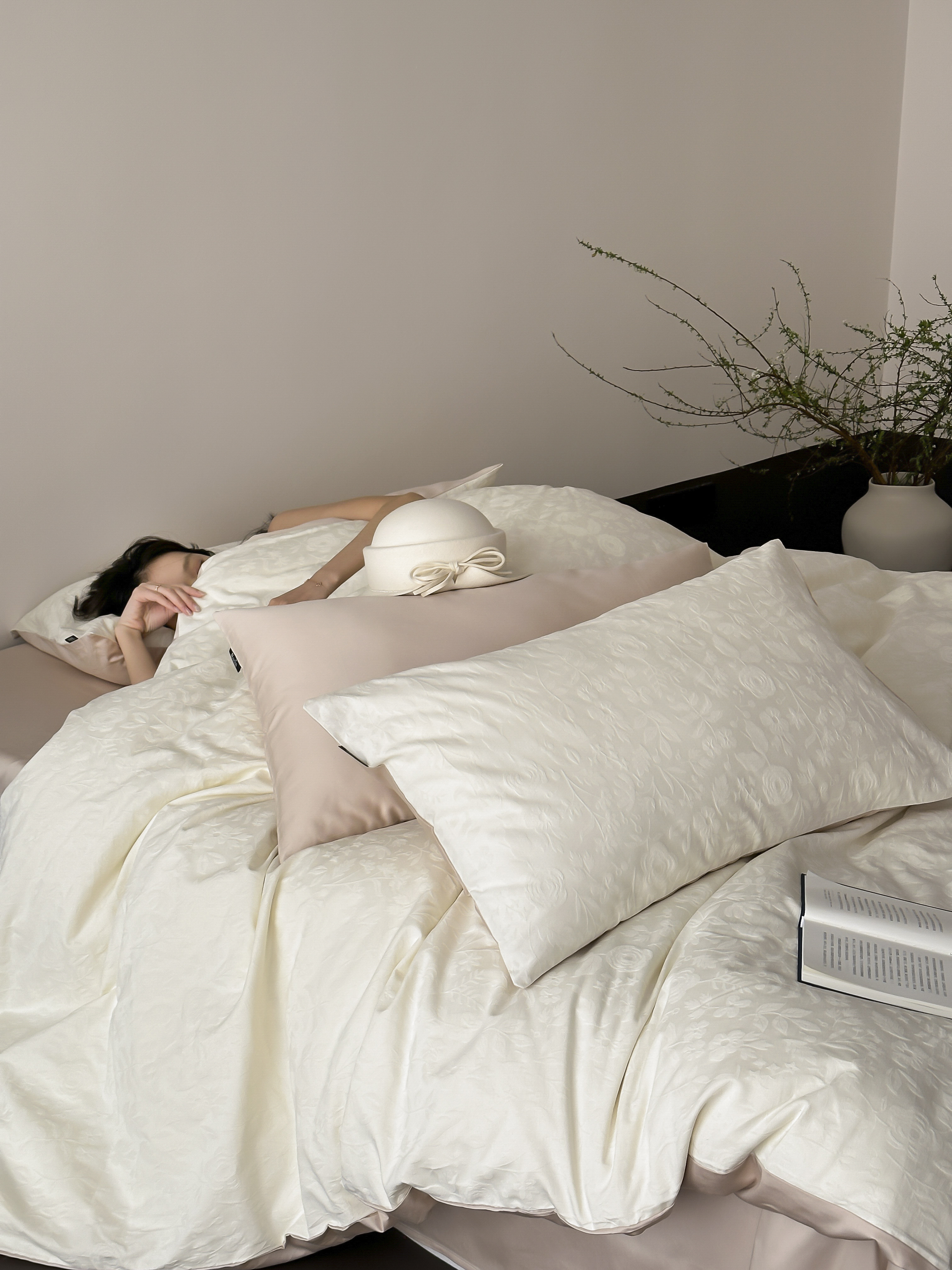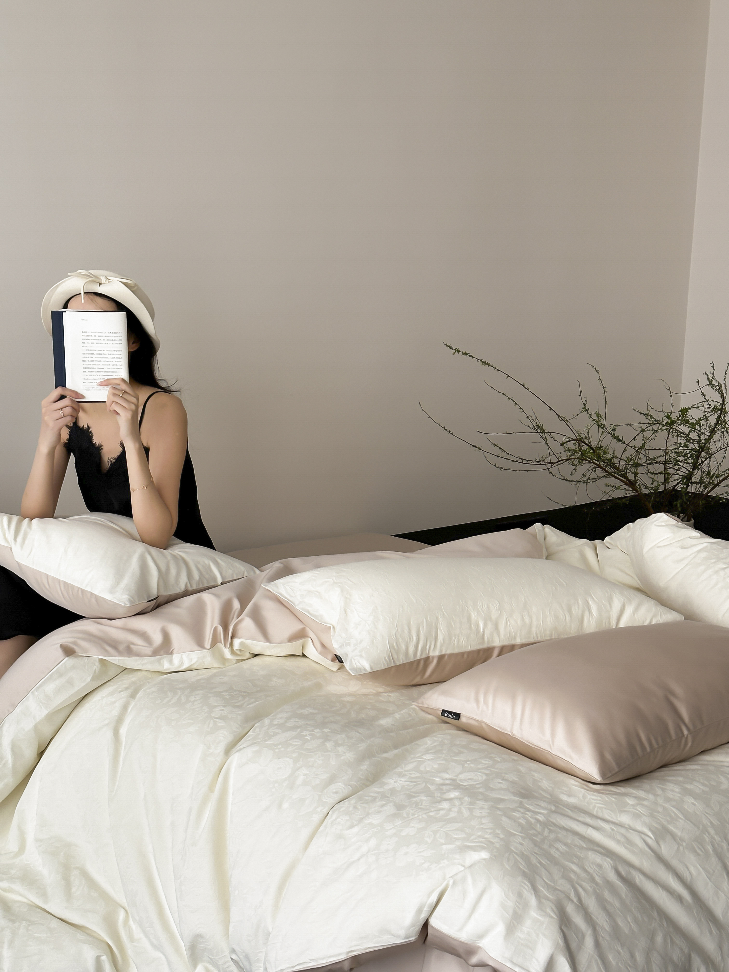 当前位置: 91家纺网 > 商品网购 > 床品套件 > 四件套 > 全棉普通四件套 > 玉宇阁家居 2025新款100S全棉大提花四件套苏莉的春天(100s)床笠款套件可定制(适用于 10-22cm 高床垫) 落日余晖