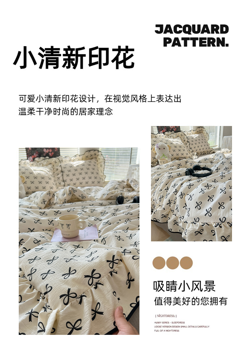(总)十里居 2024新款韩版蝴蝶结花边款牛奶绒四件套,蝴蝶结-奶白,蝴蝶结-淡蓝,蝴蝶结-黑白,蝴蝶结-米咖,蝴蝶结-浅粉,蝴蝶结-浅紫